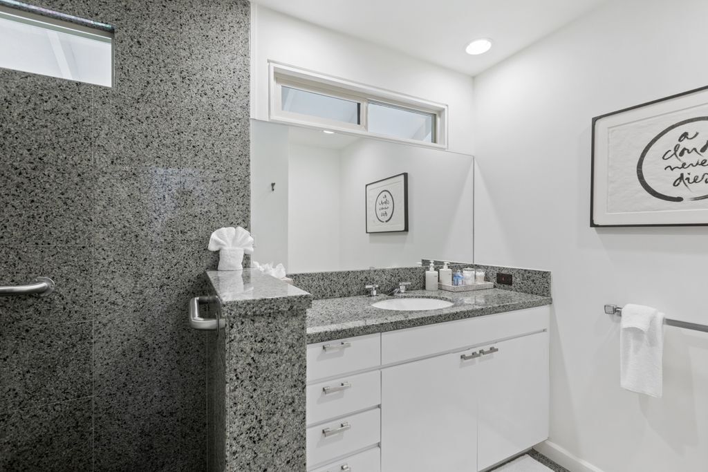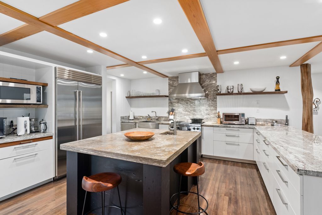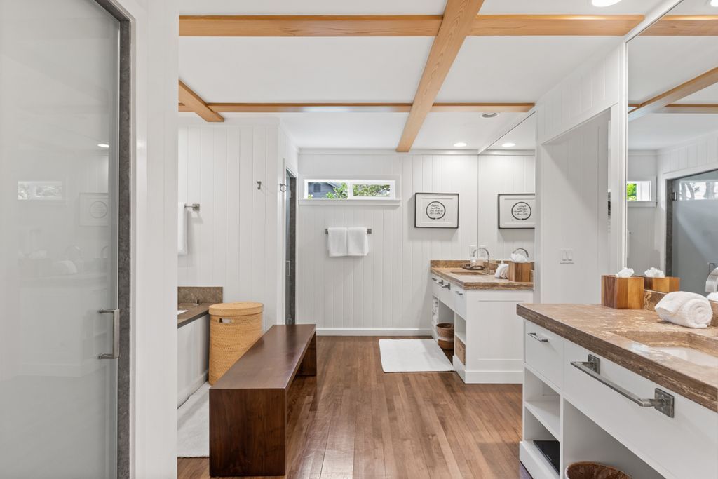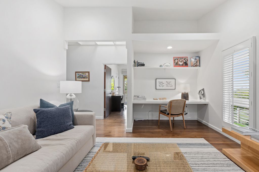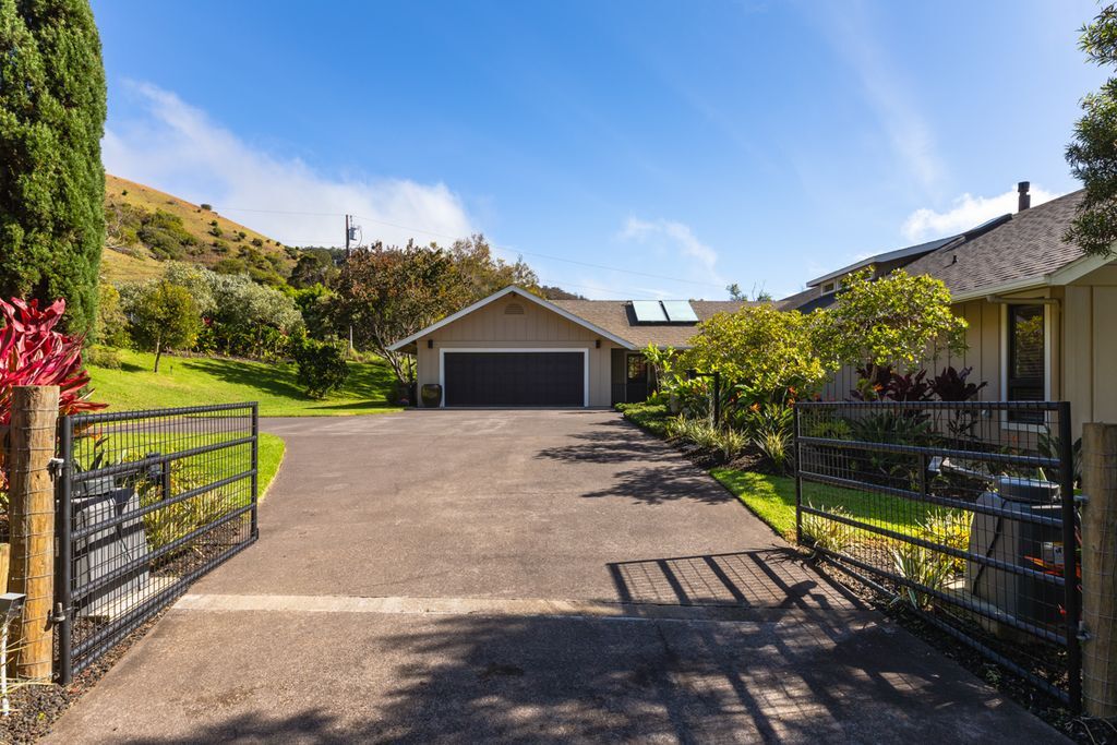 In-town Waimea at its very best. Custom, single-story residence on a private one acre lot in the most desirable area of Waimea. This designer furnished, single level ranch style residence was extensively upgraded through a collaboration between top architects and interior designer. The home is located walking or biking distance to Waimea’s schools, and a short drive to the island’s best beaches and resorts. Very private, with beautiful landscaping, fully fenced, yet in the heart of Waimea. - Solid Ohia floors - Oversize lava rock fireplace - Expansive covered lanai - Large fenced yard, ideal for pets and small children - New exterior hot tub - Spacious primary suite with seating area, walk-in closet, adjacent double office and thoughtfully designed bathroom with a deep soaking tub and rainfall shower. Dornbracht fixtures throughout. - Guest wing including two bedrooms, bonus room (easily converted to a 4th bedroom) and two full baths. - Chefs’ kitchen with Wolf and Subzero appliances, slab island and custom cabinets with Sun Valley Bronze pulls and Blum glides. - Mudroom with covered entry, providing convenient access to kitchen and garage. - Oversize 2-car garage with skylights and large windows, with newly installed Tesla batteries for pv energy storage and Tesla charger. - Full PV (solar) electric and water systems - Fruit trees and large lawn area