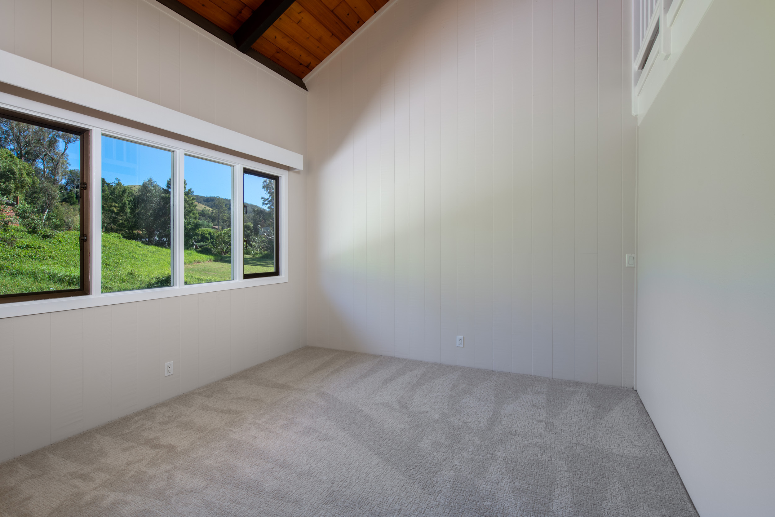 Interior upgrades include restored cabinetry, fresh interior and exterior paint, new carpet, new French doors to the lanai, new front and ‘Ohana doors, refurbished gas stove, new refrigerator, updated plumbing fixtures and hardware, select lighting upgrades, a restored and repainted metal roof, a new bath fan, and servicing of the central vacuum system.