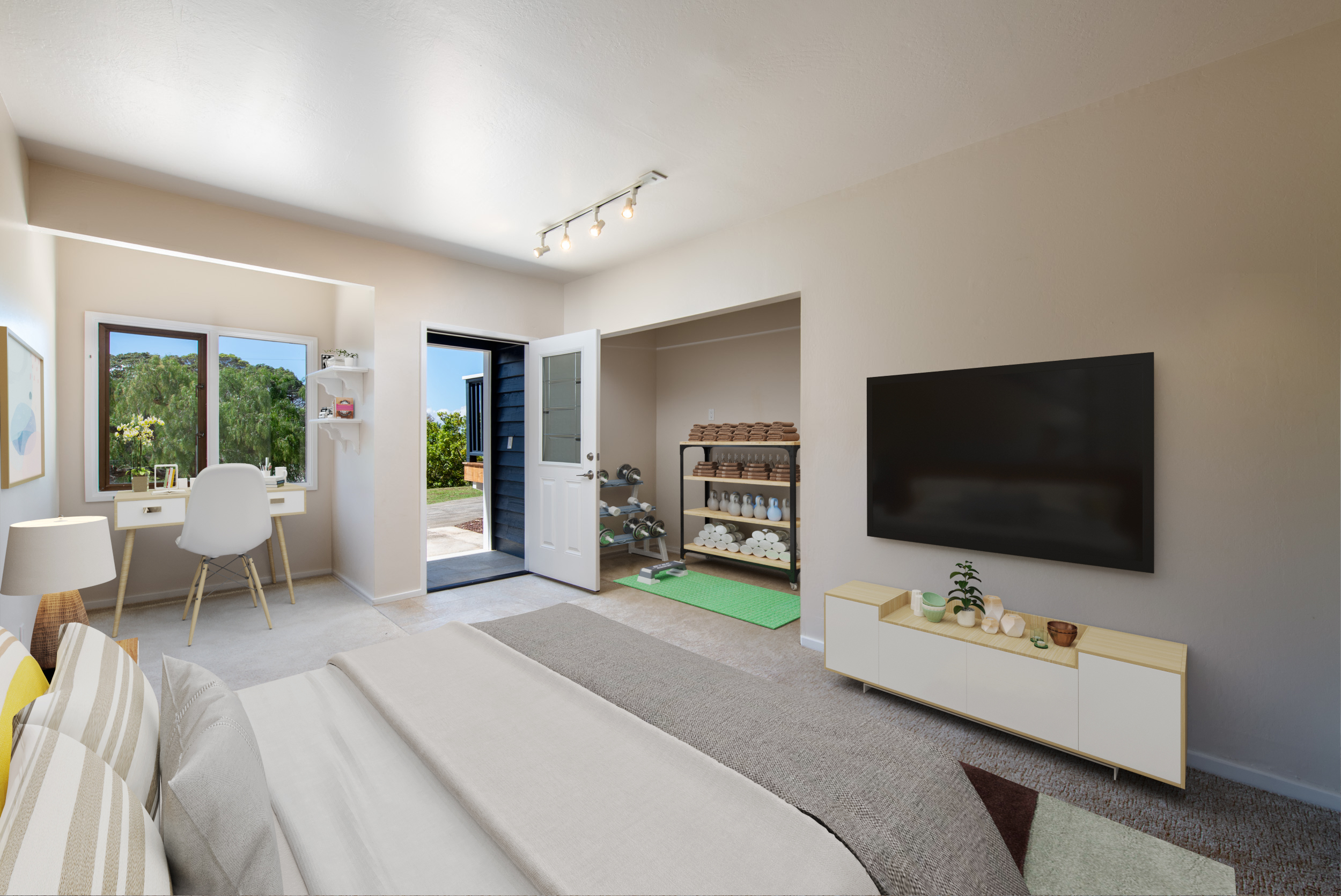 The primary suite provides a peaceful escape with its private bath and a spacious flex room that can serve as an office, hobby space, or sitting area. Two additional bedrooms include lofts–perfect for kids, workspaces, or creative studios. An un-permitted space with its own entrance adds even more flexibility as a potential 5th bedroom, gym, office, or guest area.
