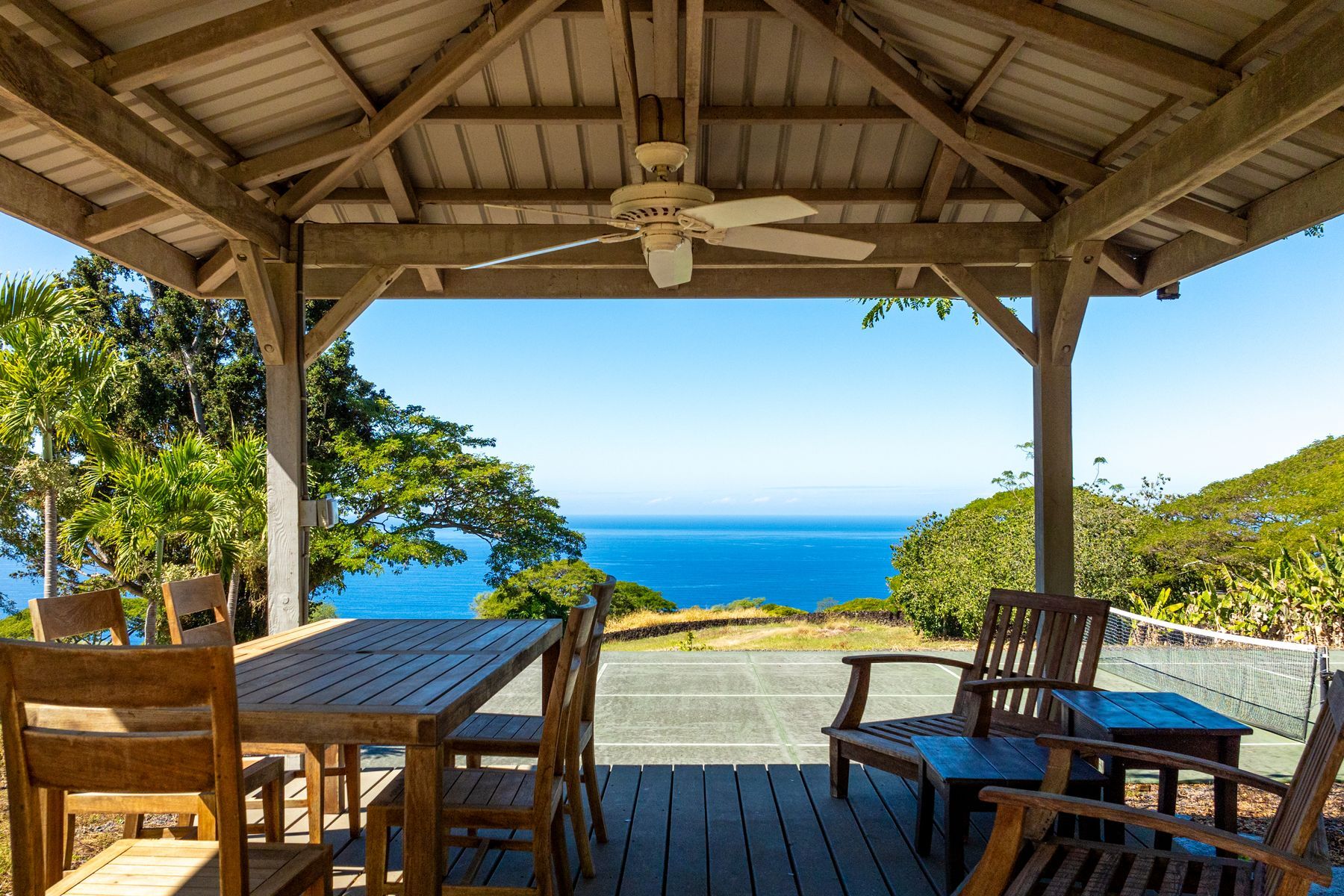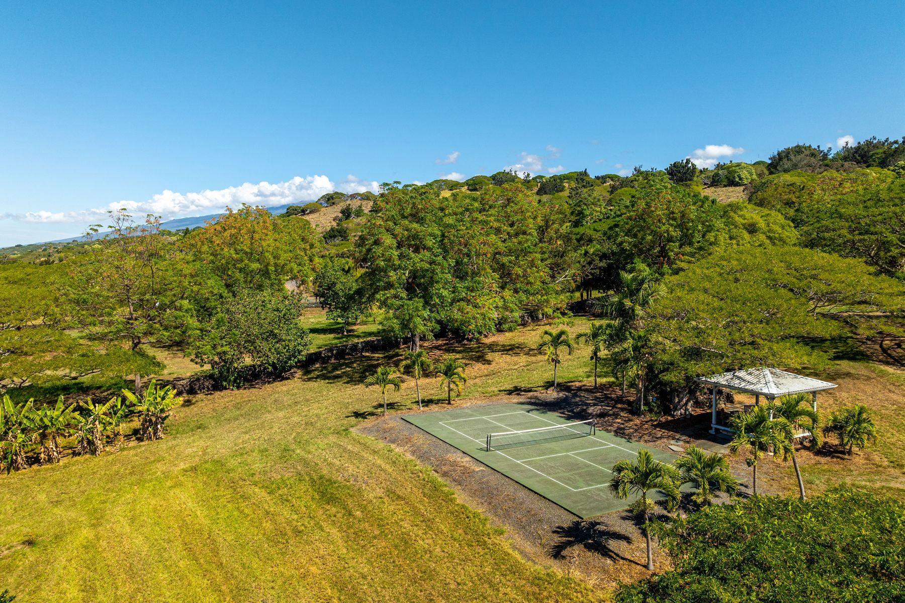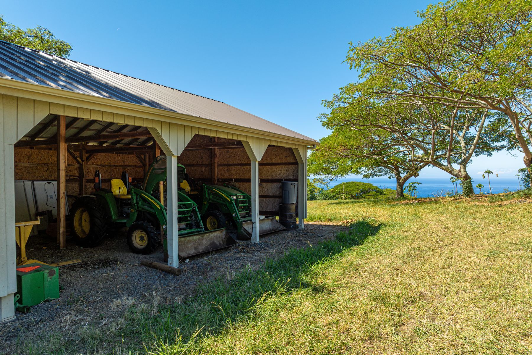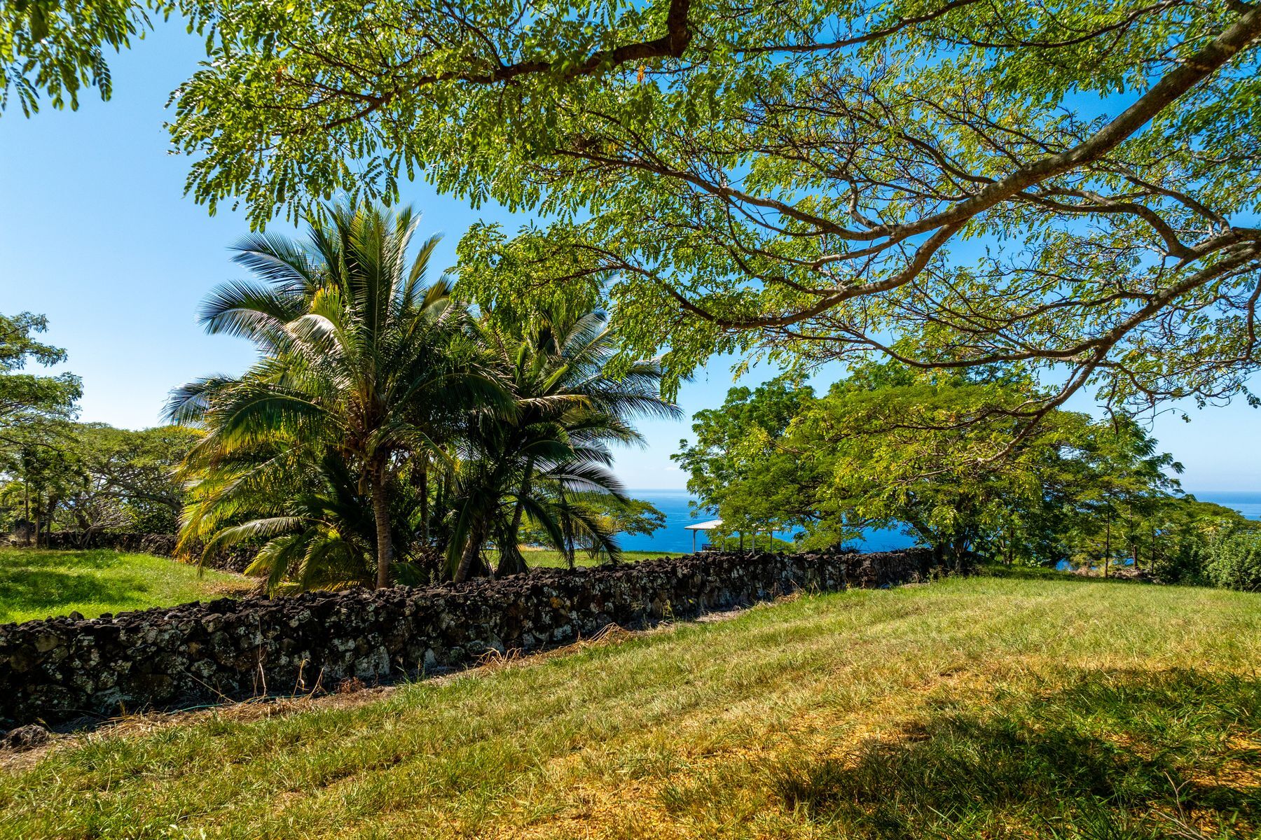 Analea Ranch — An exclusive and rare opportunity to purchase lands teeming in rich history and embodying old Hawaii. This 25-Acre off-grid retreat features large acreage with a luxury Cottage & Improvements. 2,200 sq. ft. under roof with a wraparound veranda and stunning ocean views, detached 2-car garage with storage and bay, pickleball court, three gazebos, and a tractor shed/barn, off-grid sustainability, solar power system with inverters, batteries, and backup generator, complete with a 30,000-gallon water catchment tank with triple filtration system. With unparalleled privacy, sustainable living, and historic charm, Analea Ranch is a one-of-a-kind legacy estate offering endless possibilities–a private compound or agricultural retreat adjacent to Hokulia. Get a membership there and enjoy the amenities while owning your own destiny. The soil is rich and supports old growth monkeypod, kukui, fig and mango trees. It was the only land on the west side to be planted in sugar cane. The property has been cleared by hand and lovingly maintained. The Ranch was purchased prior to construction of the by pass, which connects Alii Dr with Napo’opo’o road. During construction the County provided an entrance to the Ranch. Completion of the by pass opened up real estate that had previously not been accessible. The Ranch is now just 5 minutes from Keauhou Shopping center, 5 minutes from Kona Community Hospital, and 15 minutes from Kealakekua Bay. Property Highlights: Large Parcel: (Ag-5 Zoning, Subdivision Potential) Restored historic stone structures, including two large sugar-loading ramps The Ranch perimeter is enclosed by a 4 foot high dry stack wall system Archaeological survey completed (no burial sites identified, historic sites preserved) Contiguous with Hokulia.