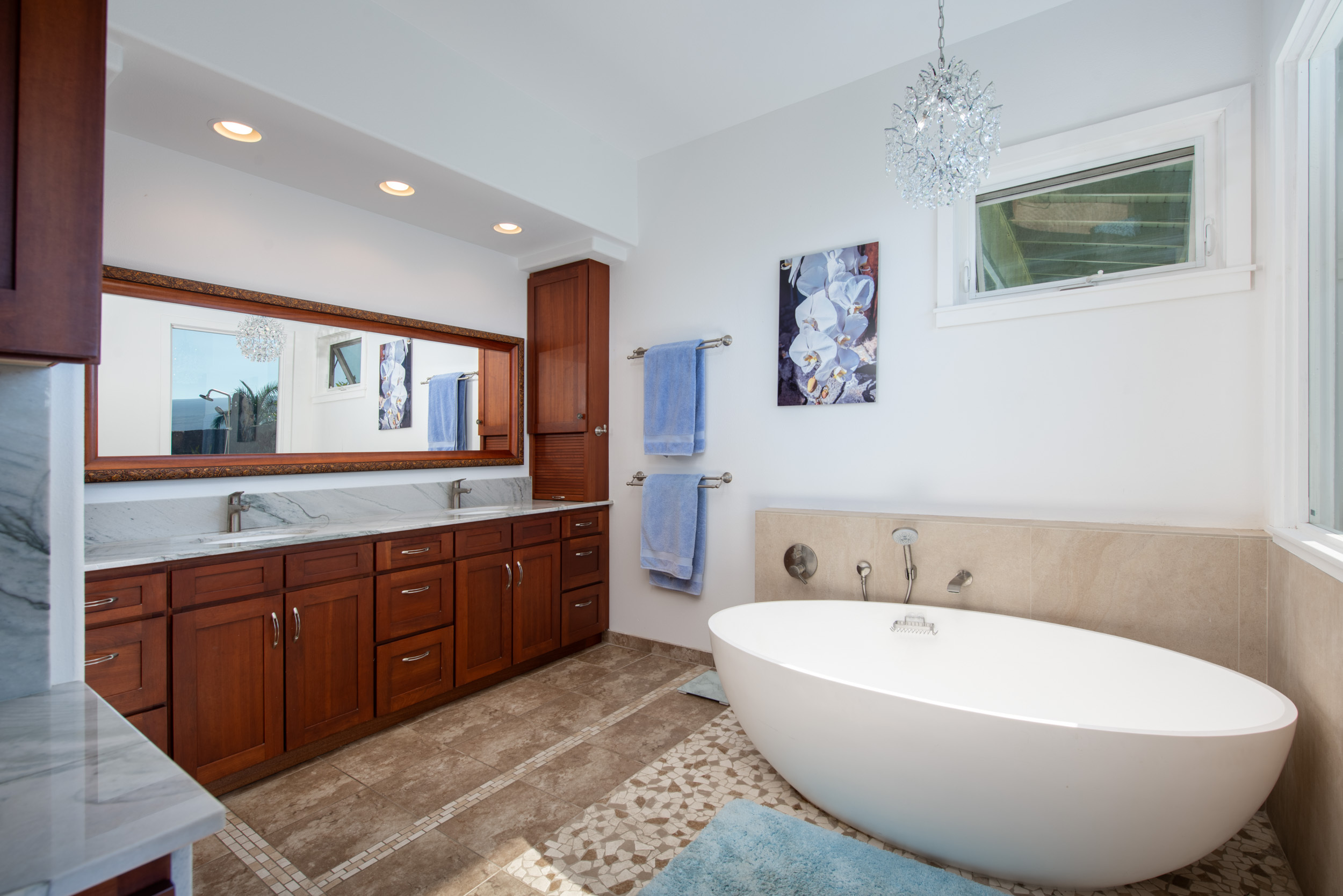 Perfectly positioned at the end of the prestigious and secluded Makahiki Lane, the residence is enveloped by lush, producing coffee trees and a tapestry of tropical fruits. Thoughtfully designed for comfort and flow, all bedrooms are located on the main level, each oriented to frame the ocean views. A light-filled upstairs office provides a peaceful retreat for creative work or quiet reflection, opening to sweeping coastal vistas.