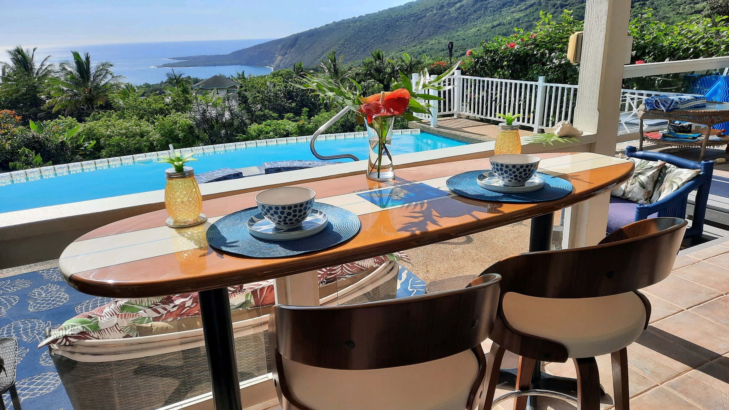 Perched above one of Hawai‘i’s most iconic coastlines, this one-acre, 3 Bed/3 Bath Kealakekua Bay Estates retreat captures breathtaking 240-degree ocean vistas and enjoys year round sunset painted skies. Located just 1.3 miles from the bay for world-class snorkeling and near Kee‘i Beach and Pu?uhonua o Honaunau, this gated community offers both privacy and convenience.