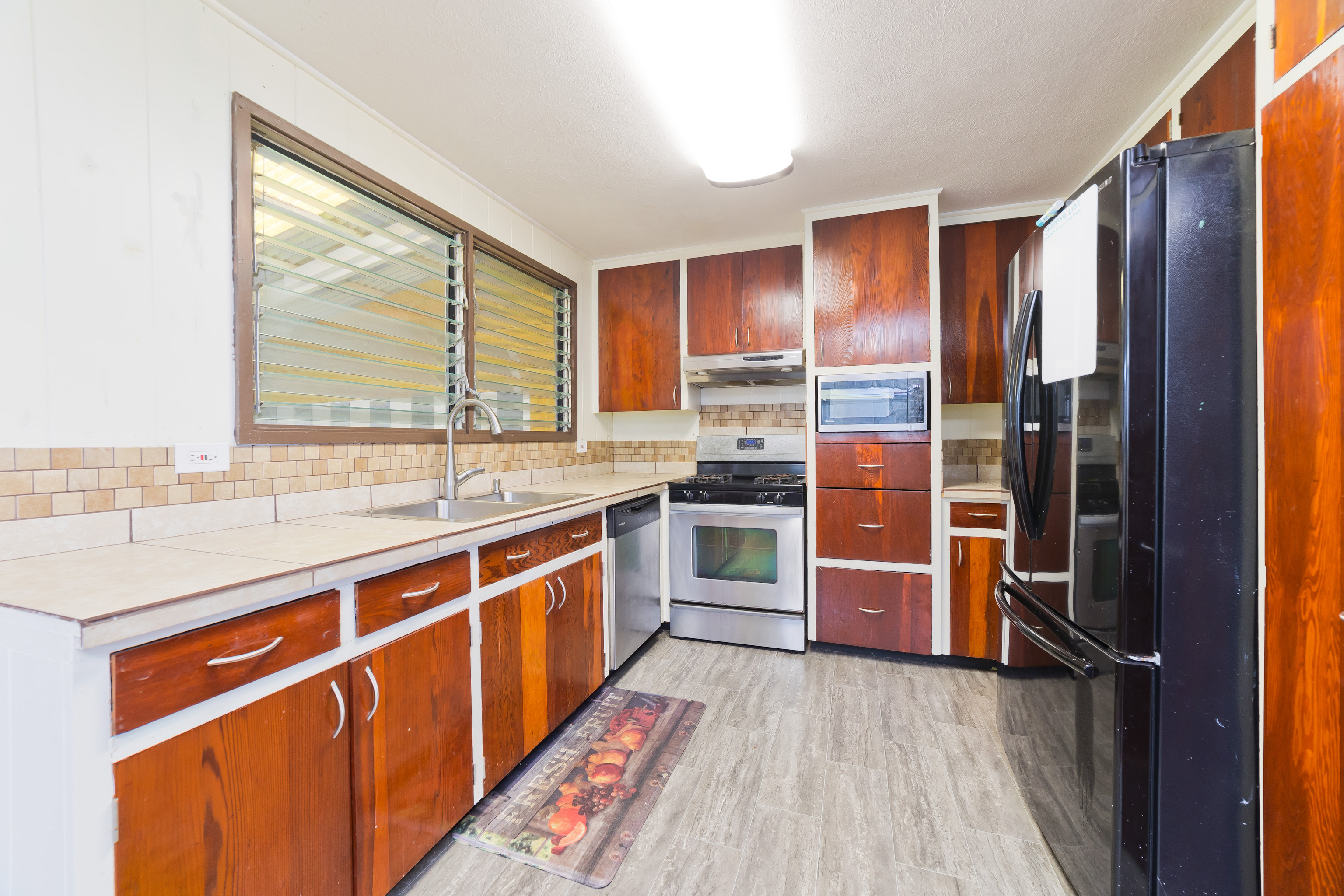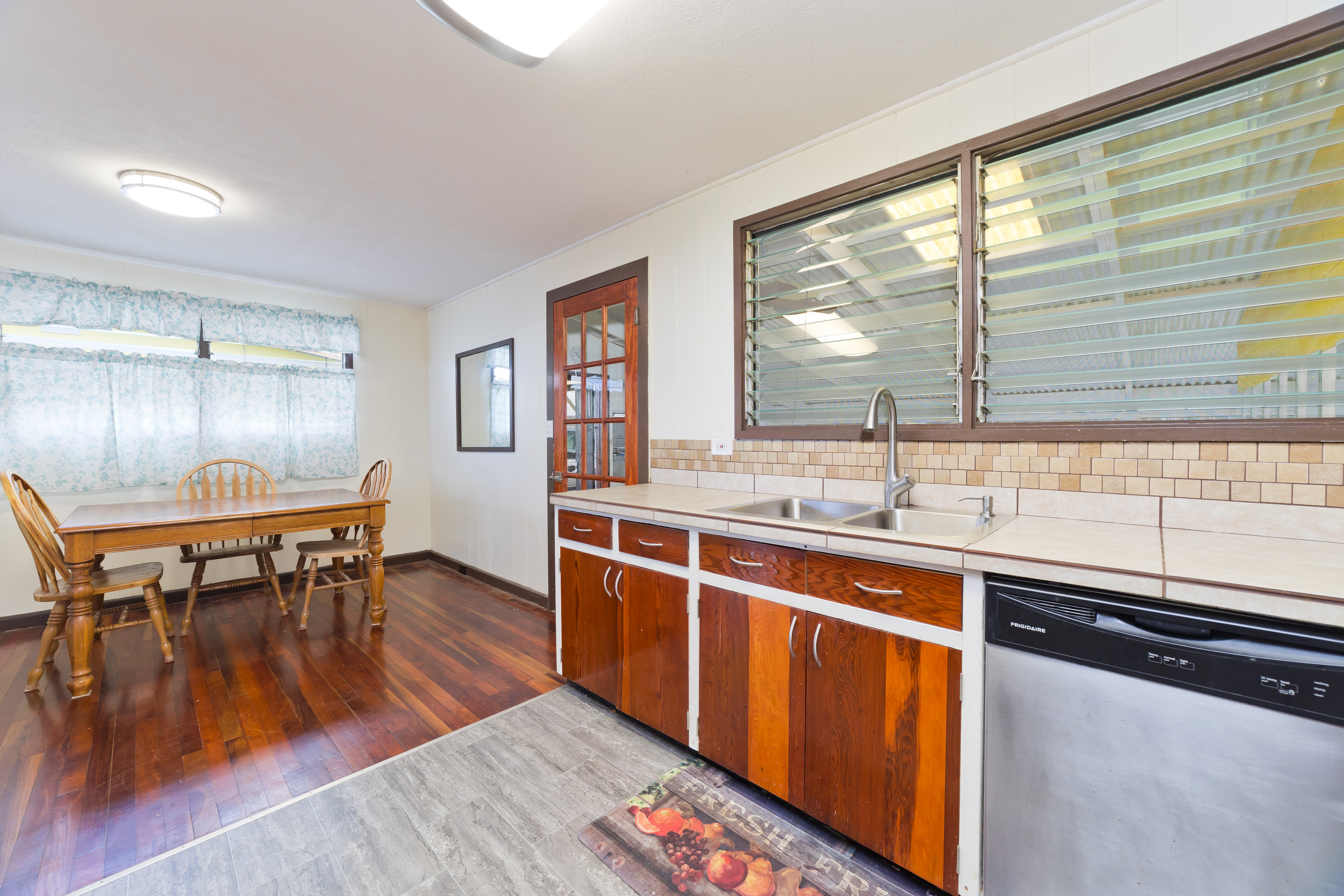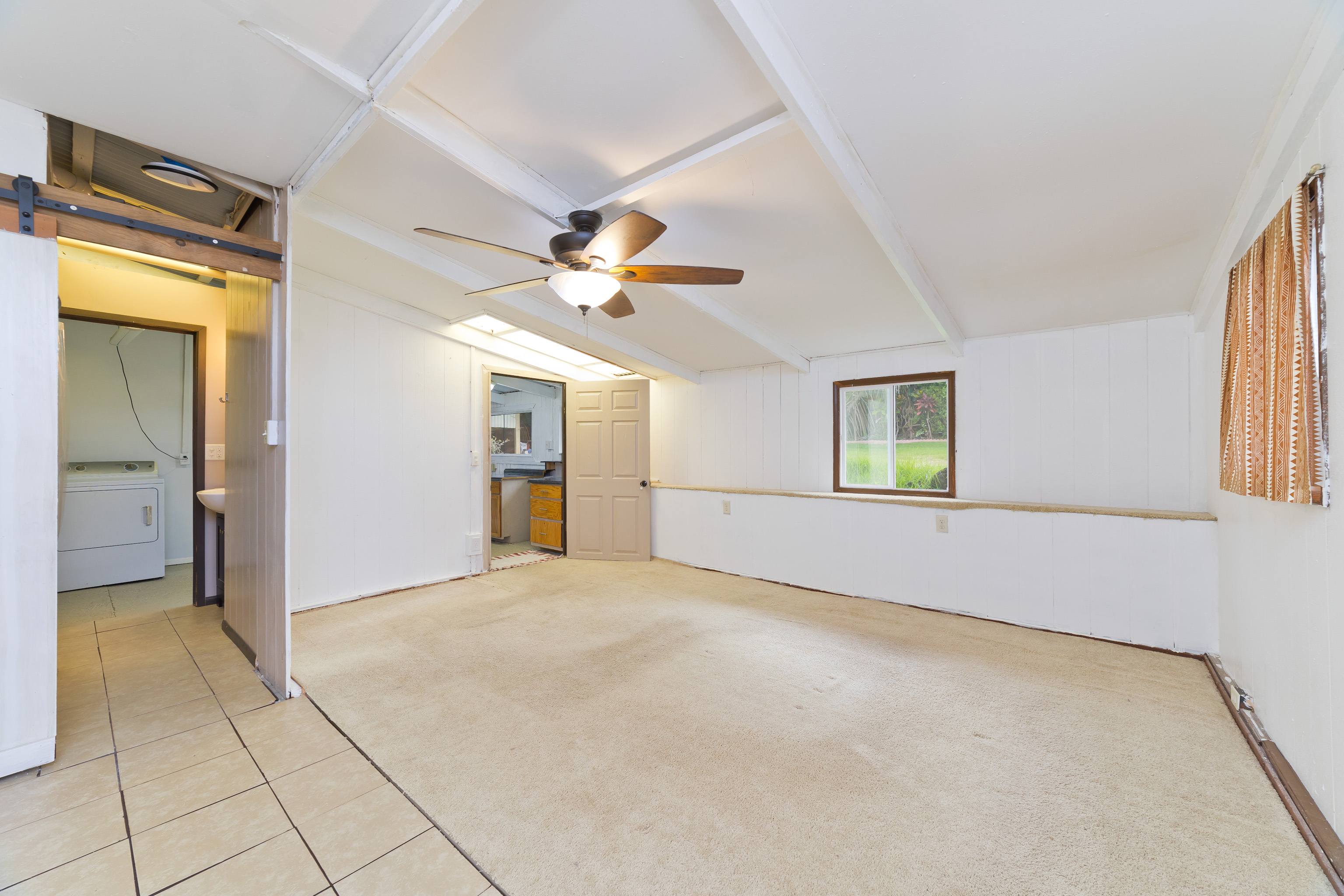 Welcome to this well maintained Captain Cook property being offered by a member of the original family owner. Pride of ownership is very obvious in this well maintained and updated 5 bedroom 4 bath home and attractive landscape. Situated at a cool and comfortable elevation of approximately 1,350', this property is located in a well established area close to schools, hospital, shopping and public services. The home is comprised of a 3bd/2ba main area of 1,056sqft, together with a studio/recreation addition of 336sqft and a large carport of 792sqft that has tastefully been converted to a bedroom, bathroom, laundry and recreation area. In addition, the carport (336sqft) and the attached workshop (303sqft) were both built in 2015. Some of the notable features of the home include:- * Resplendent hardwood flooring in the living room, dining area and hallway. * Updated bathrooms in the main area. * Newly carpeted bedrooms in the main area. (June 2025). * Updated cupboards and refinished cabinetry in the kitchen. * Storage area under the house. * Termite tented in June of 2022. Clean Termite Report 12/01/2025. * Exterior of house was painted in July 2025 along with bedrooms. Landscape:- * Attractive low rockwalls define the northern, eastern and western boundaries while the southern boundary is defined by a high wooden fence. * A flat area of lawn fringed with plants of the eastern side and a small lawn area in the south western corner. * Producing bananas and a mango tree together with a healthy lauhala tree. * Plenty of room for raised garden beds. This enviable property is located midway between Captain Cook and Kealakekua townships and a short drive from the Mamalahoa Hwy./By Pass intersection. Video of property: https://player.vimeo.com/video/1097756794