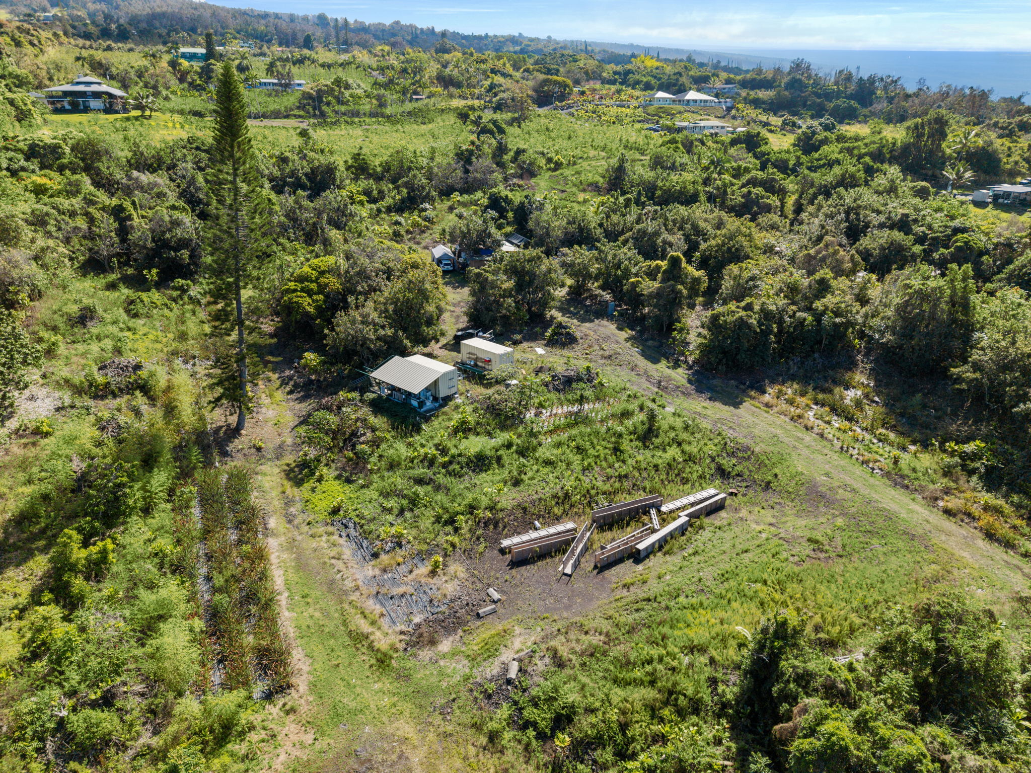 A rare and remarkable 7+ acre fully fenced South Kona farm estate with ocean views, and established agricultural income potential, conveniently located just south of Kealakekua. Gently sloping and highly usable, this A-1A zoned agricultural parcel offers huge potential, with already established privacy and productivity. The orchards include hundreds of mature macadamia nut trees, acres of white pineapples, more than 100 mango trees, plus bananas, papayas, and abundant young citrus. Cleared interior roadways allow vehicle access throughout the property, making maintenance and harvest efficient and enjoyable. Multiple gated entry points along two boundaries provide flexibility for future planning. Two unpermitted dwellings are currently used as residences. Ready for improvement or redevelopment, the unpermitted structures can be upgraded or replaced. The "coffee shack” includes a kitchen and outdoor outhouse. A separate container home features an outdoor kitchen, washer/dryer, hot water heater, and flushing toilet. County water is on site and connected, a temporary electrical pole provides power, and permitted septic and cesspool systems are in place, making this a much simpler process to build on than starting from scratch. With established plantings, existing infrastructure, and expansive usable acreage, this property offers an excellent foundation for a new custom home, full farm operation, hobby farming, agricultural investment, and/or a multi-generational living compound. Enjoy peaceful country living while remaining close to the conveniences of being a few minutes from shopping, dining, schools, and the Alii bypass to Keauhou and Kailua Kona.