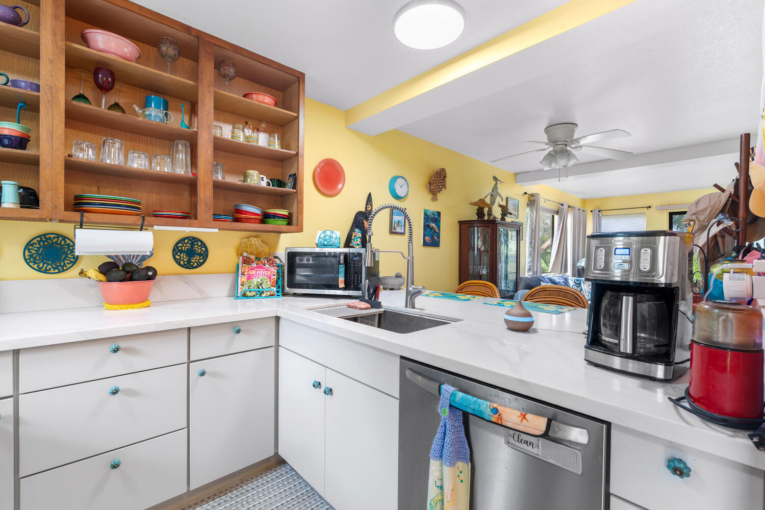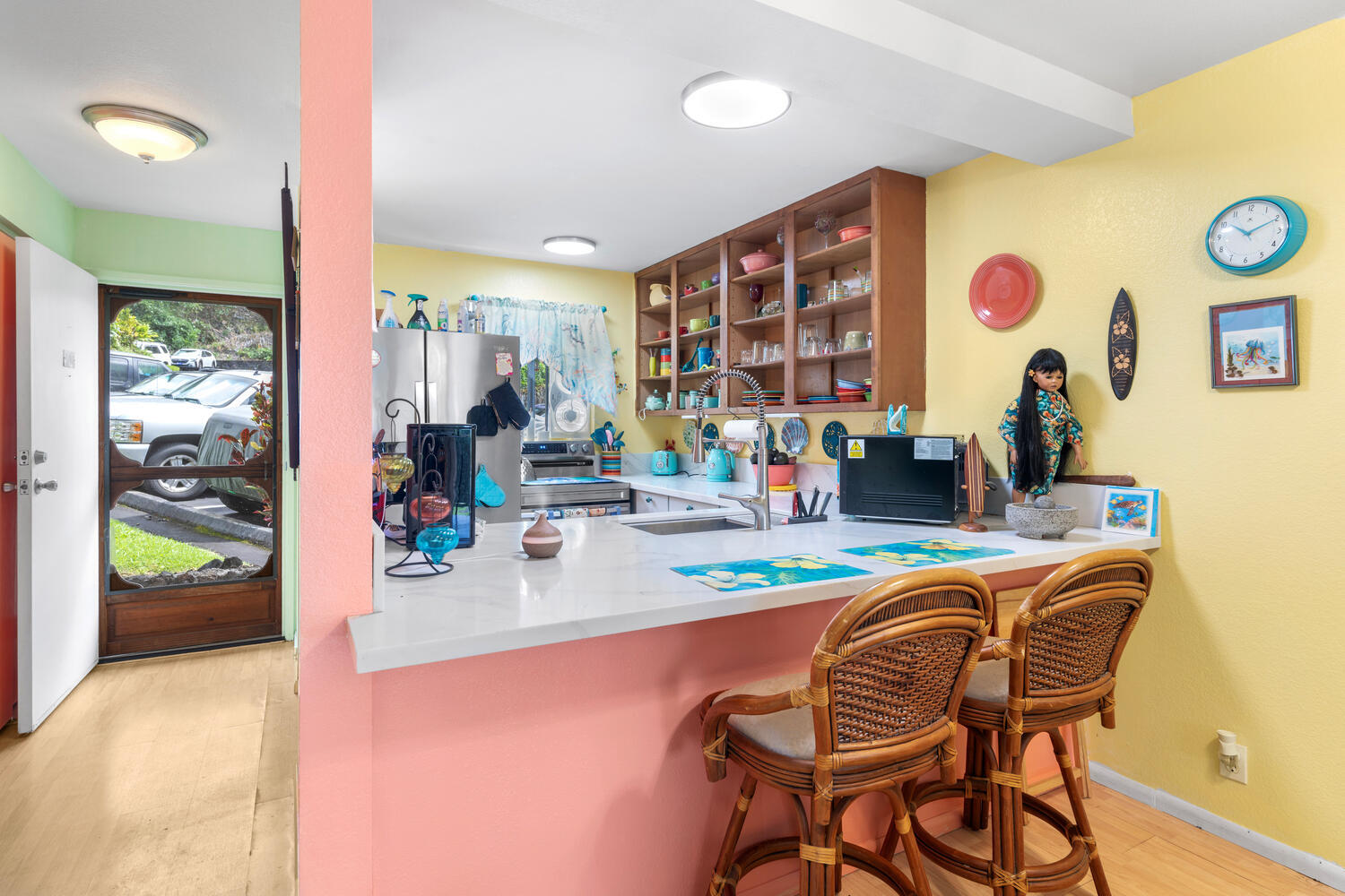 Welcome to your serene South Kona retreat. This beautifully maintained, owner-occupied end unit offers comfort, convenience, and the true essence of island living. With no stairs to navigate, the home is easily accessible and opens directly to a lush grassy lawn just outside the living room sliding doors-perfect for relaxing with your morning coffee or unwinding at sunset. Shady landscaping along the south side windows enhances the sense of peace and privacy, filling the home with gentle filtered light. Inside, thoughtful upgrades create a fresh and modern feel while keeping the island charm. Both bathrooms were recently renovated with new toilets, vanities, showers, and flooring, while the kitchen shines with its updated lower cabinets, countertops, appliances, and flooring. Most rooms have been freshly painted, offering a clean, move-in-ready canvas. Practical updates include a newer washer, replaced within the last two years. And as an added bonus, the seller is offering a $3,500 concession toward flooring, giving you the opportunity to personalize this space and make it truly your own.