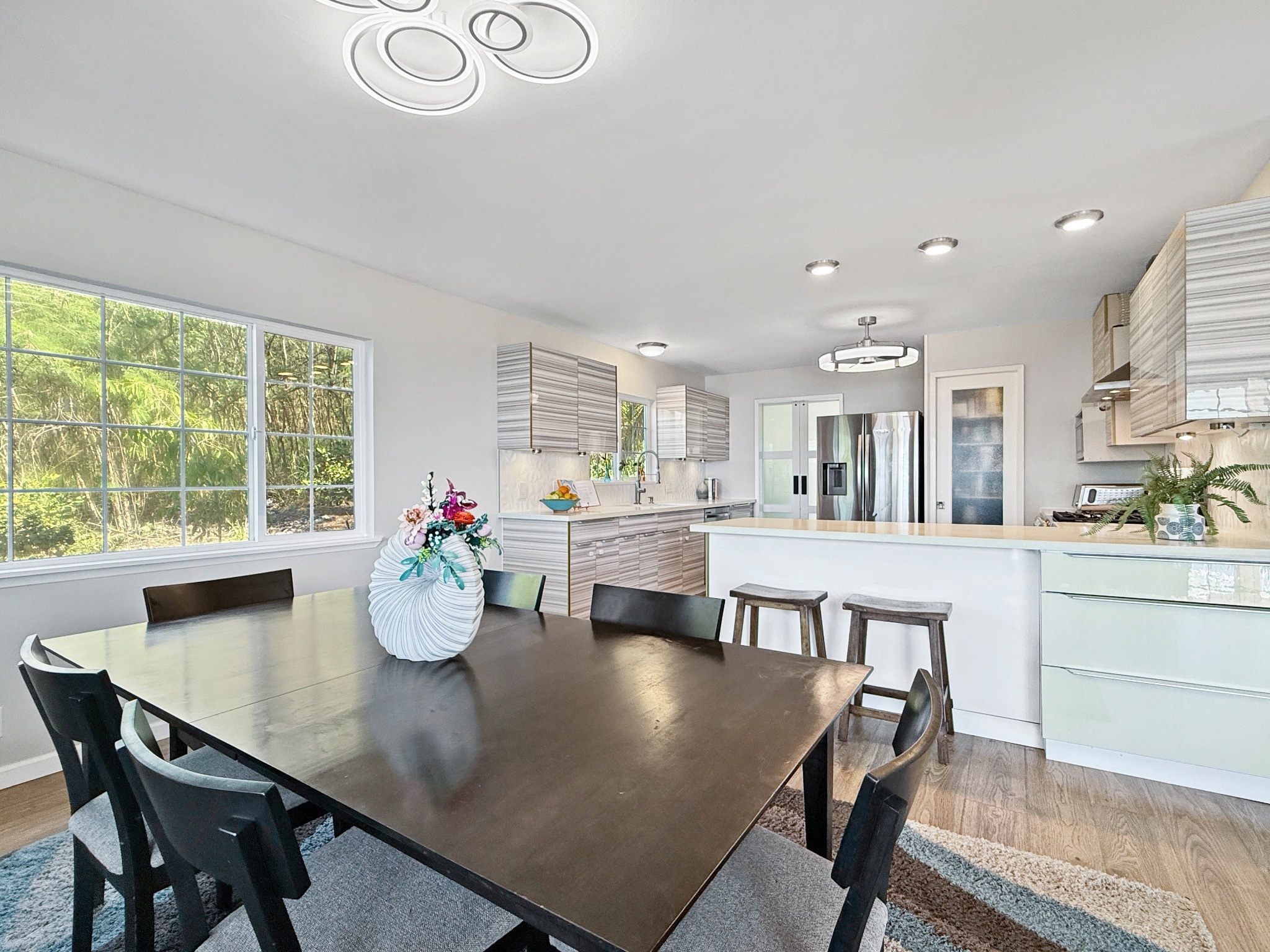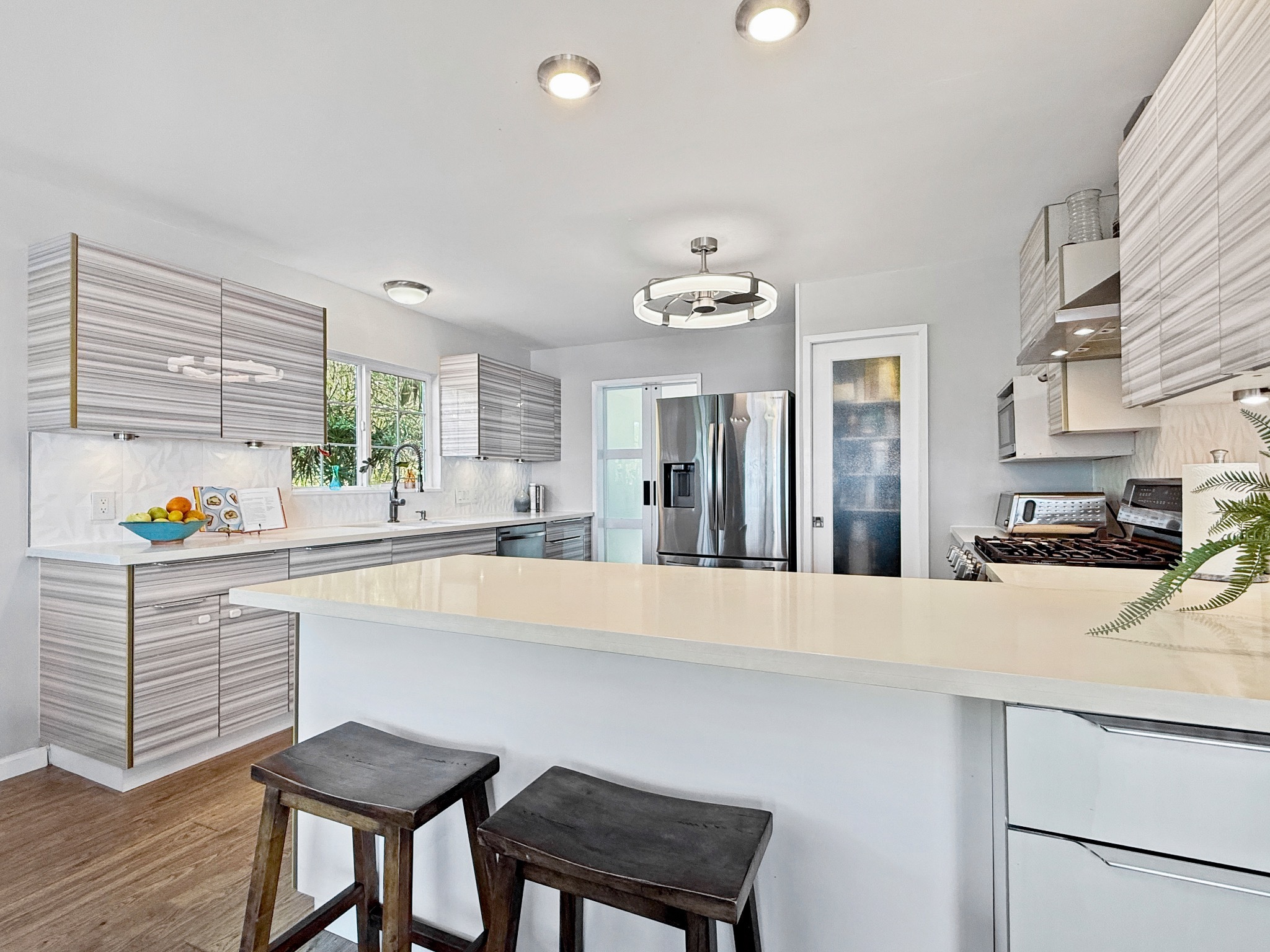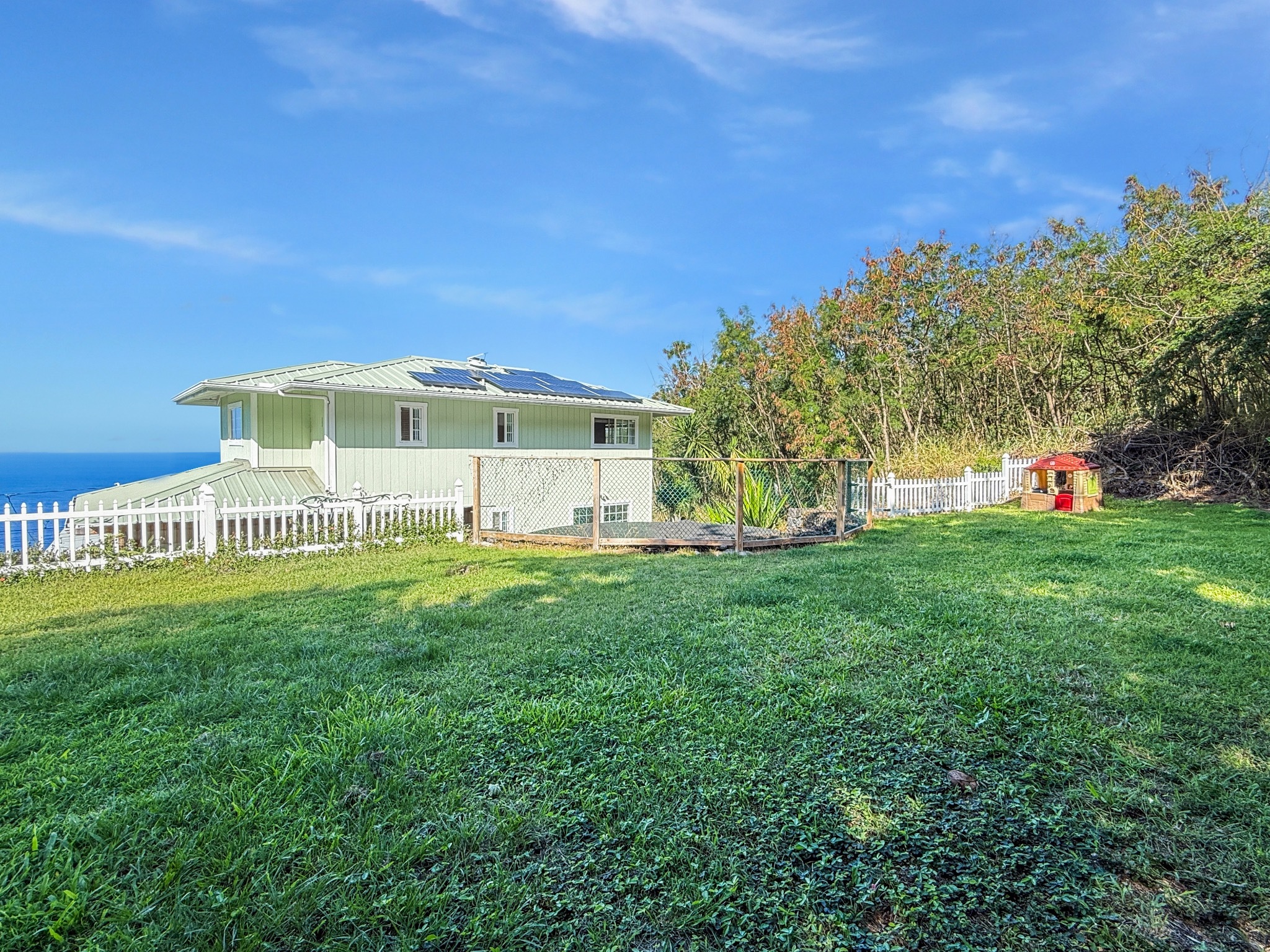 Don't miss this incredible gem in beautiful Kona Paradise...featuring expansive ocean views, large lanai, separate guest quarters and a photovoltaic electric system with Tesla battery backup. With four bedrooms and three bathrooms in the main house...plus additional finished space in the lower level...there's plenty of room to hang out inside. And with large lanais and a big, flat backyard, there's ample space to entertain or relax/play outside. Lower level: Guest quarters with private lanai, large great room/studio with kitchenette, storage room & bathroom. Main level: Wraparound lanai, vaulted great room with exposed beams, dining room, generous kitchen with expansive countertops, bonus room, bathroom & garage (including laundry area). Upper level: Primary bedroom/bathroom suite, three bedrooms & bathroom. Features include: - Metal roof - Solar hot water - 22 photovoltaic panels with Tesla battery - New fencing (both wood & vinyl) - Vinyl plank flooring - Propane oven/range - Stainless appliances - Quartz countertops - Bar area with kegerator - UV water filtering system - 2-car garage - Fruit trees, including avocado, lemon, tangelo, fig, banana Kona Paradise is located just 30 minutes south of Kailua Kona and offers incredible, perched views of the Pacific Ocean. It's a short trip down the hill to Pebble Beach, or a short drive to other beaches and restaurants, shops and farmer's markets.