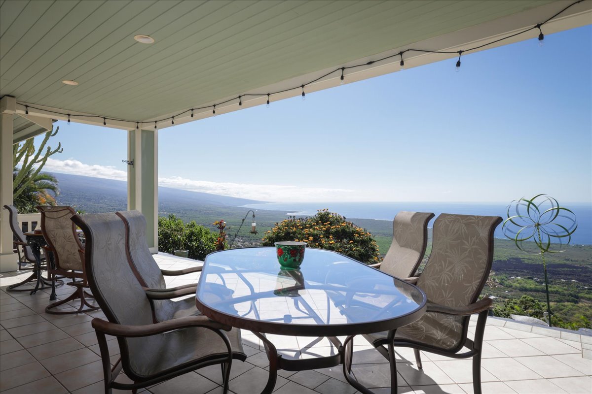 This stunning 4-bedroom, 3.5-bath home captures some of the most coveted views in Kona. From the front lanais, the panorama extends from historic Kealakekua Bay–where Captain Cook first landed in Hawai‘i and where dolphins, surfers, and fishermen still gather today, down the beautiful South Kona coastline as far as the eye can see.