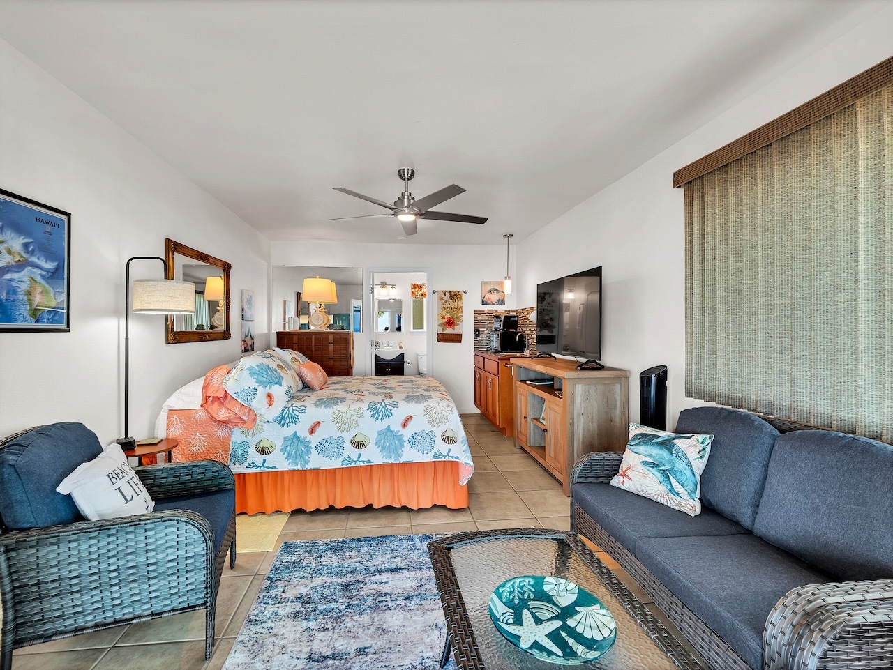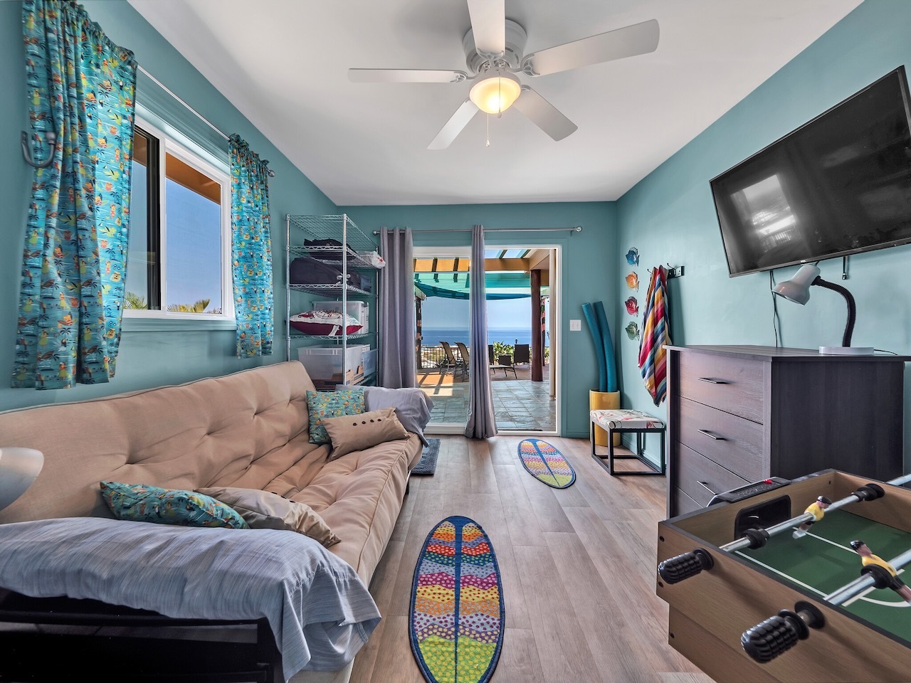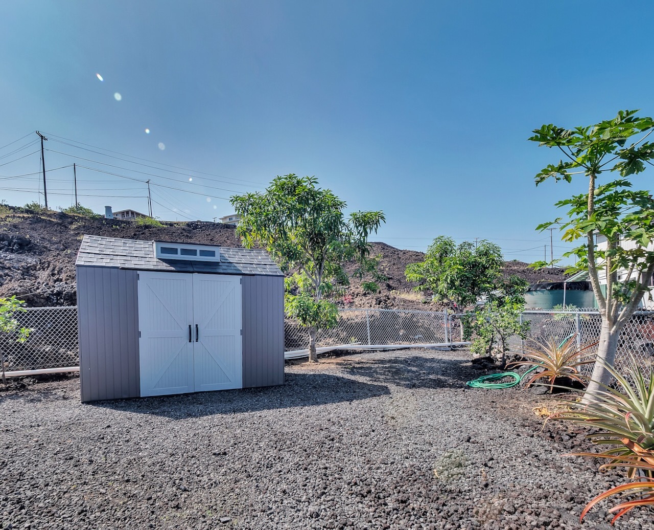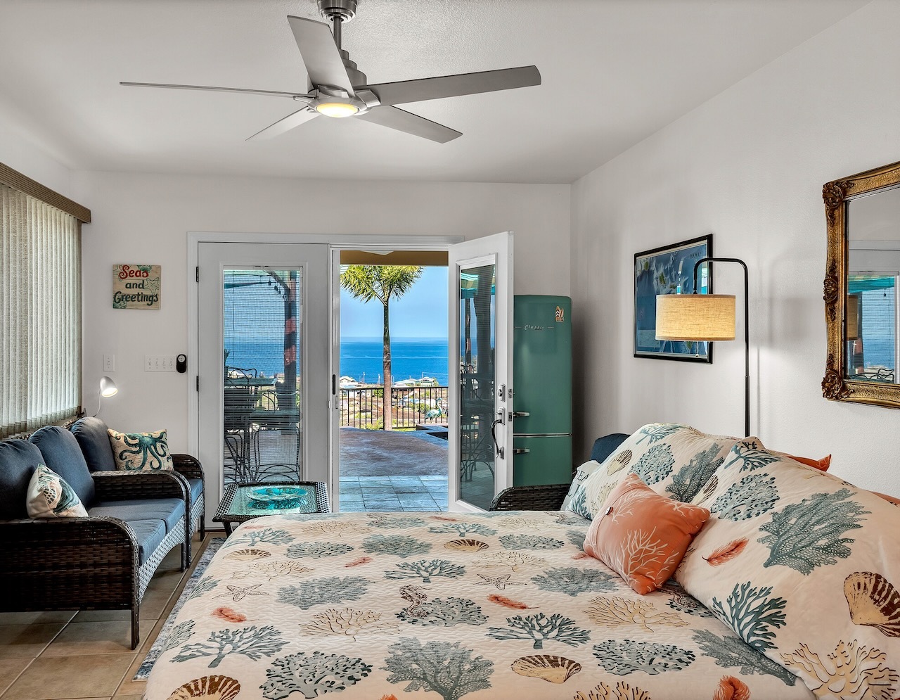 Commanding ocean, coastline, & sunset views create a truly breathtaking backdrop for this exceptionally refined, fully furnished island retreat where absolutely no detail has been left unfinished. Meticulously & comprehensively updated, the home reflects a level of care & craftsmanship that is immediately evident. Enhancements include fresh interior & exterior paint, designer light fixtures & fans, all new appliances, & newly sealed lanai concrete. A $20,000 pool upgrade, along w/ a new house pump & pool pump, elevate function & enjoyment. Upstairs features 2 bedrooms w/ private lanais, 2 baths, & an open-concept kitchen, living, & dining area with vaulted ceilings, striking ohia wood posts, & custom blinds. Designed to capture exceptional views from every angle, this layout flows seamlessly to the lanai for true indoor-outdoor living and decorative railings preserve the open feeling. Downstairs is a 1/1 living space with kitchenette, ideal for guests, extended living, or hosted rental opportunities. A newly converted rec room/she shed/man cave adds lifestyle flexibility. Outdoor living is nothing short of extraordinary. A sparkling pool (3’—8.5’ depth) with entertainment lighting anchors the space surrounded by stained concrete decking & a pergola lounge area perfect for admiring the ever-changing ocean and sunset views, relaxing or entertaining under the Hawaiian sky. Highlights: Owned Photovoltaic system - Tesla battery & 21 years remaining on the warranty 10,000-gallon catchment system with double UV filtration Solar driveway gate w/ remote, property fully fenced, security cameras & motion detectors Foxtail palms, meticulous easy landscaping & solar lighting Lime, lemon, mango, papaya, & pineapple. 2-car carport with W/D, new boat carport Septic system in place–no cesspool conversion required. A rare offering where luxury, beauty, & thoughtful design converge–impeccably maintained & 100% move-in ready.