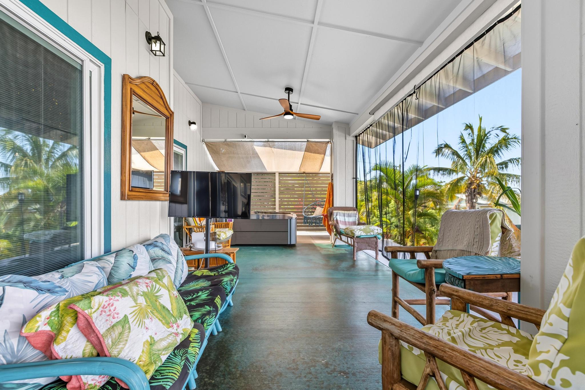 Step outside to the expansive lanai with uninterrupted 360° ocean views, perfect for entertaining with a full outdoor kitchen–including a sink, stovetop, and BBQ area. Relax in the Hot Spring 2-seater saltwater spa with precision jets as you take in the panoramic views. An outdoor walk in shower that is a ADA friendly.