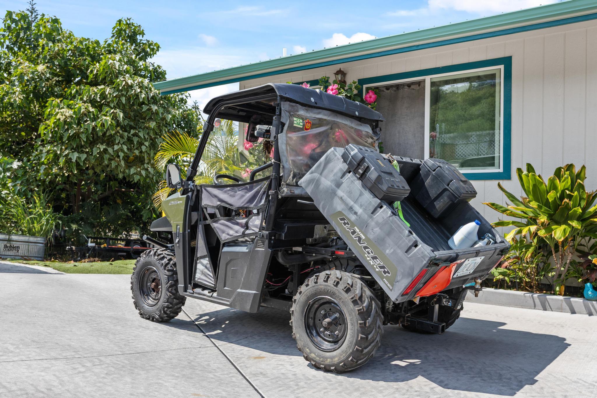 Also included is 2019 Polaris Ranger 4x4 dump bed to ride to Milolii beach or on property grounds with a one man outrigger canoe.
