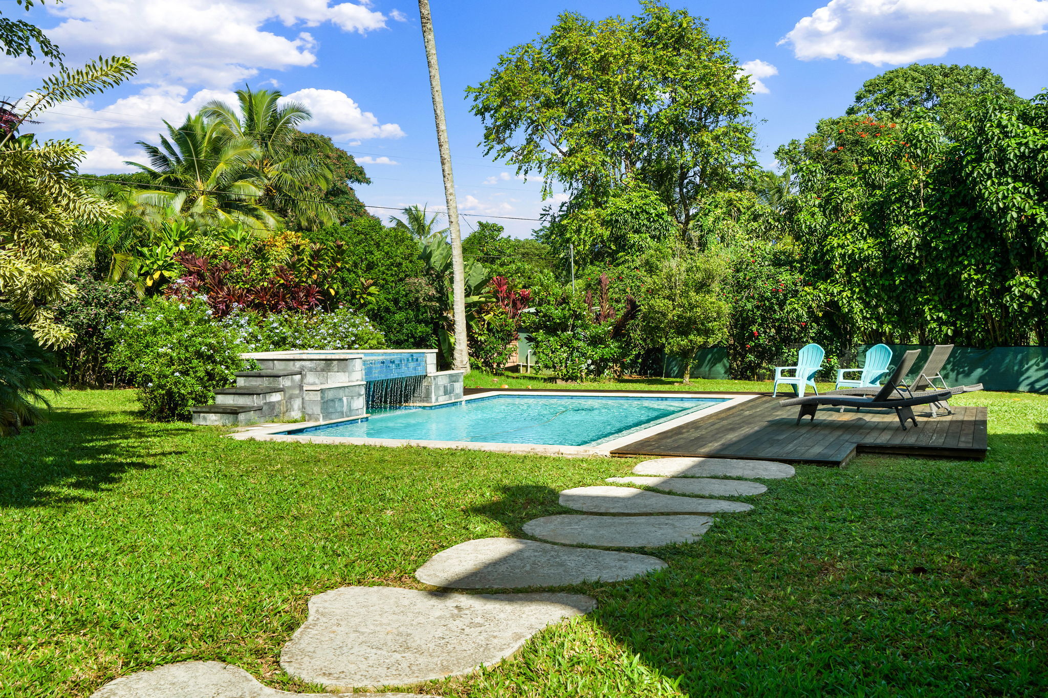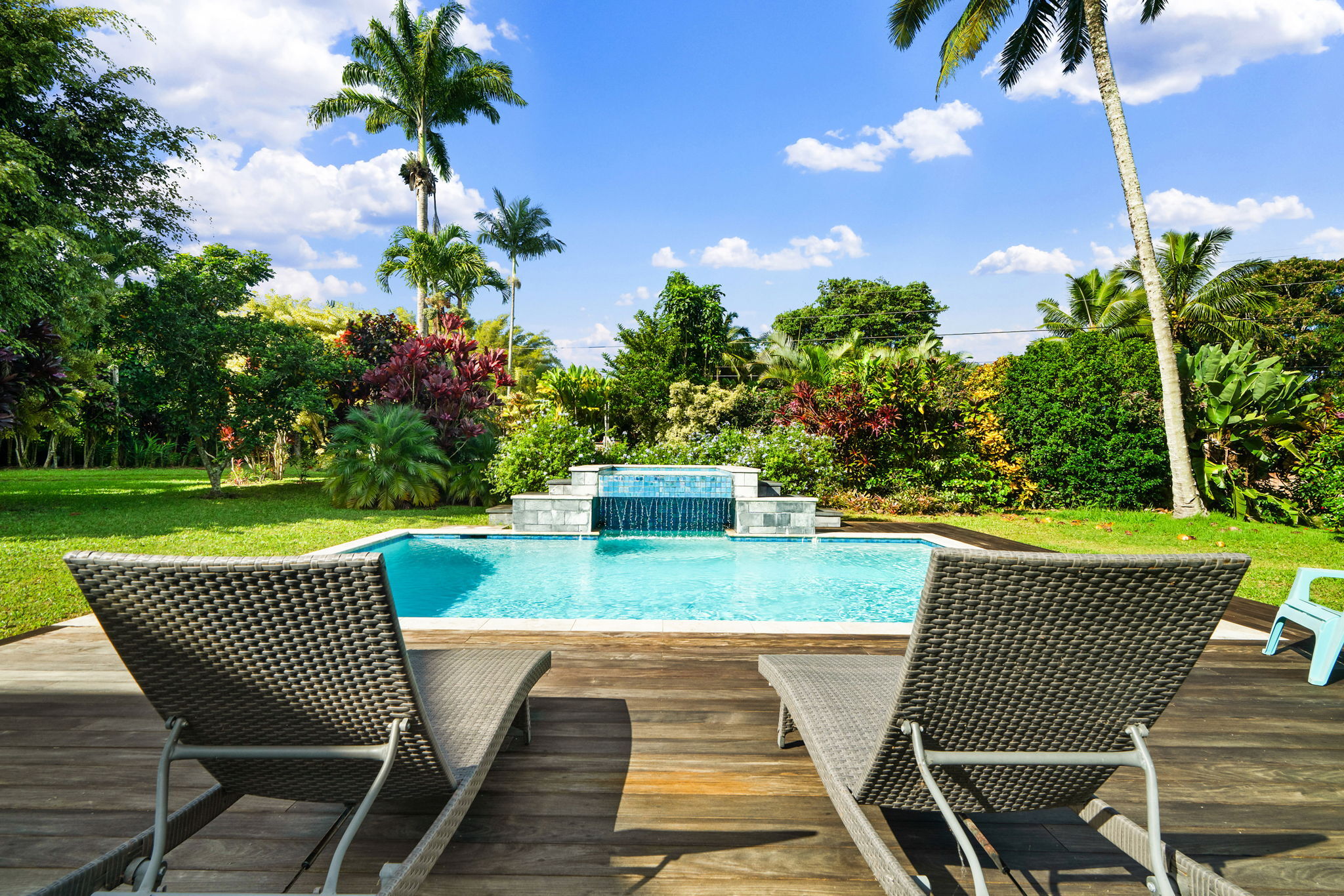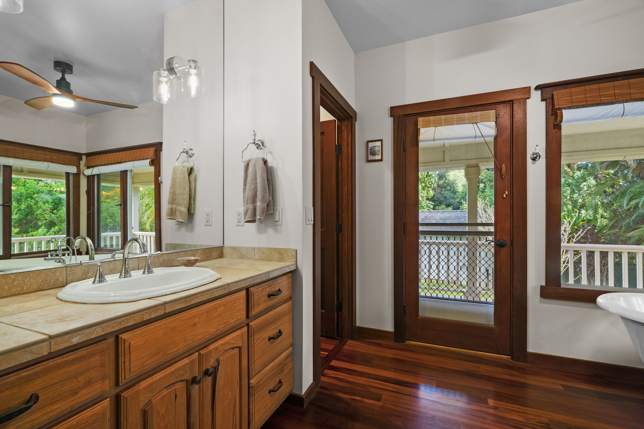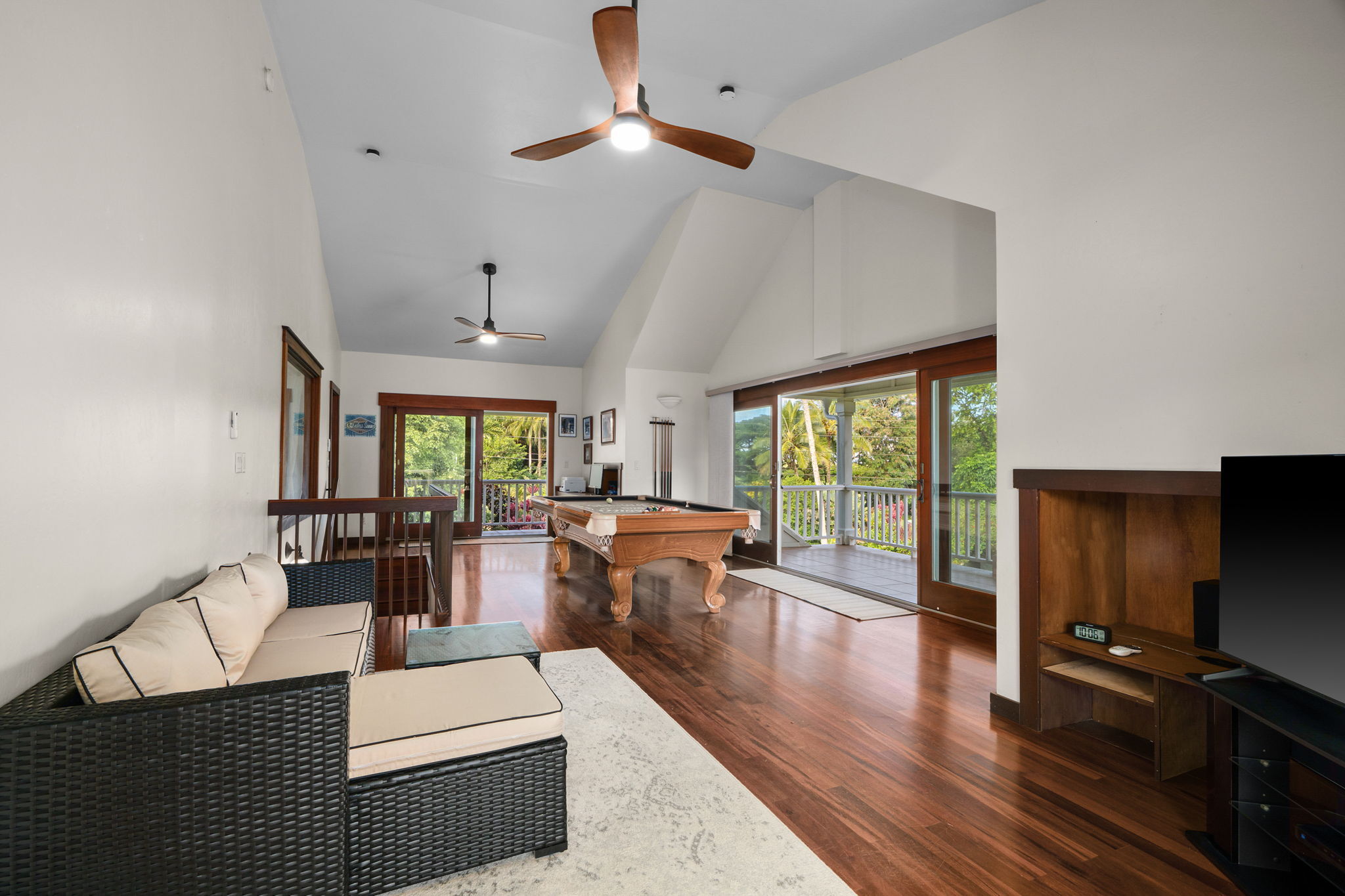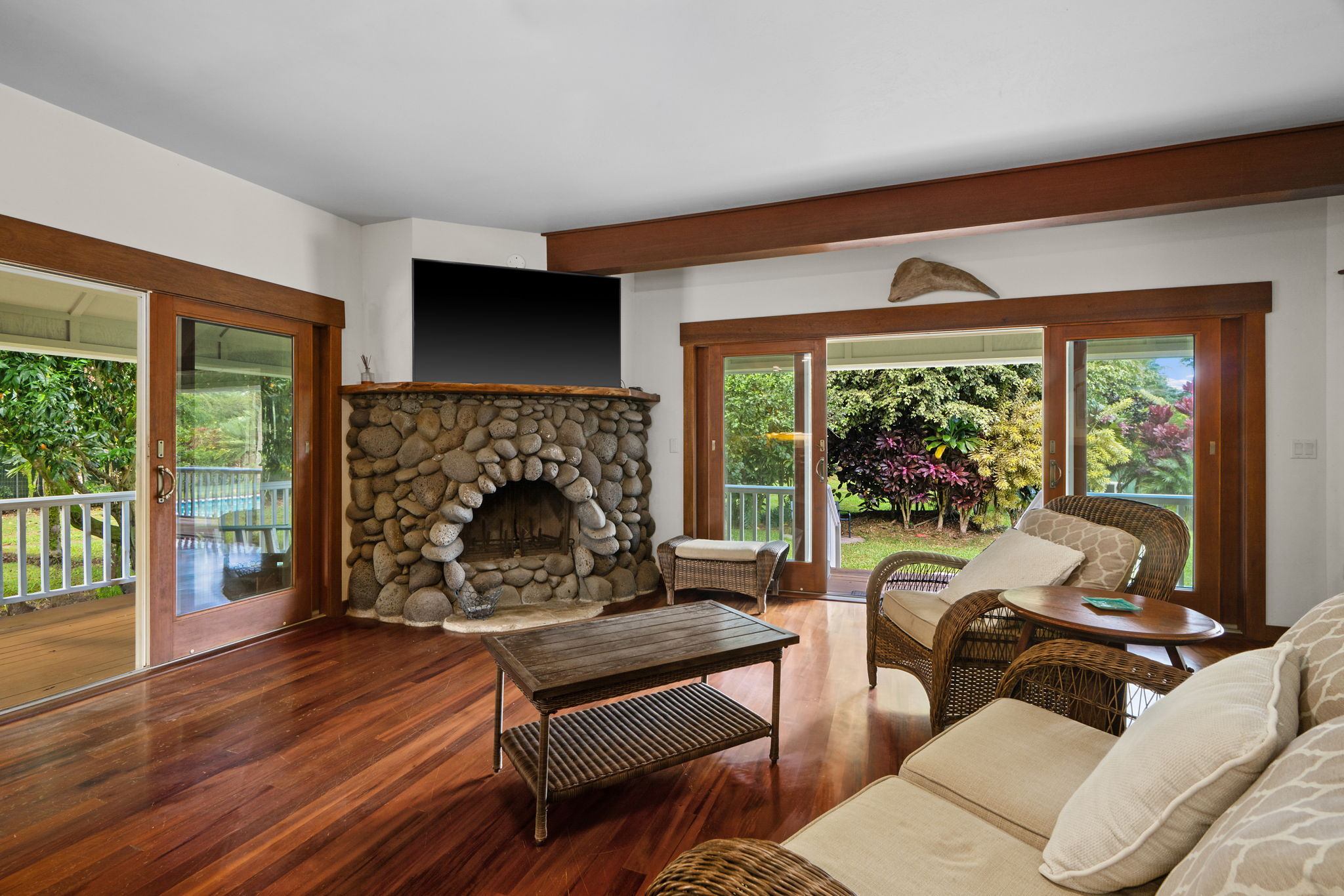 As you drive up to your home the electric gates open to your private tropical oasis and a true hidden gem. The home is exceptionally comfortable, thoughtfully designed, and meticulously maintained. Set in upper Kilauea Farms, the residence sits in a lush, 1 acre botanical-garden setting that enhances its classic plantation style.