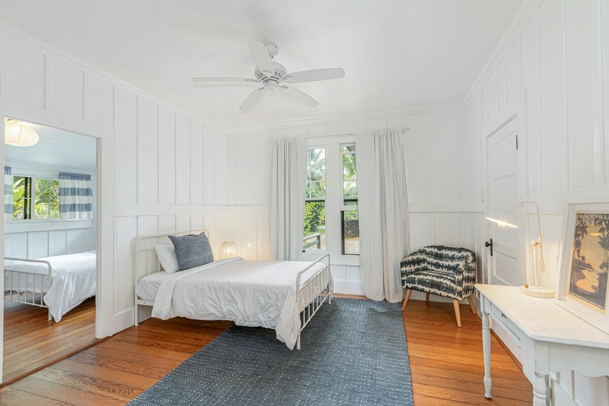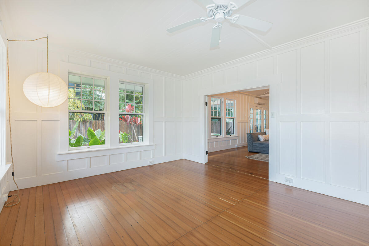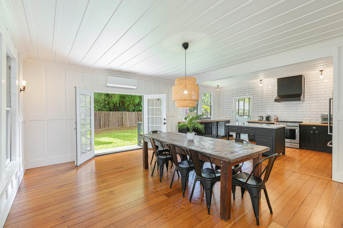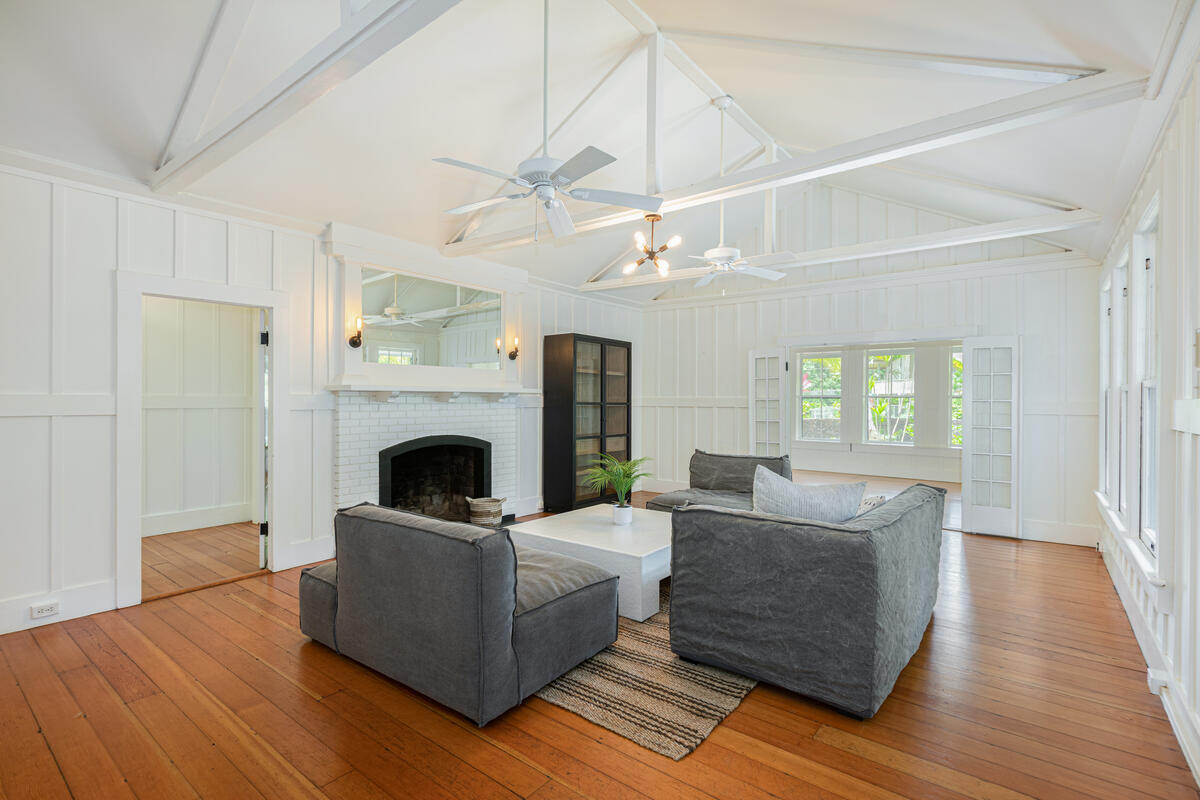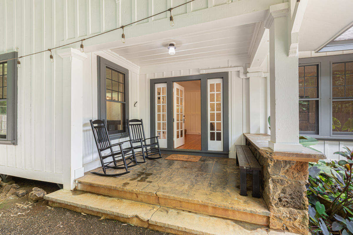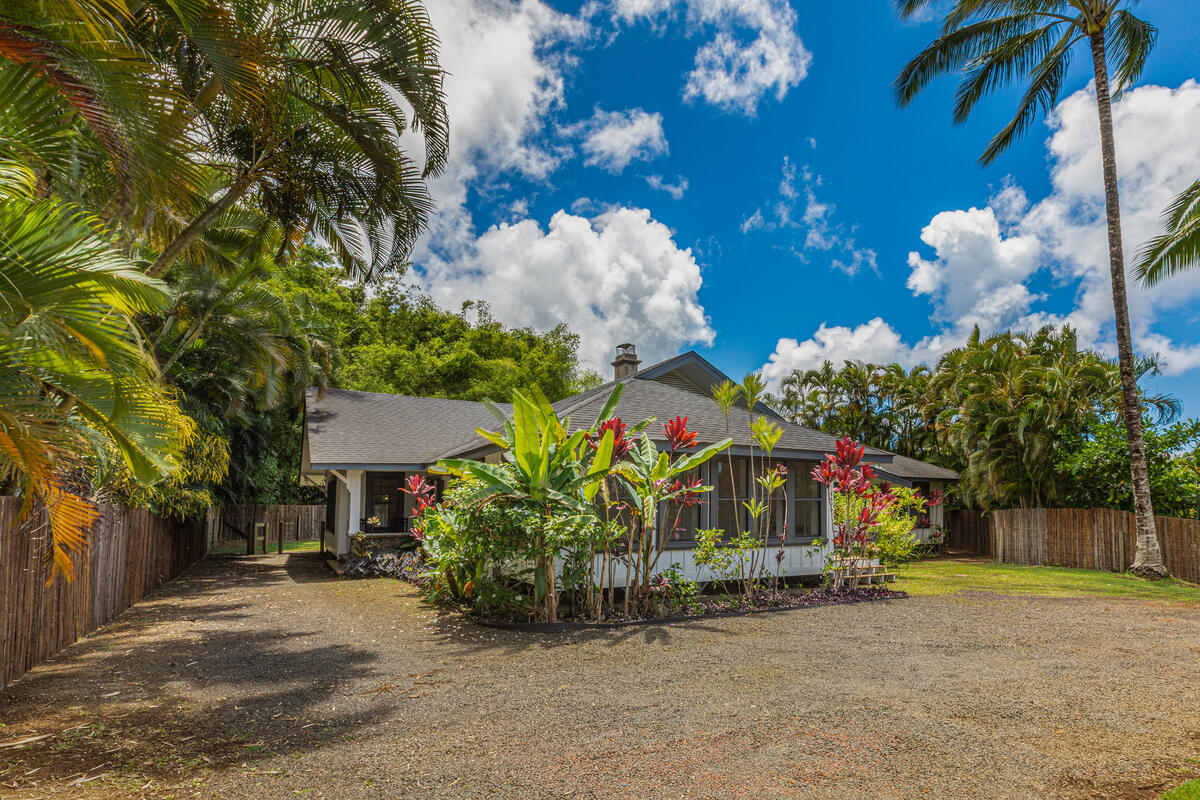 Welcome home to this beautifully updated Kilauea gem! Originally built in 1920, this home seamlessly blends the charm and craftsmanship of yesteryear with the modern amenities you know and love. Nestled in a peaceful neighborhood, you’ll enjoy the perfect balance of privacy and convenience–just a short stroll to Kilauea School and town, yet tucked away from busy streets. This spacious 3-bedroom, 2-bath home offers thoughtful details throughout. The third bedroom includes an additional flex room–ideal for a home office, playroom, or guest space. The large, open kitchen is perfect for cooking and entertaining, while the sunroom and inviting living room with open-beam ceilings offer warm and airy gathering spaces. Recent upgrades include a custom rock wall and bamboo fencing, enhancing both security and privacy–great for children and pets, spit A/C units in the living room, kitchen and 2 out of 3 bedrooms, as well as a new washer and dryer. With soaring ceilings throughout and a home that has been truly loved and cared for, this is a rare opportunity to own a piece of Kilauea’s history with all the comforts of modern living. Don’t miss your chance to make this special home yours. Property is large enough to allow for an ADU. Buyers and their agents to check with the county on building restrictions and all due diligence. Vacant and easy to show
