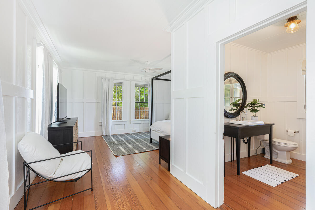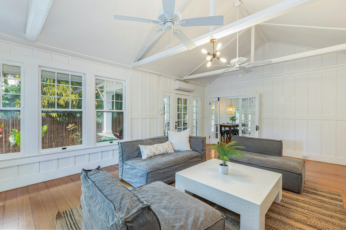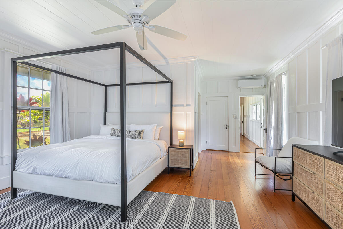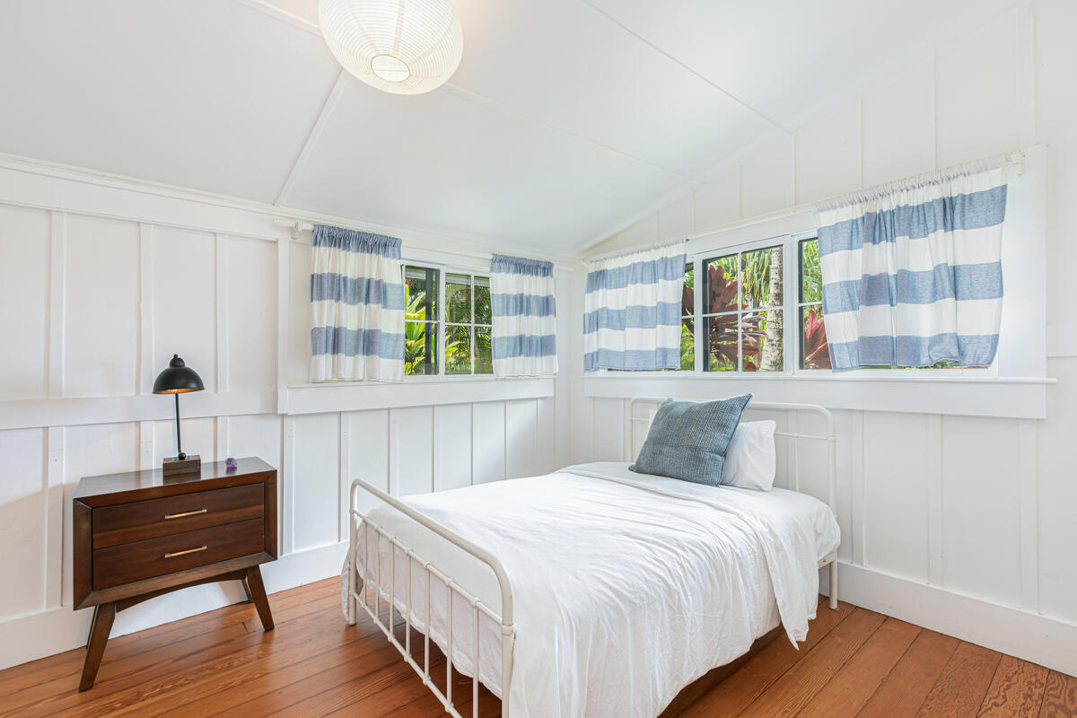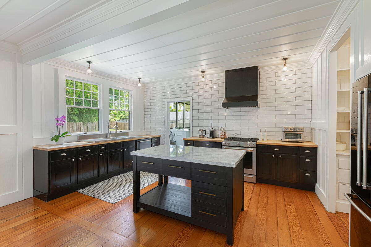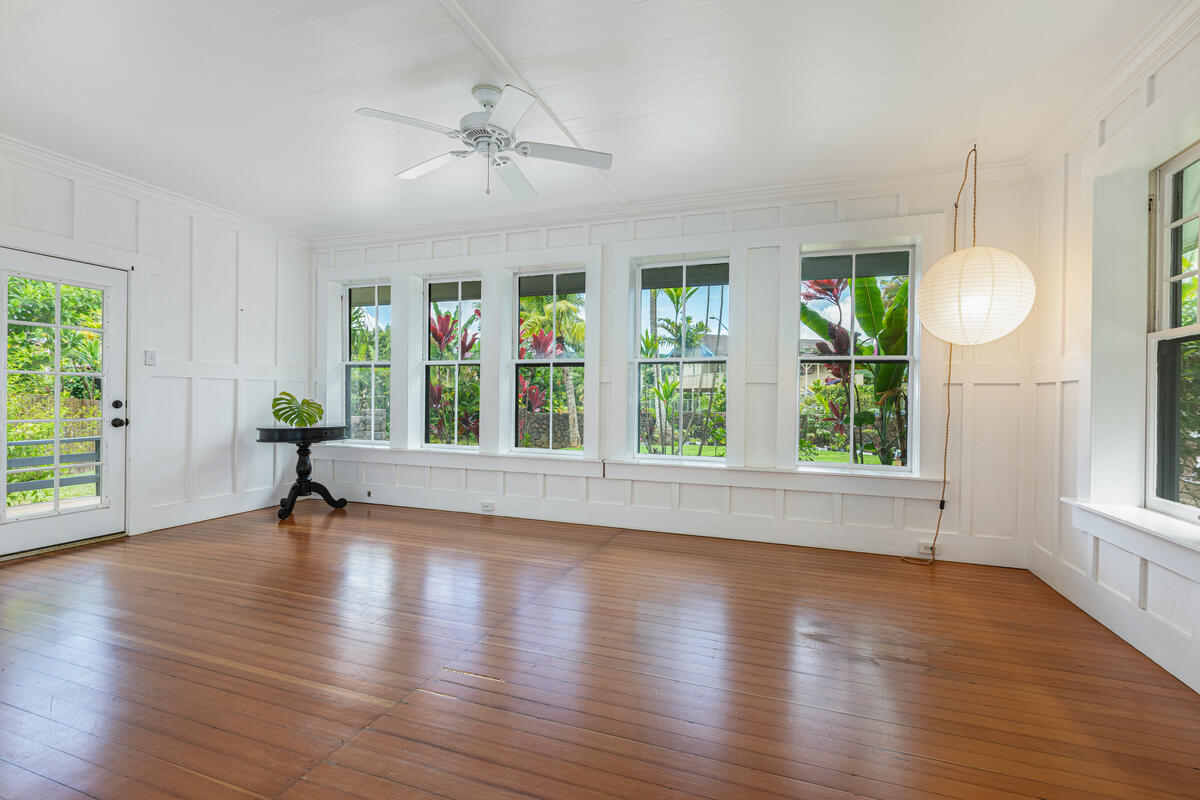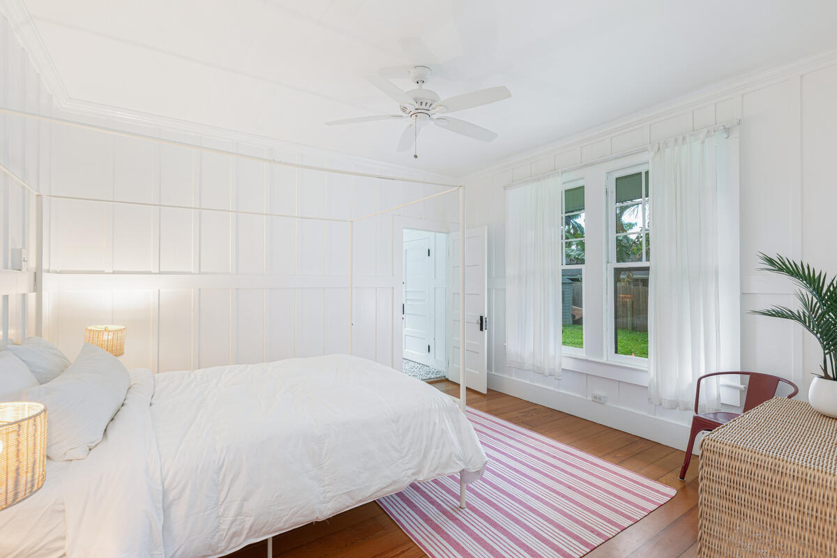 Welcome home to this beautifully updated Kilauea gem! Originally built in 1920, this home seamlessly blends the charm and craftsmanship of yesteryear with the modern amenities you know and love. Nestled in a peaceful neighborhood, you’ll enjoy the perfect balance of privacy and convenience–just a short stroll to Kilauea School and town, yet tucked away from busy streets. This spacious 3-bedroom, 2-bath home offers thoughtful details throughout. The third bedroom includes an additional flex room–ideal for a home office, playroom, or guest space. The large, open kitchen is perfect for cooking and entertaining, while the sunroom and inviting living room with open-beam ceilings offer warm and airy gathering spaces. Recent upgrades include a custom rock wall and bamboo fencing, enhancing both security and privacy–great for children and pets, spit A/C units in the living room, kitchen and 2 out of 3 bedrooms, as well as a new washer and dryer. With soaring ceilings throughout and a home that has been truly loved and cared for, this is a rare opportunity to own a piece of Kilauea’s history with all the comforts of modern living. Don’t miss your chance to make this special home yours. Property is large enough to allow for an ADU. Buyers and their agents to check with the county on building restrictions and all due diligence. Vacant and easy to show