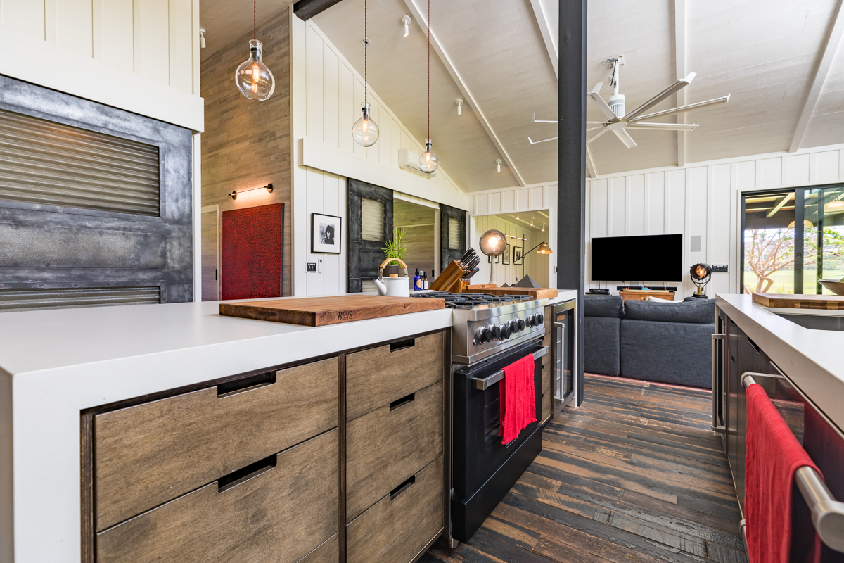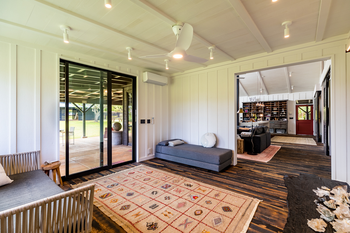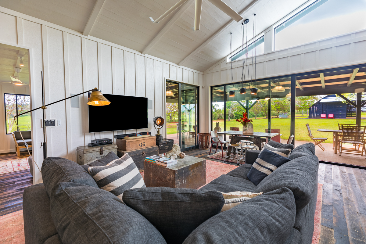More than 1,700 sq ft of covered wraparound lanais extend the living space outdoors, opening toward mountain views of Namahana and the planned location for a future pool.
