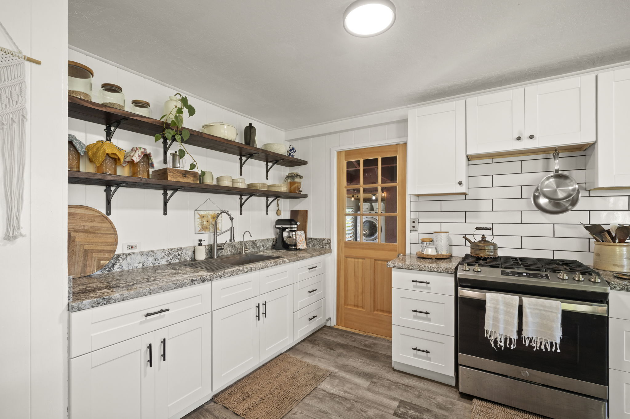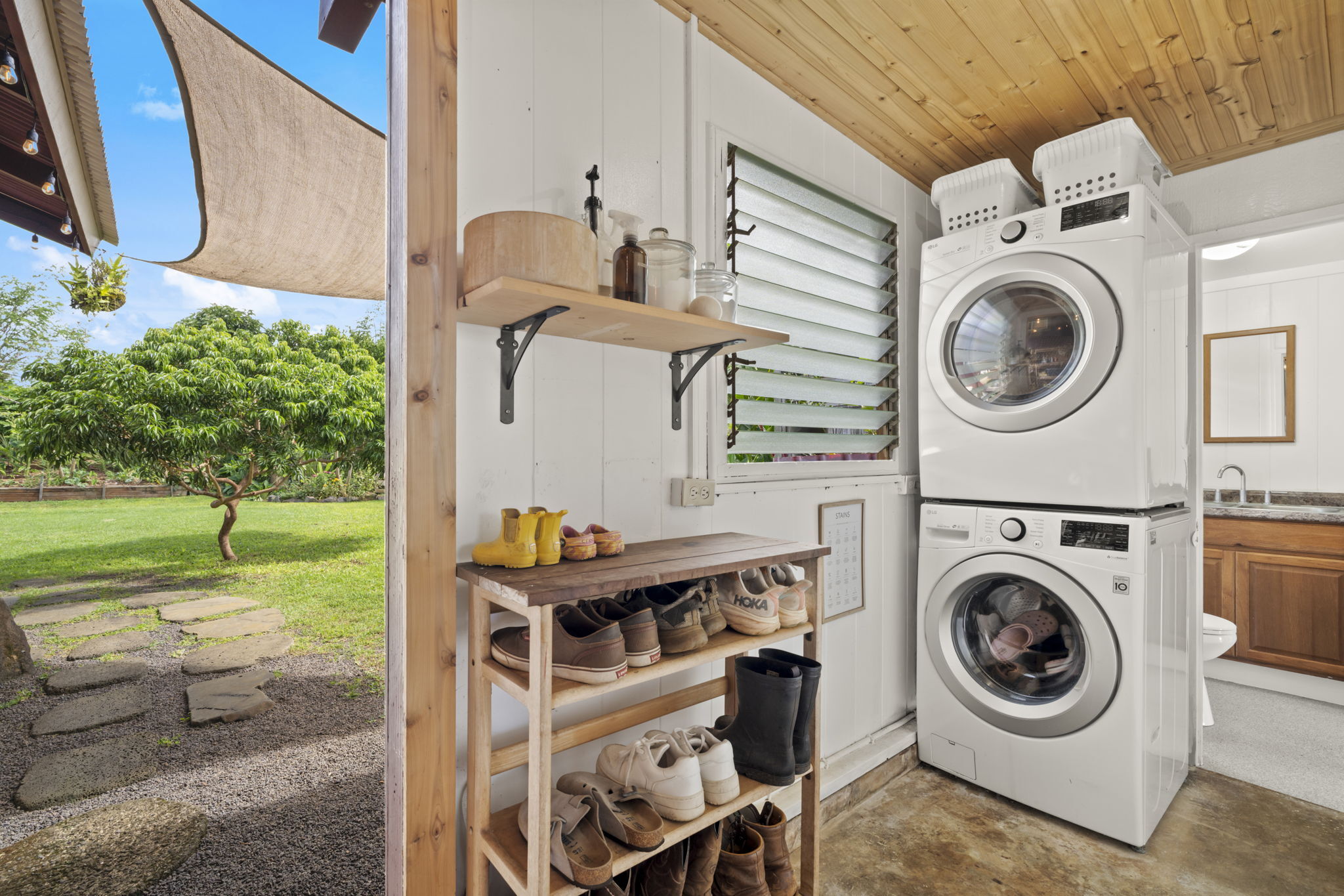 A convenient laundry area is tucked away in the back of the home allowing easy access from both the main house and studio.