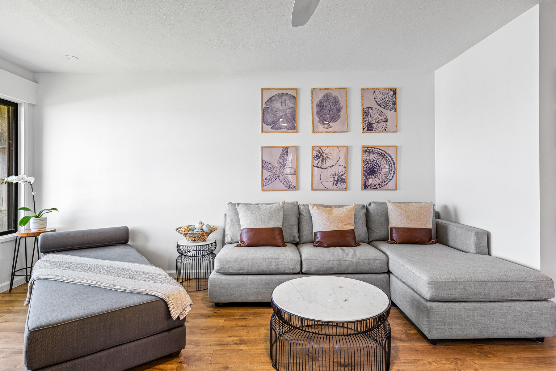~ Fully turnkey and tastefully furnished with all new Crate & Barrel furniture.
