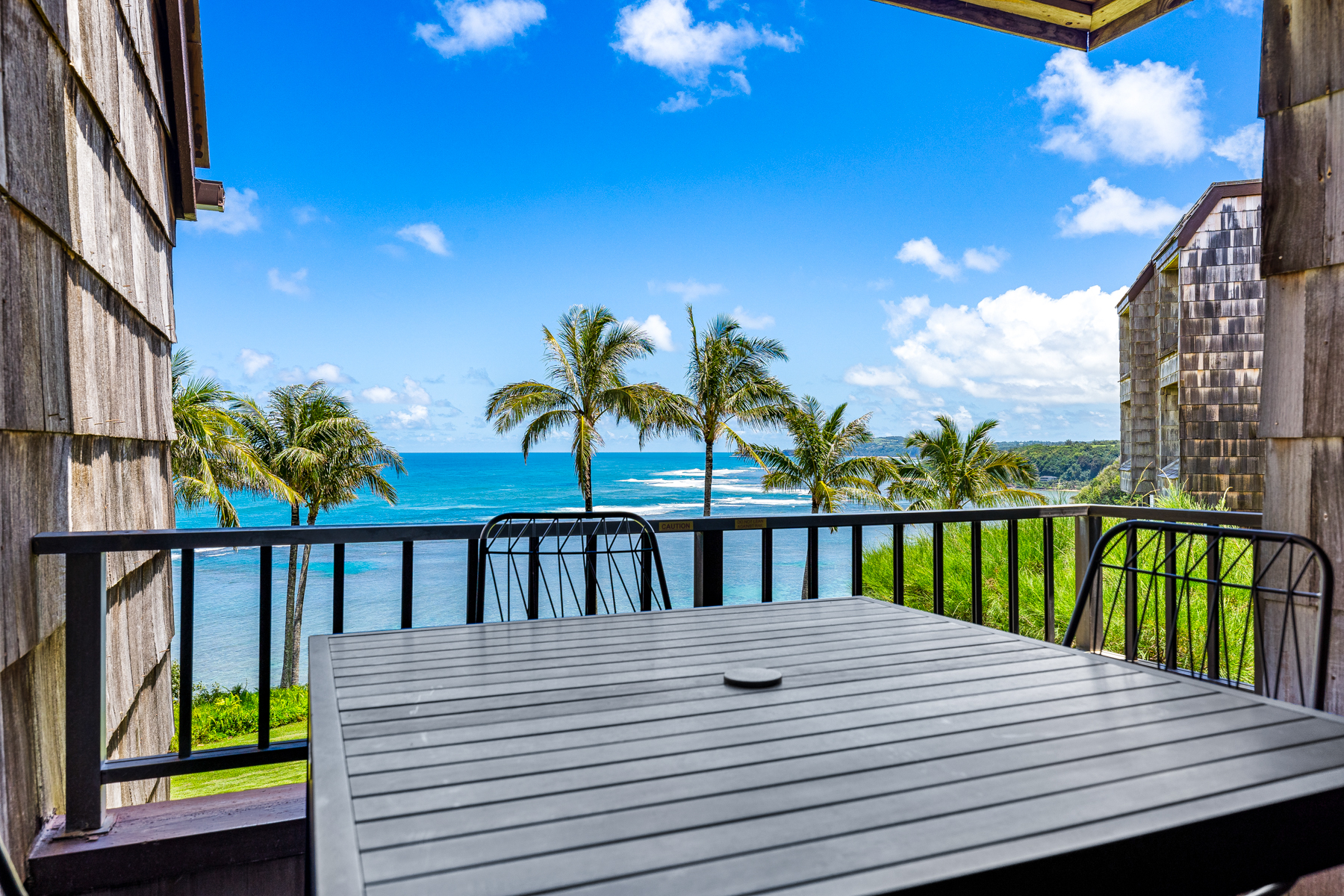 ??Sealodge H6 is a rare oceanfront gem perched on the bluff of Princeville. Modern and freshly remodeled in April 2024, this one-bedroom condo offers unobstructed, panoramic ocean views from nearly every room–including the living room, dining room, bedroom, and your private lanai.