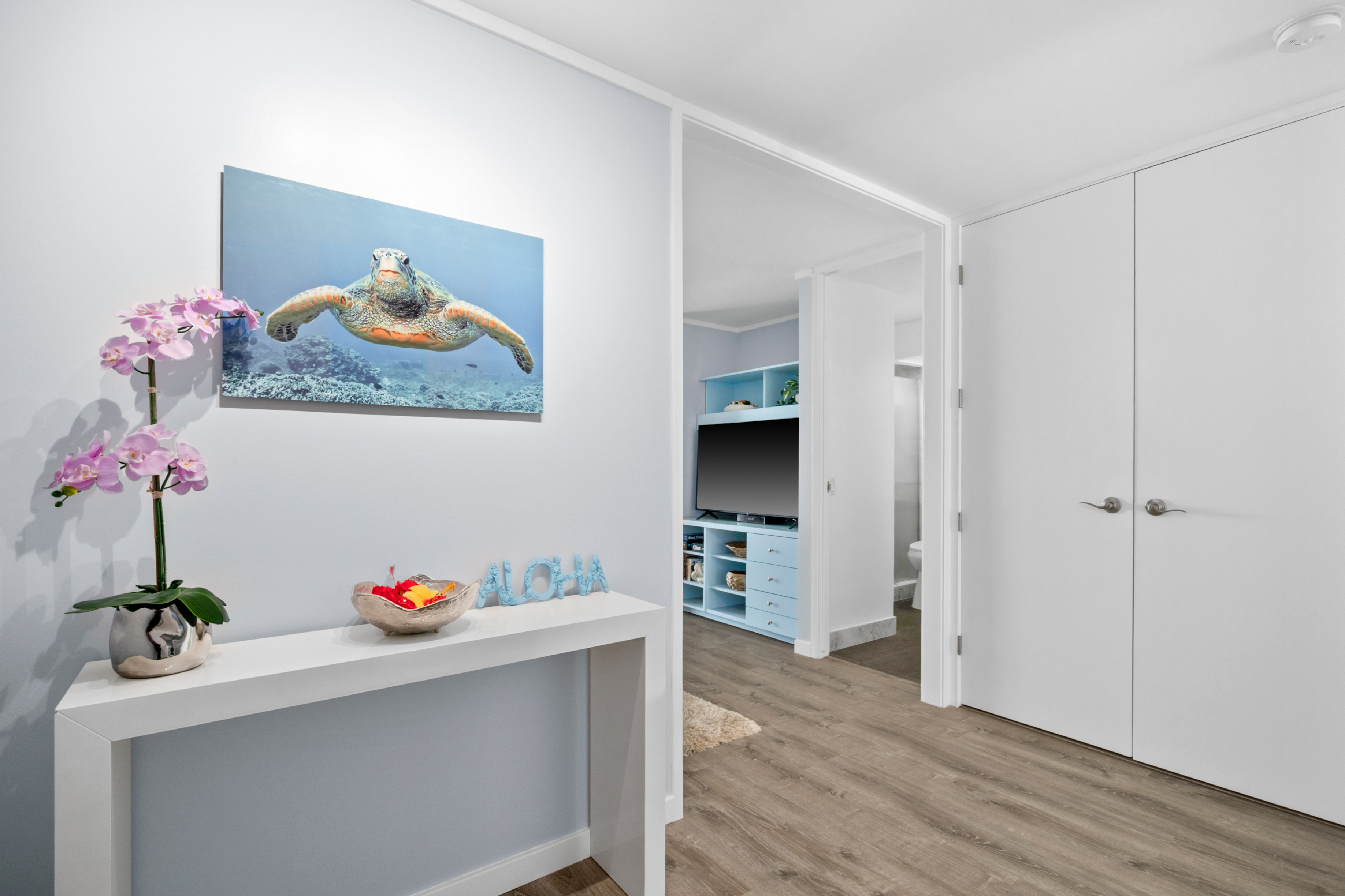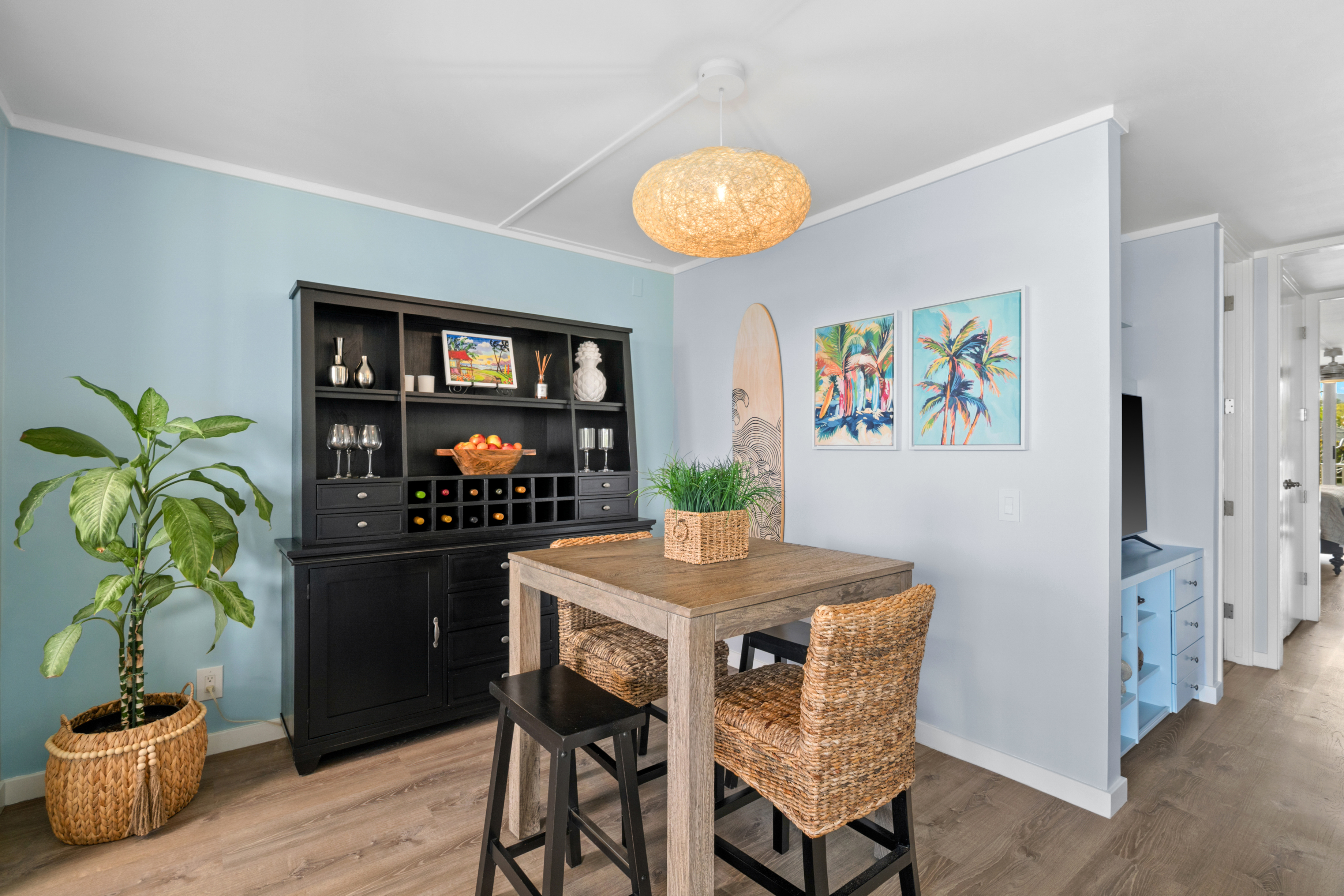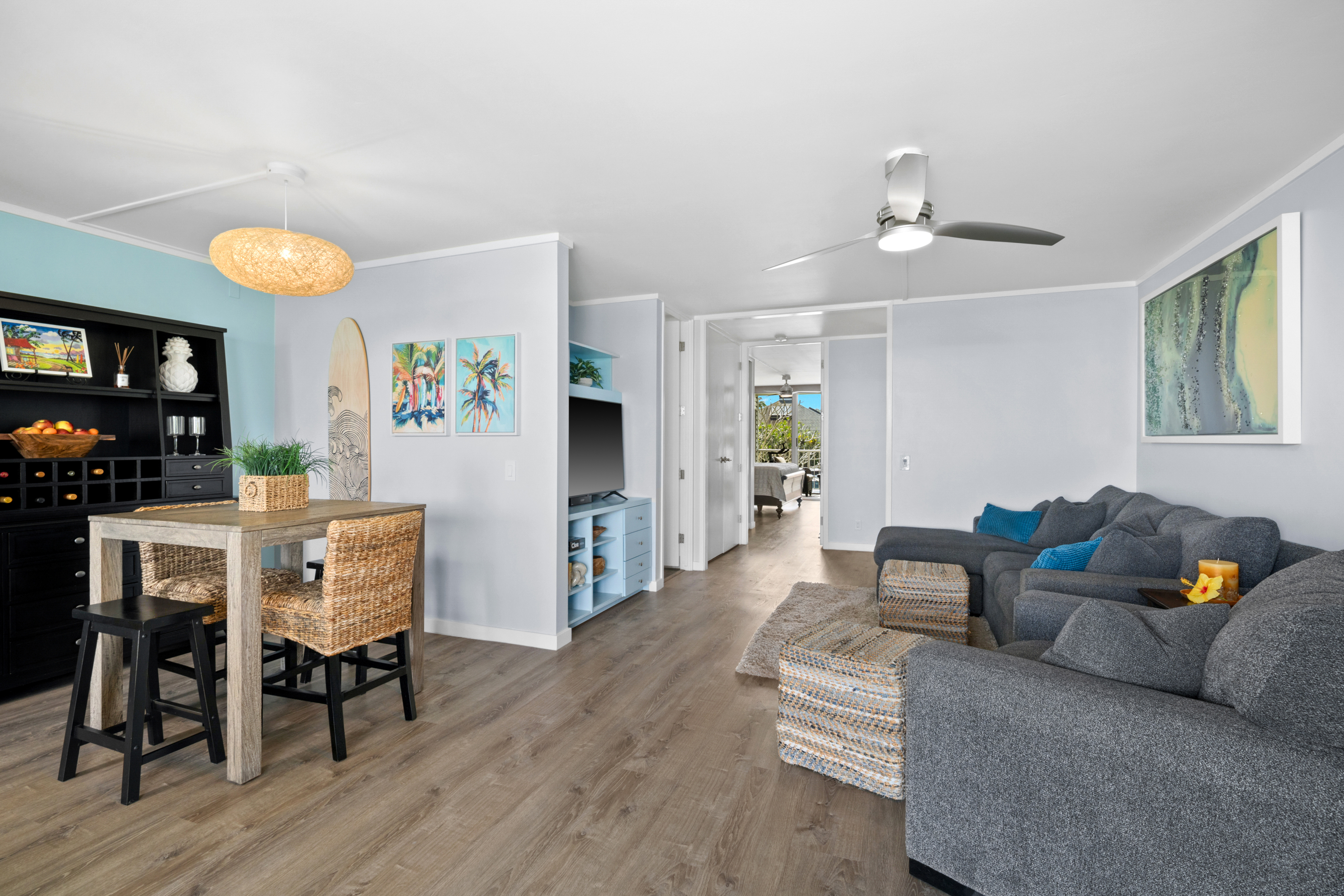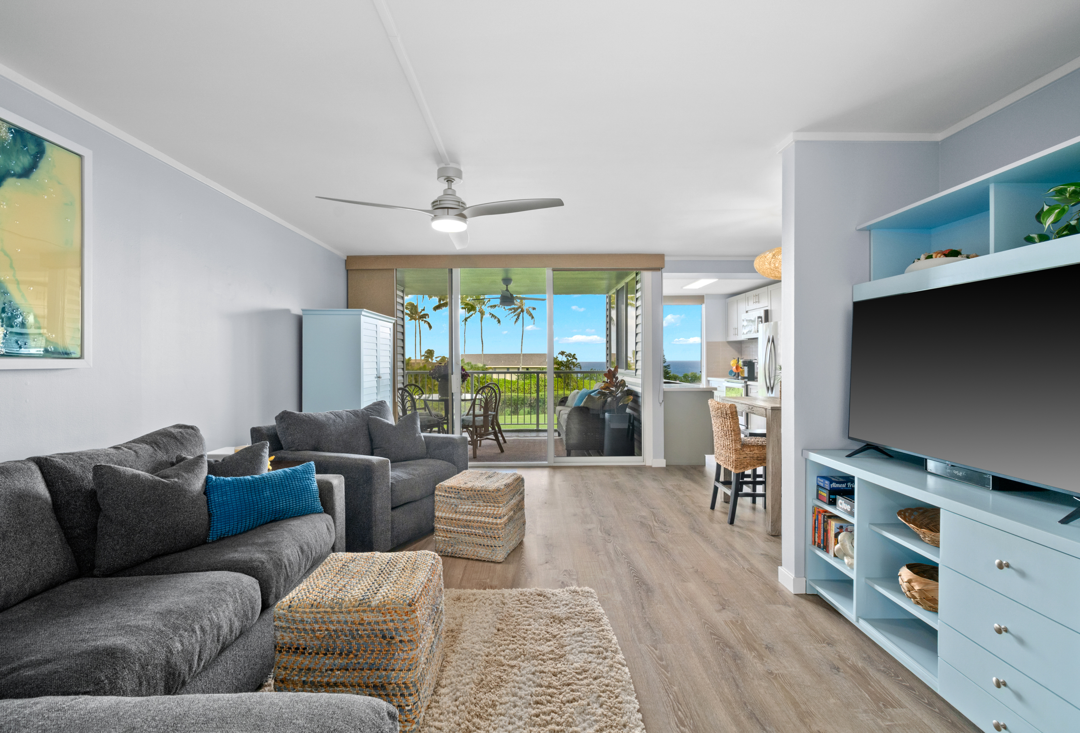 Island Elegance at The Cliffs at Princeville. Welcome to your slice of paradise on Kauai’s North Shore. Nestled in the highly sought-after resort community of The Cliffs at Princeville, this meticulously maintained, owner-occupied 1-bedroom, 2-bath condo offers breathtaking views of the Pacific Ocean, lush emerald mountains, and a glimpse of the iconic Bali Hai. With 917 sq. ft. of interior space plus two spacious, tiled lanais, this residence feels significantly larger than your average condo. The floor plan is designed to maximize the indoor-outdoor lifestyle that makes Kauai famous. It is the perfect setting for whale watching over morning coffee or savoring sunset dinners in the tropical breeze. Here, every window frames a masterpiece of nature. Step inside to a fully remodeled retreat, complete with high-end furnishings from Ethan Allen, Two Frogs Hugging, and Aspire Furniture. This unit is move-in or rental ready: - Designer Comfort: Sleep Number cal king bed and a sleeper sofa to host four guests. - Chef’s Kitchen: Updated with quartz countertops, soft-close cabinetry, and stainless-steel appliances. - Modern Baths: Renovated bathrooms featuring large walk-in showers and designer fixtures. Ownership grants you access to a premier lifestyle: - Recreation: Two lagoon pools & hot tubs, fitness center, tennis & pickleball courts and a putting green. - Convenience: BBQ pavilions, bike rentals, and an assortment of local food trucks. - Wellness: Yoga on the bluff, lei-making classes, and a weekly farmers market. - Management: On-site front desk, maintenance and housekeeping services make this an easy vacation rental. Situated in the heart of Princeville, you are a short distance to the hidden gems of Hideaways & Pu’u Poa beaches, and just three miles from world-renowned Hanalei Bay. Whether you seek a personal retreat or a vacation rental, Unit 4204 is the best valued ocean-view unit at the Cliffs.