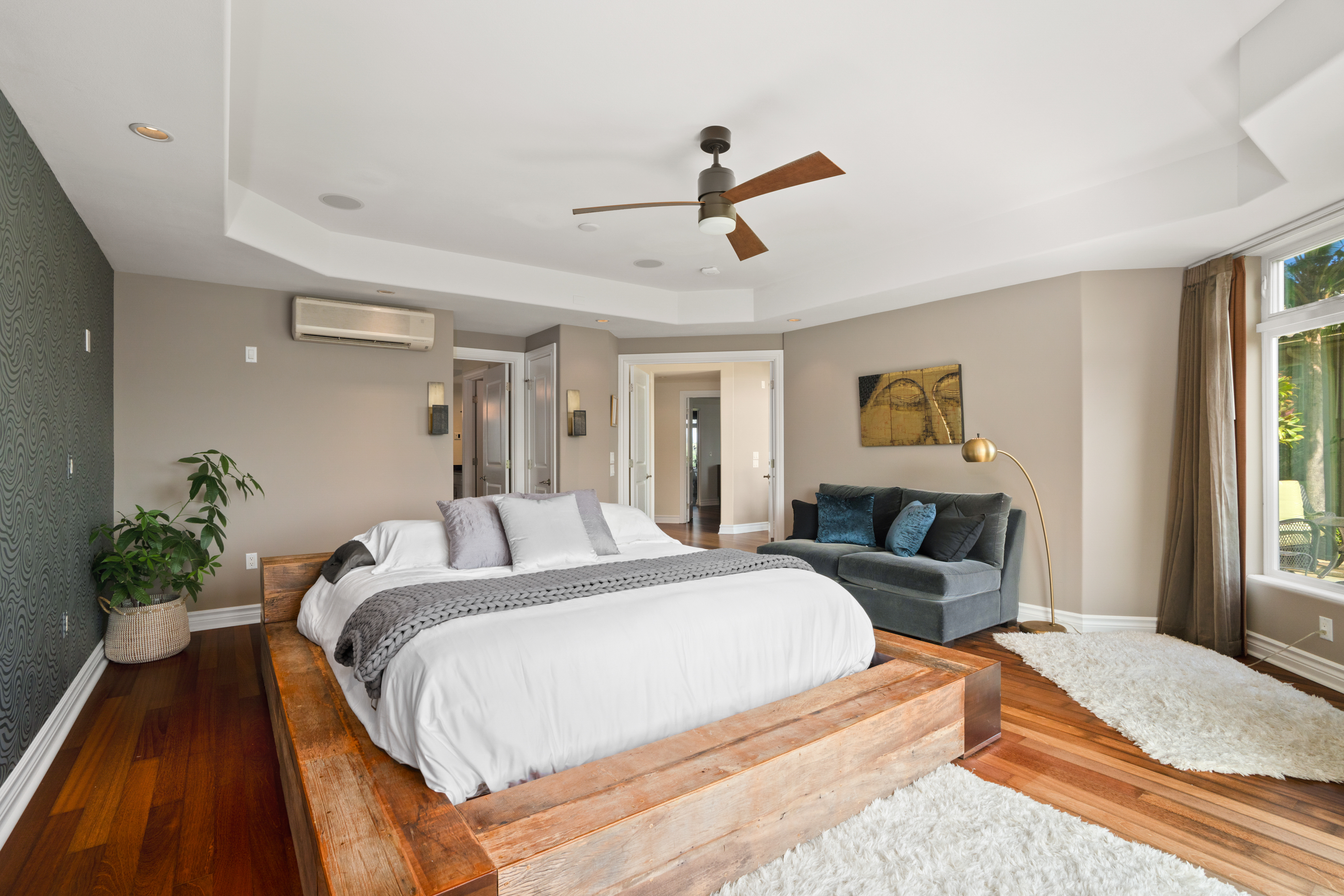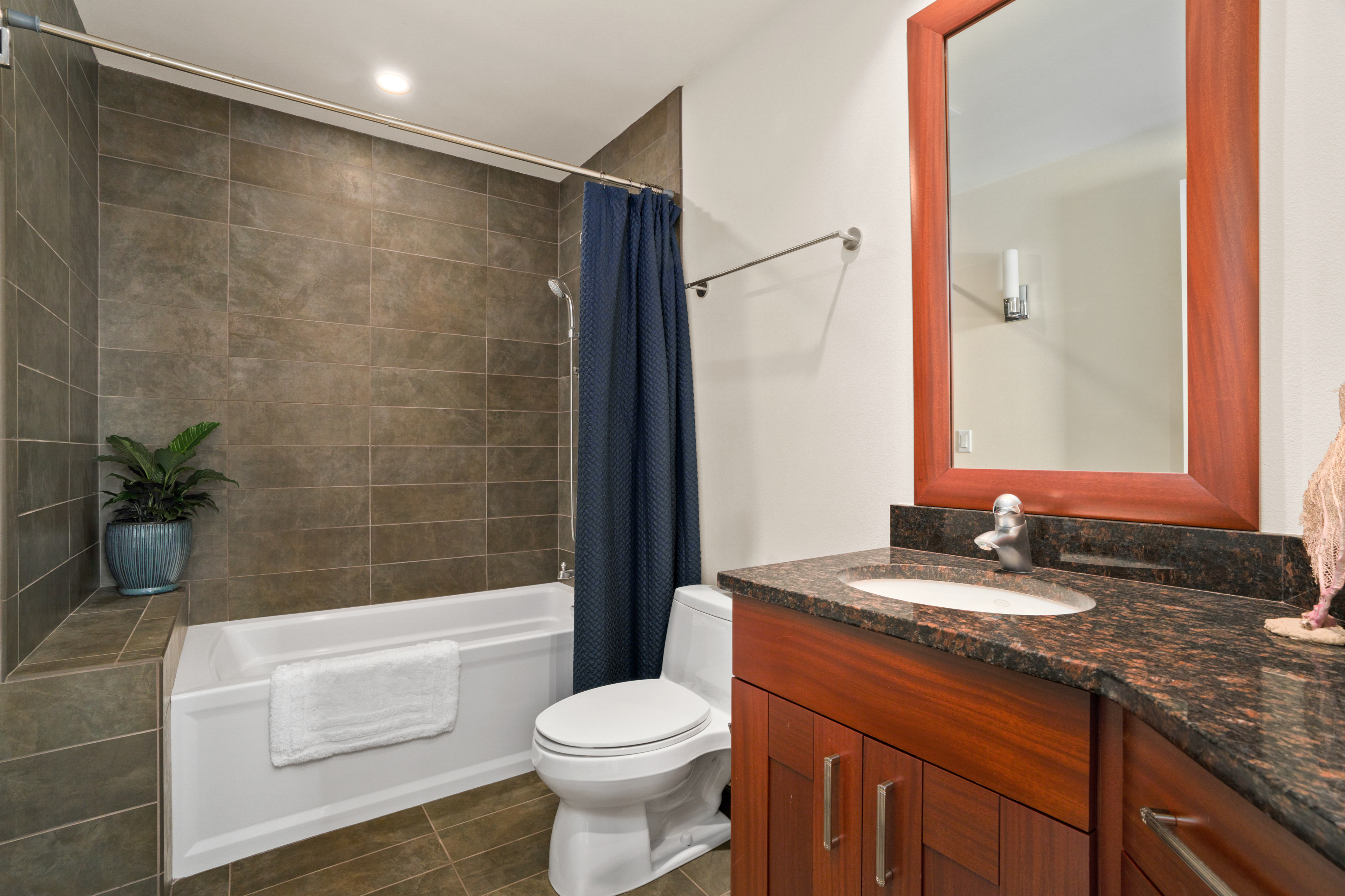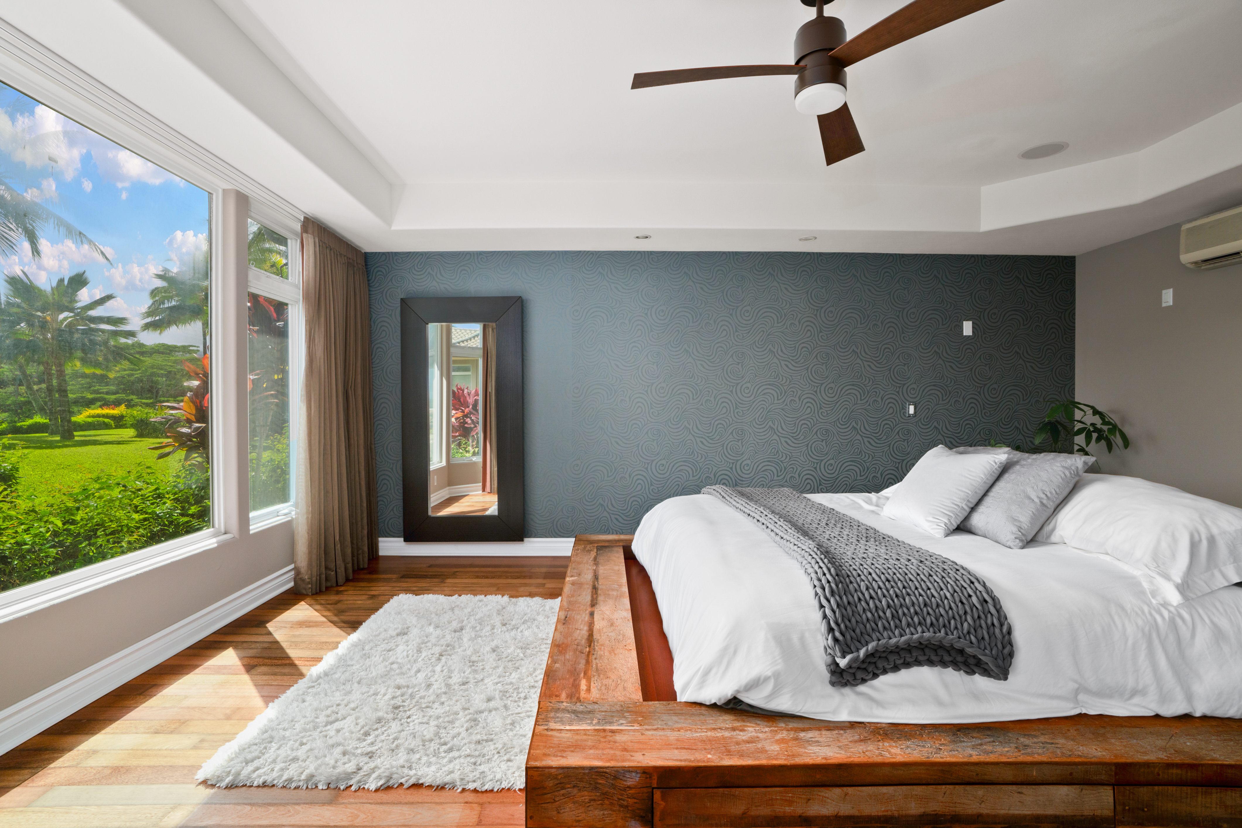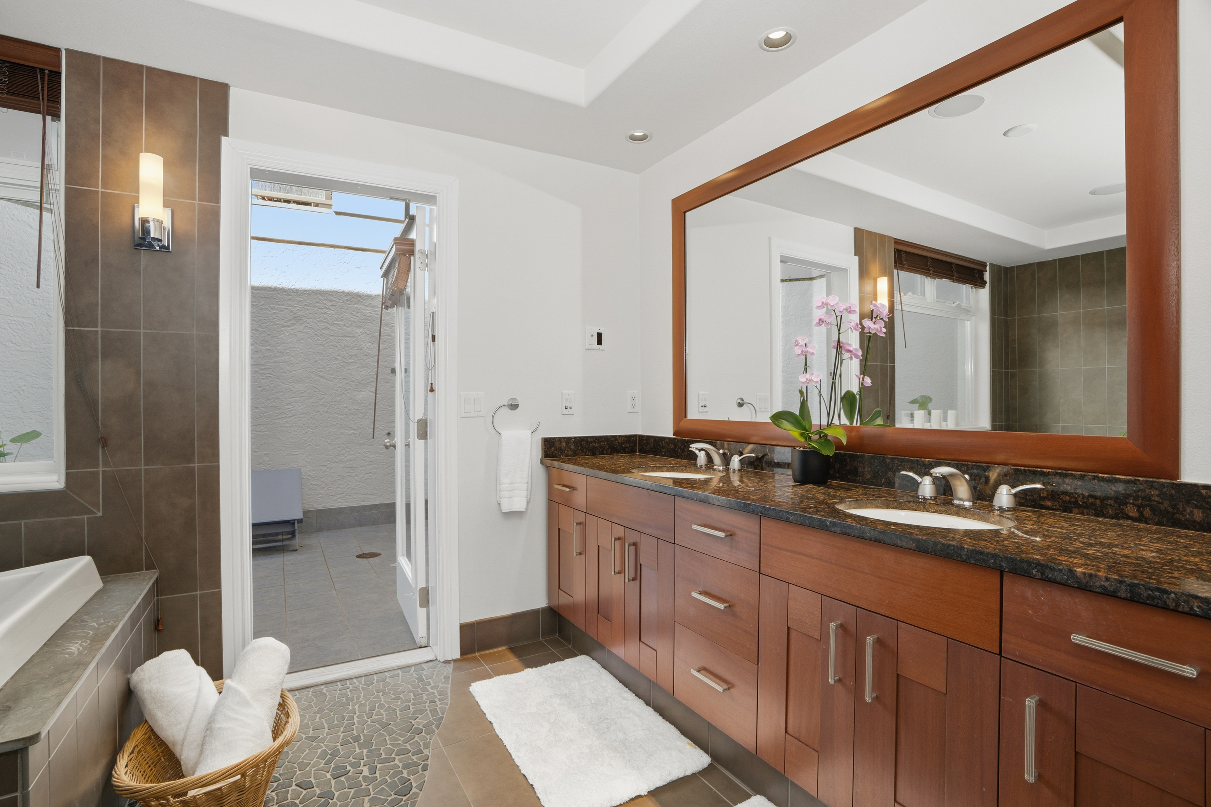 Nestled on Kauai’s North Shore, Ka‘iulani at Princeville offers an opportunity to own within a prestigious, private community. Known for its close-knit atmosphere and surrounded by breathtaking natural beauty, Ka‘iulani makes the perfect full time residence or second home. This townhome features the largest floor plan in the community, with 3,048 square feet across two levels. The home is designed to impress, with soaring ceilings, rich hardwood and ceramic tile flooring, and a dramatic wall of glass framing sweeping views of Anini Valley and the lush mountains beyond. The upper level features a gourmet kitchen with wine cooler, open living and dining areas, one en-suite bedroom, and a half bath. Zoned central air conditioning provides consistent comfort throughout. The lower level includes the primary suite, an additional guest bedroom, a second living area with wet bar, and access to a private lanai. The primary suite offers stunning valley views, and a spacious bath with custom walk-in shower and soaking tub. The suite walks out to a private courtyard and an additional room currently in use as a private gym/yoga studio, a unique feature. Residents enjoy resort-style amenities, including three heated terraced pools, a lava rock spa, and beautifully landscaped grounds. A scenic half-mile lighted walking path with water features winds throughout the property. Attached two-car garage and plenty of storage.