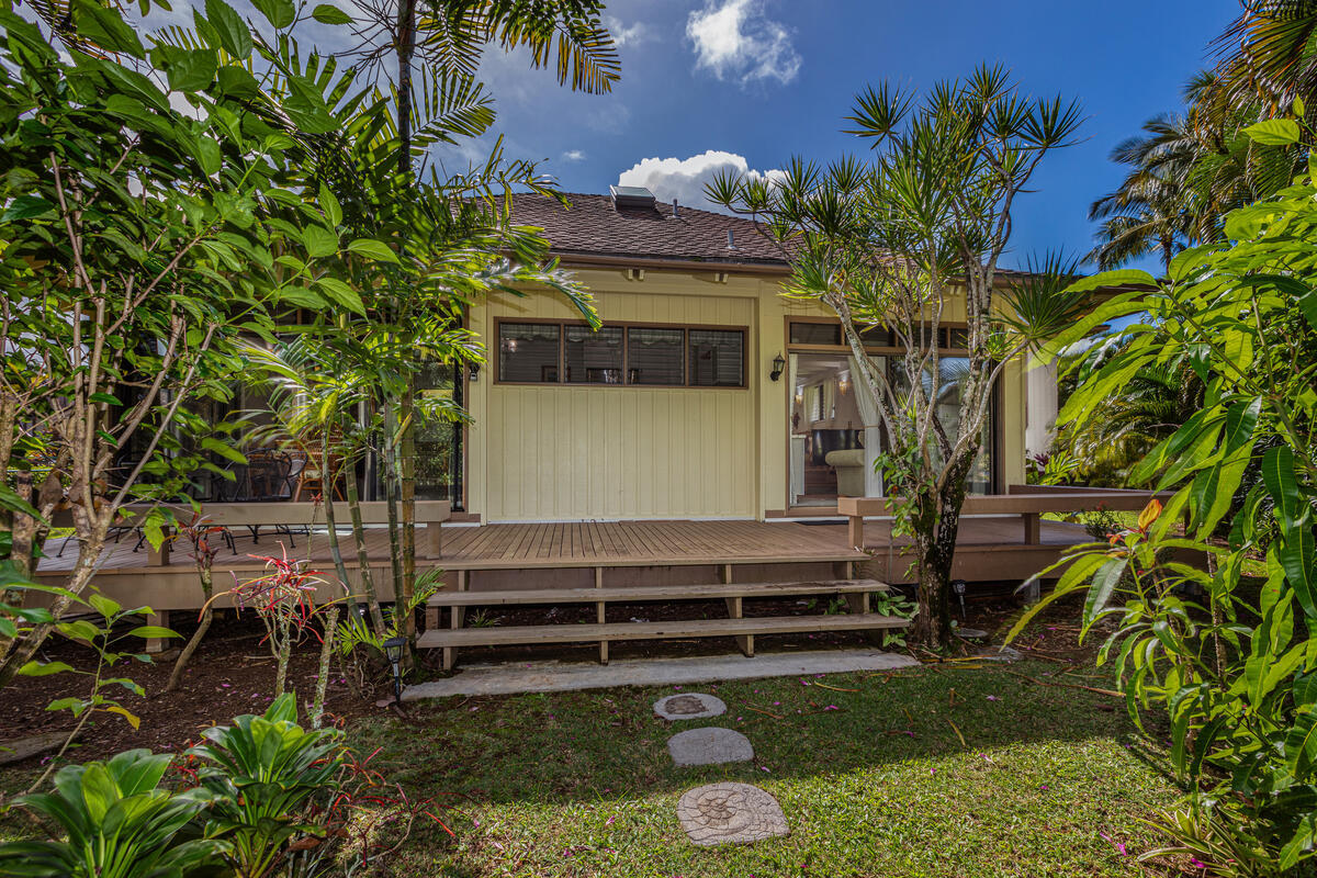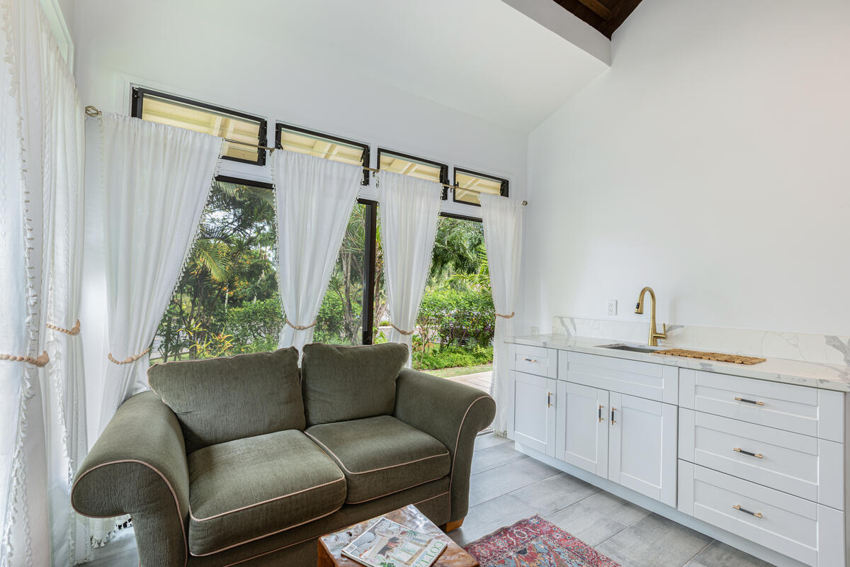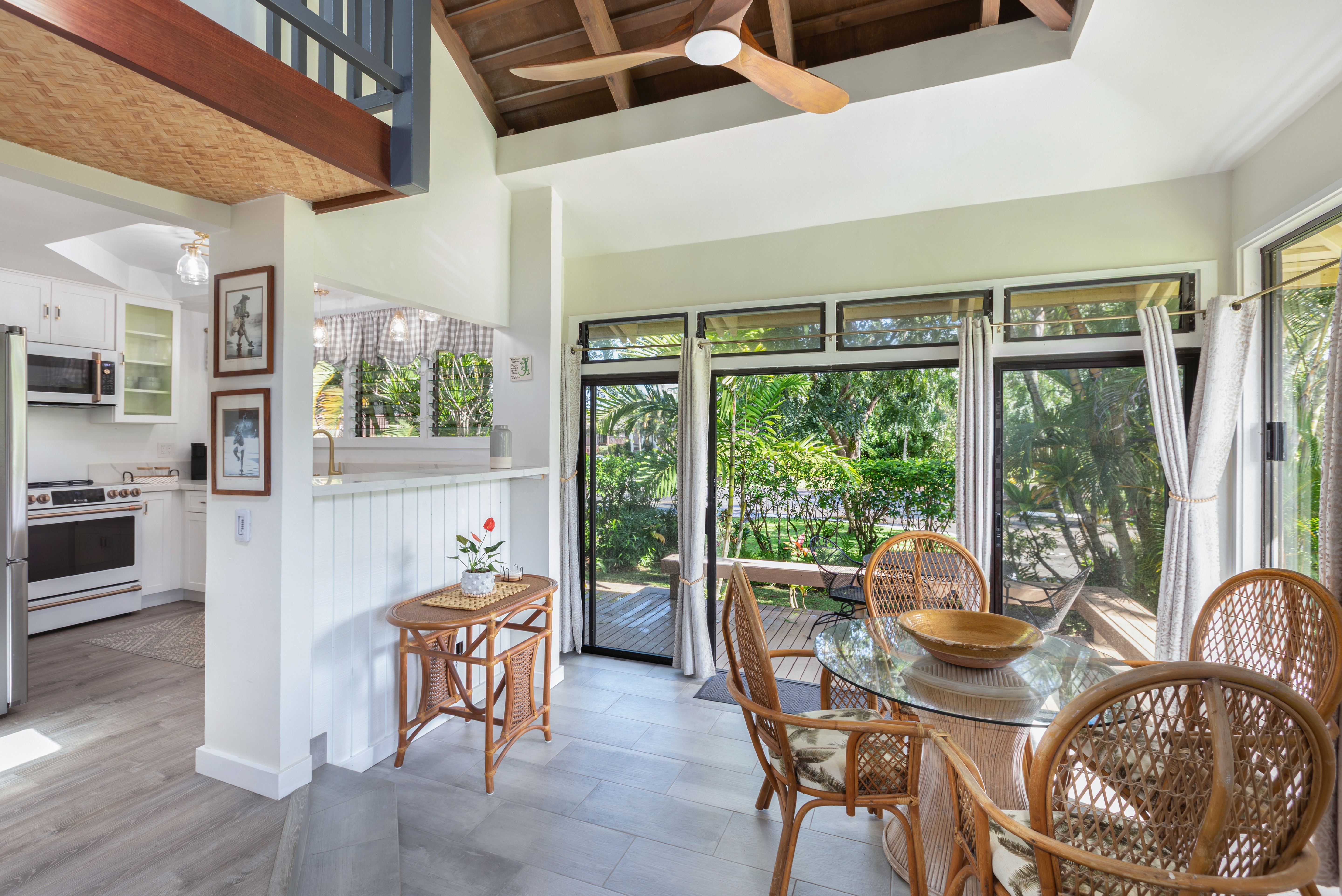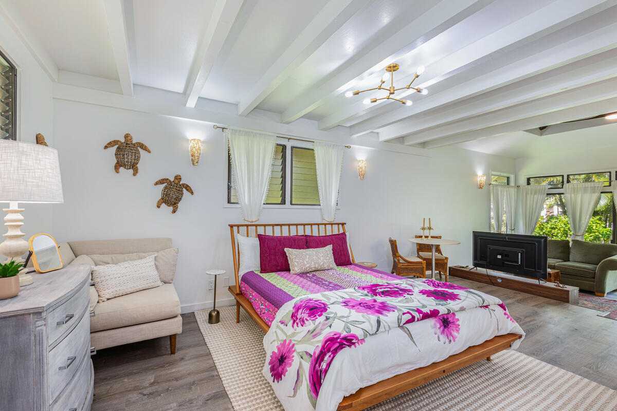 Welcome to Paniolo 101, a seldom-available, detached, stand-alone condo unit in the heart of Princeville. With no shared walls, this multi-functional gem offers exceptional versatility. The thoughtfully designed floor plan allows the property to function as a 1-bedroom, 2-bathroom home with a loft or as two separate studios. Here’s how: Studio 1: Features a full kitchen, cozy loft, full bathroom, and washer and dryer. Studio 2: Includes a kitchenette, refrigerator, full bathroom, and its own washer and dryer hookups. Live in one side and rent the other, or rent both units independently. Prime Location: Paniolo, a smaller complex with only 26 units, is conveniently situated within a short walk to Anini Beach and the Princeville Shopping Center, offering a harmonious blend of relaxation and accessibility. Upgraded: This property has undergone an extensive remodel, making it move-in ready. Upgrades include: New quartz countertops New farmhouse sink Premium Thomasville Craftsman cabinet upgrade throughout New Durable LifeProof laminate flooring Tiled bathrooms and entryways off the lanai - both sides Stylishly updated bathrooms Upgraded modern light fixtures including high end Maverick Fans Fresh interior paint New electric water heater New deck New appliances Paniolo 101 is a unique and flexible opportunity, perfect for homeowners, investors, or vacation property seekers. Don’t miss your chance to own this beautifully remodeled retreat in one of Kauai’s most sought-after locations!