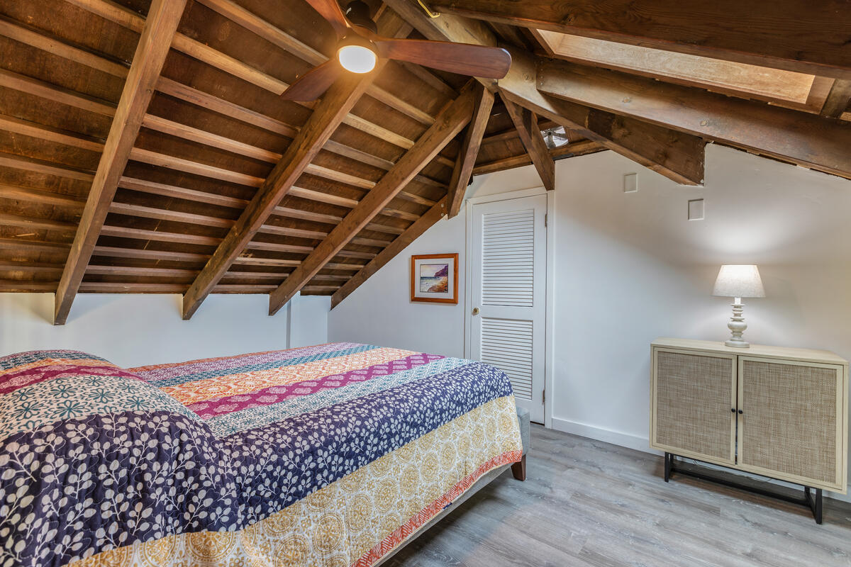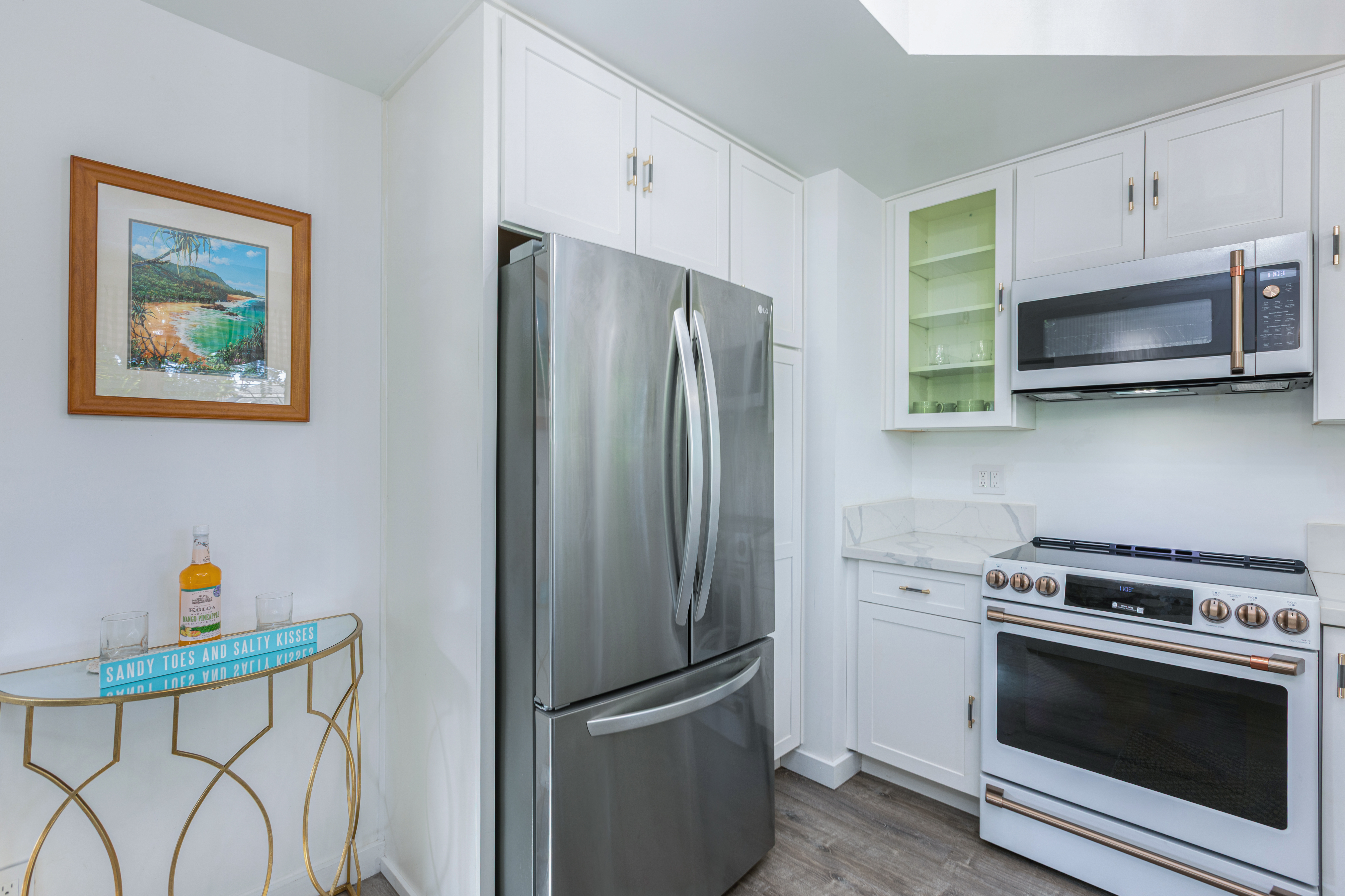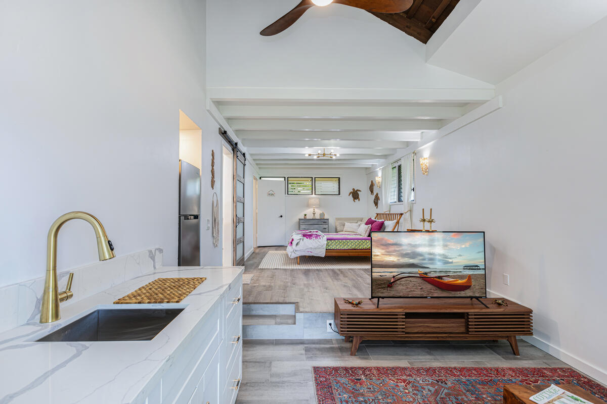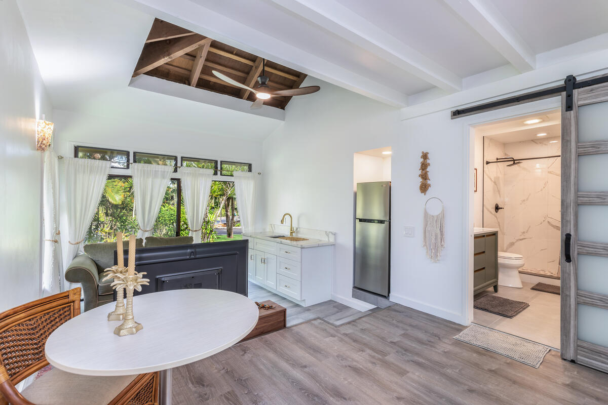 Welcome to Paniolo 101, a seldom-available, detached, stand-alone condo unit in the heart of Princeville. With no shared walls, this multi-functional gem offers exceptional versatility. The thoughtfully designed floor plan allows the property to function as a 1-bedroom, 2-bathroom home with a loft or as two separate studios. Here’s how: Studio 1: Features a full kitchen, cozy loft, full bathroom, and washer and dryer. Studio 2: Includes a kitchenette, refrigerator, full bathroom, and its own washer and dryer hookups. Live in one side and rent the other, or rent both units independently. Prime Location: Paniolo, a smaller complex with only 26 units, is conveniently situated within a short walk to Anini Beach and the Princeville Shopping Center, offering a harmonious blend of relaxation and accessibility. Upgraded: This property has undergone an extensive remodel, making it move-in ready. Upgrades include: New quartz countertops New farmhouse sink Premium Thomasville Craftsman cabinet upgrade throughout New Durable LifeProof laminate flooring Tiled bathrooms and entryways off the lanai - both sides Stylishly updated bathrooms Upgraded modern light fixtures including high end Maverick Fans Fresh interior paint New electric water heater New deck New appliances Paniolo 101 is a unique and flexible opportunity, perfect for homeowners, investors, or vacation property seekers. Don’t miss your chance to own this beautifully remodeled retreat in one of Kauai’s most sought-after locations!