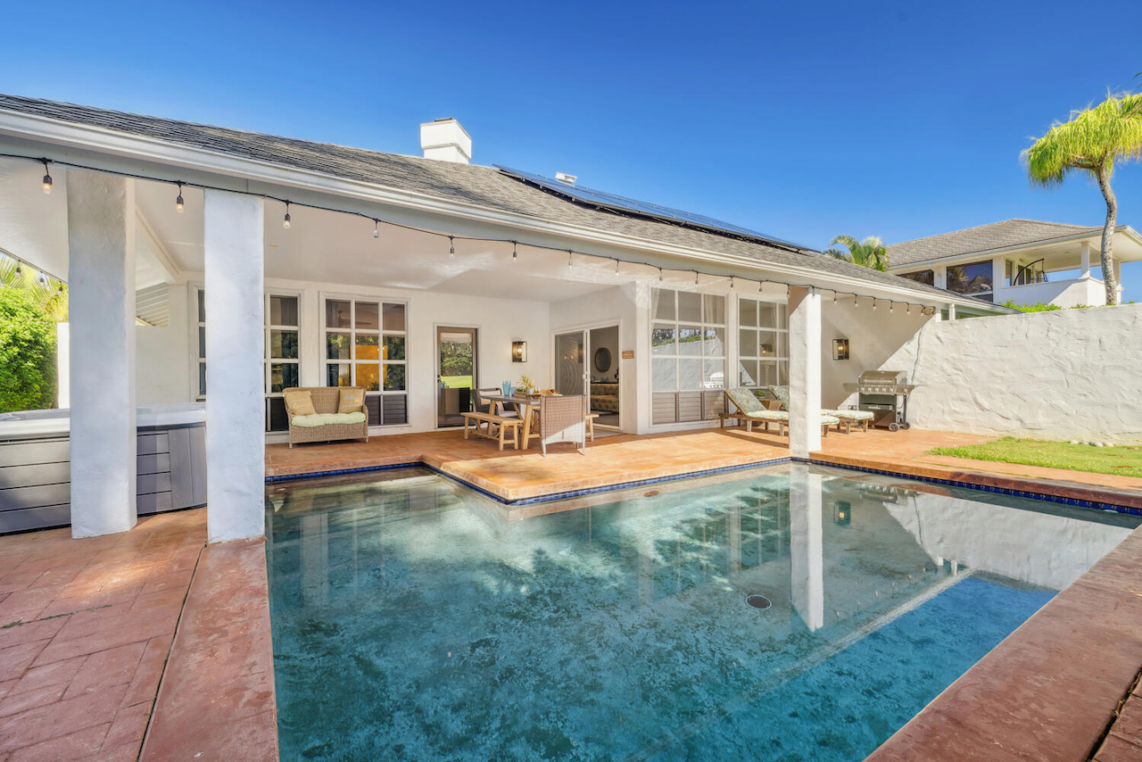 Outside, the property features a private heated spa, an in-ground swimming pool, and a covered lanai, ideal for relaxing or hosting gatherings. Nearby walking and jogging paths offer easy access to the area’s natural beauty and outdoor activities. At the same time, the Princeville Shopping Center, just minutes away, ensures convenient access to dining, shopping, and services.