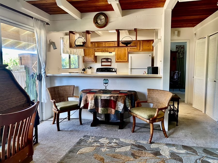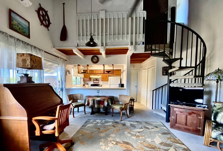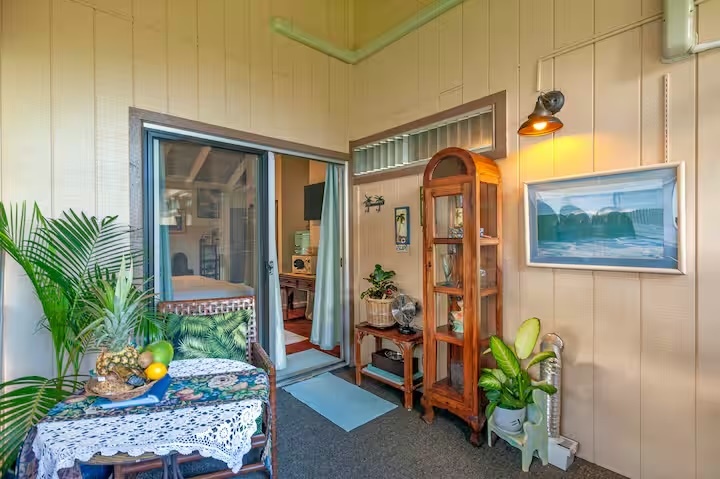 Inside, the A-side was freshly painted in 2024, while the B-side received new paint and luxury vinyl plank flooring (Koa) in June 2022. Vaulted ceilings create a bright, airy feel with abundant natural light and openness. From the loft, enjoy a peekaboo ocean view, and from the lanai, take in gorgeous island sunsets.