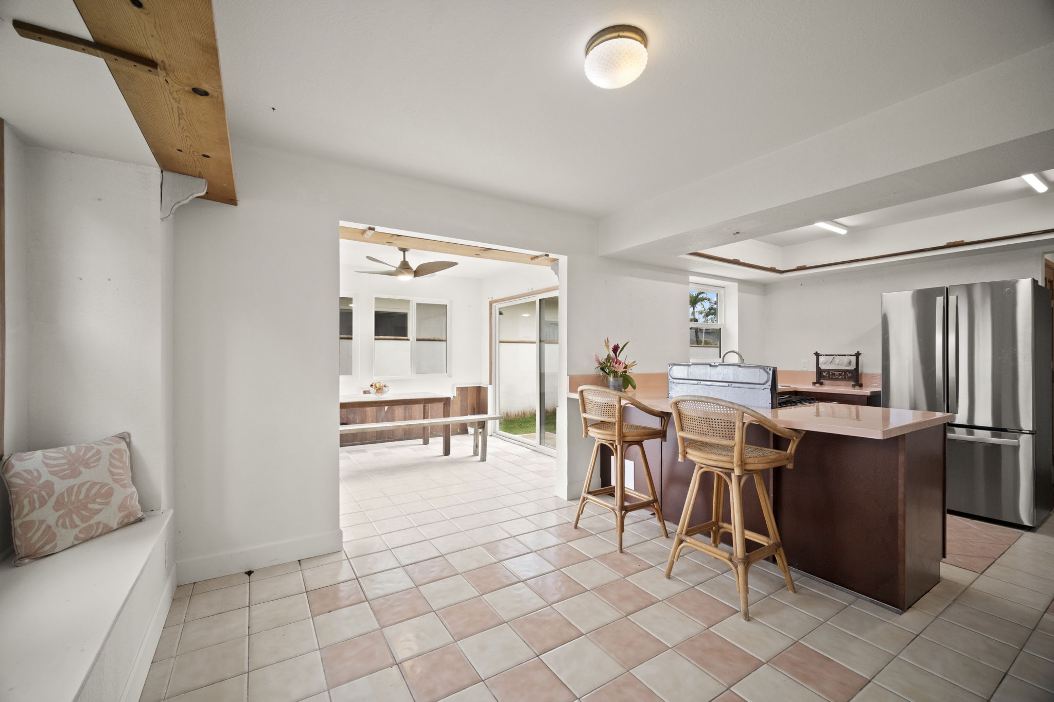 Charming home in Kilauea town! Recently remodeled. Upgrades include new siding and paint. New flooring and interior paint. New showers and new kitchen. Upgraded electrical box. The layout of the home includes a kitchen that connects to the dining room and a beautiful sunroom. The living room is connected to the first bedroom with the other two bedrooms upstairs. This home has so much potential and is waiting for its new owners.