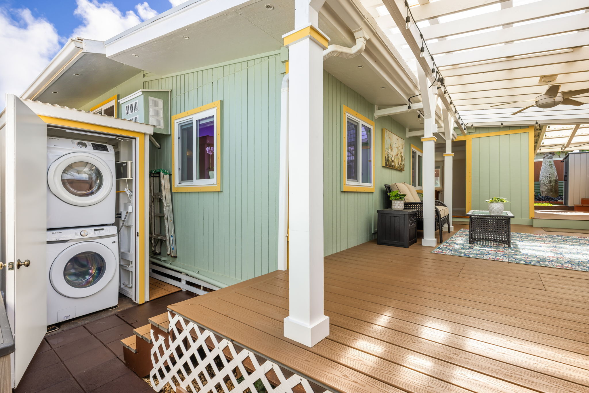 The separate 1 bedroom, 1 bath suite in the rear of the home provides an additional layer of comfort and privacy. Complete with its own living room, wet bar and dedicated lanai. Ideal for extended family, guests or additional personal space.