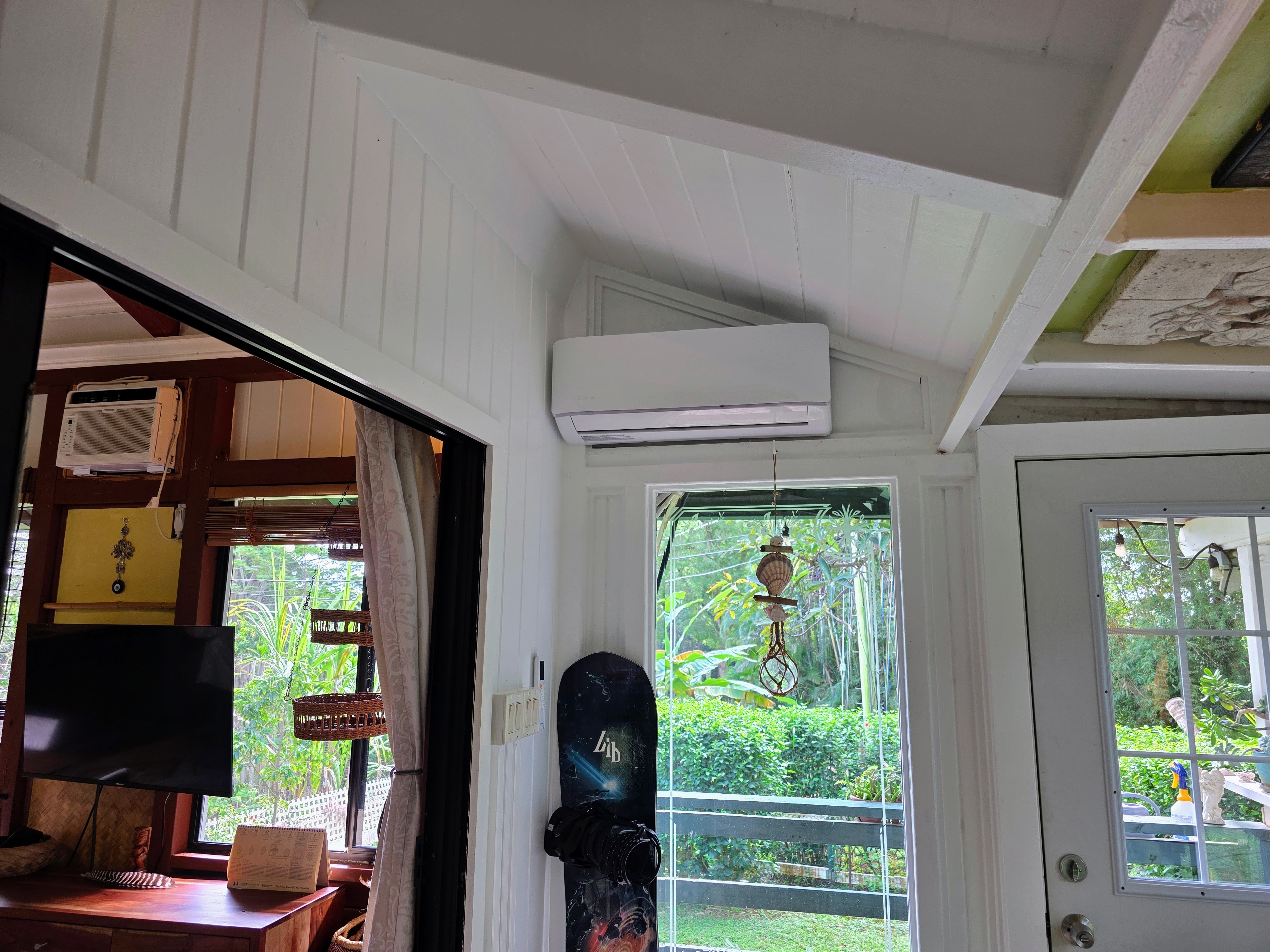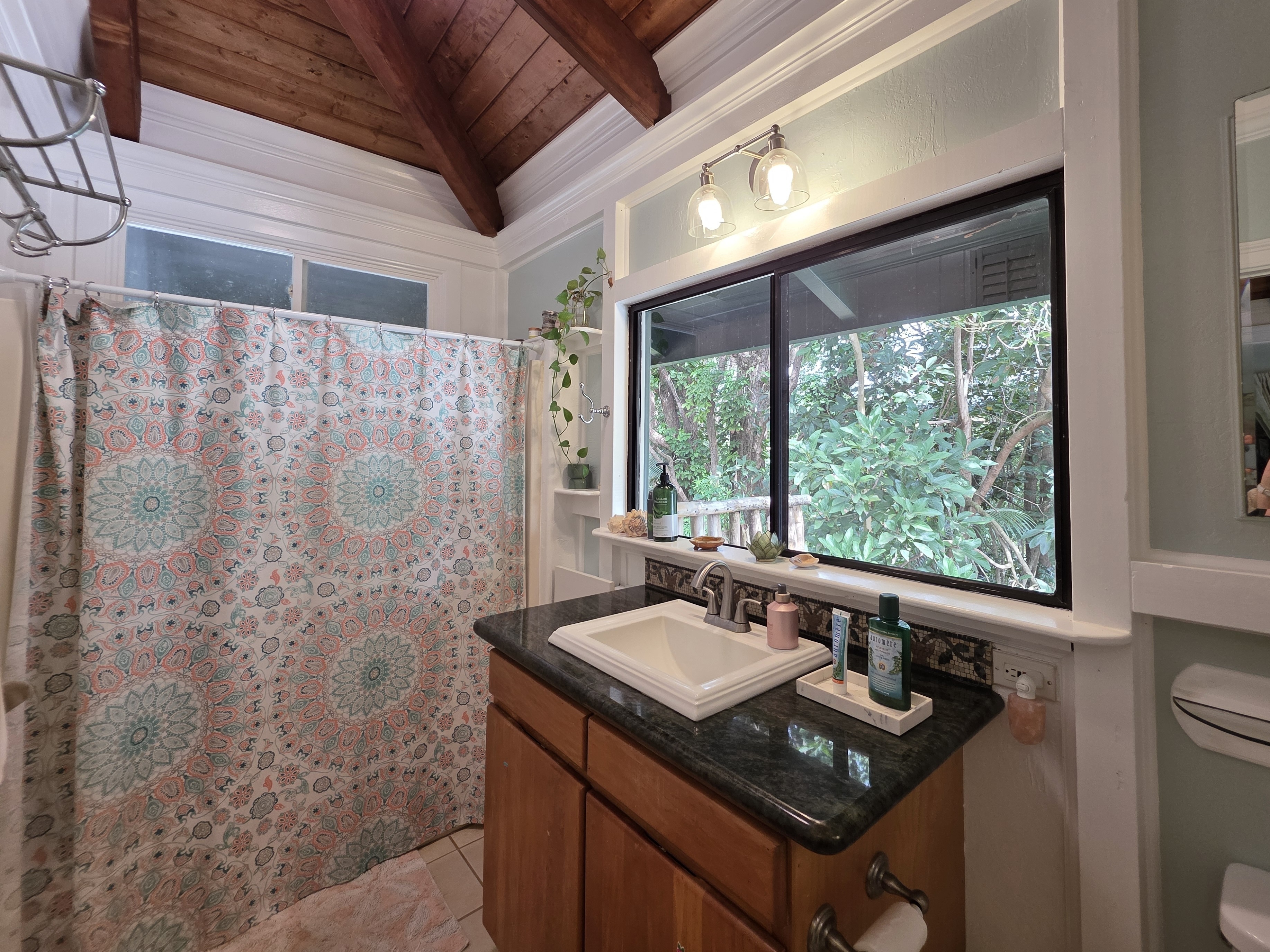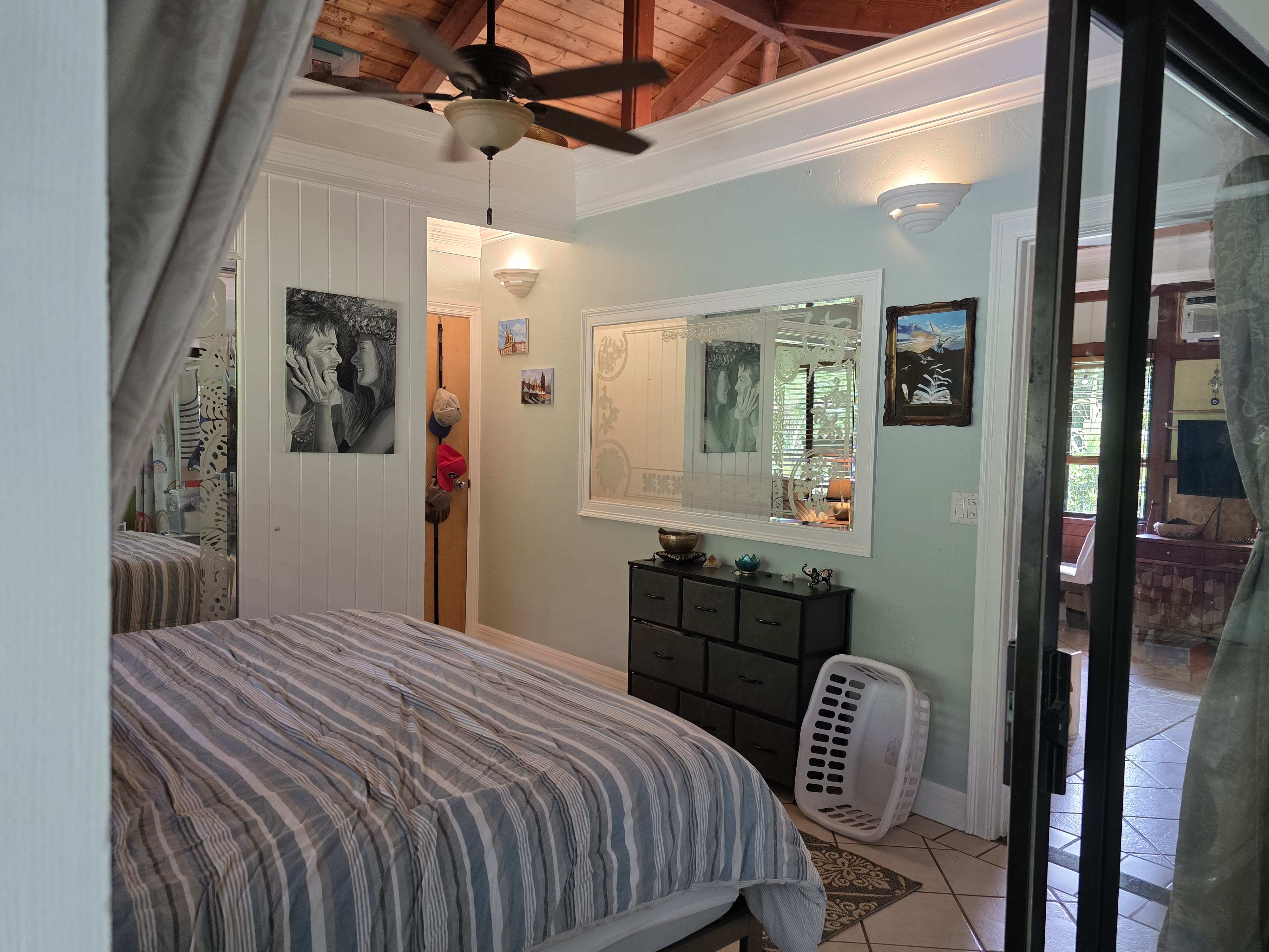 An adorable1 bedroom, 1 bath guest home with high open beam ceilings and mountain views. Extra living area created by enclosed porch. Tile flooring and artistic details (Etched glass, special tile mosaics) throughout. Granite counter tops. Gas stove and on-demand heater. 2 split system AC units as well as a wall unit. Enjoy your covered lanai and a nice grassy yard area. This is a CPR unit . The building is zoned as a guest house with its own water meter, electric meter and cesspool. Tenant occupied. 48 hour notice to show.