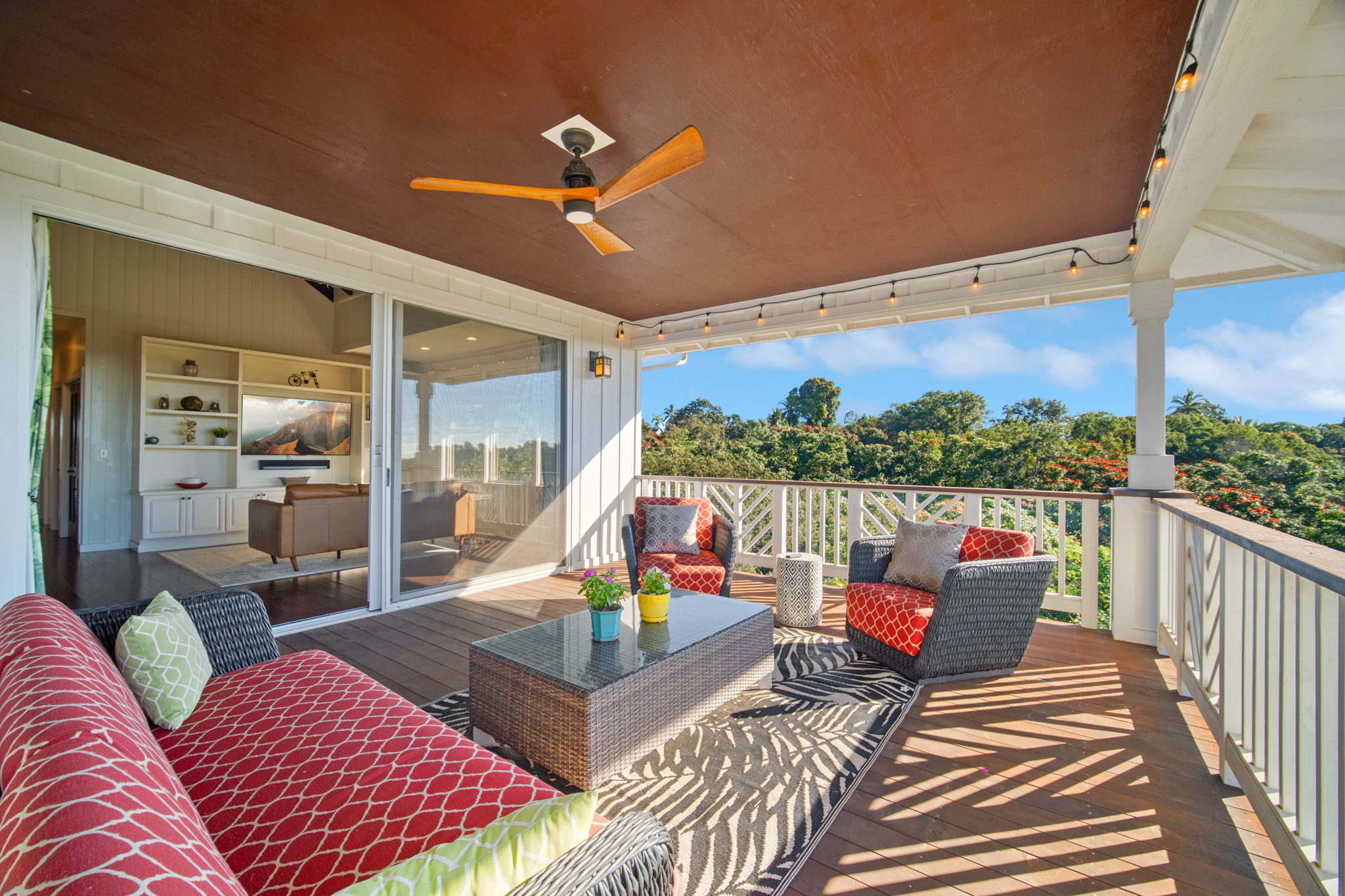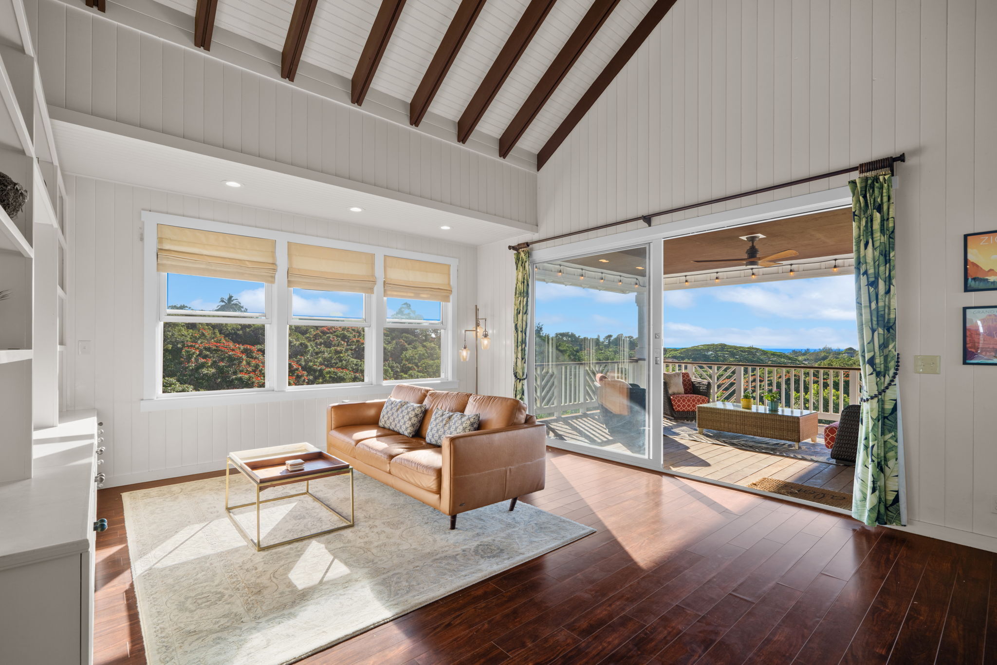 Discover your own slice of Hawaiian paradise in this stunning plantation-style home. At the end of a quiet cul-de-sac, yet minutes from downtown Kapaa, Beaches, Schools, and The Mountains. 5058 Kahana street was thoughtfully designed to echo the timeless elegance of historic Hawaii estates. Step inside to a living room boasting 20-foot vaulted ceilings with lots of windows. A 12’ wide, Fleetwood Glass Sliding Door leads to a nearly 300 square foot deck, making Kauai's lush landscape and the ocean view a part of the home. Head down the Hallway to your spacious Master Bedroom with Ensuite Bathroom where you can soak in your clawfoot tub or, pop through the door that leads to a beautiful lava rock outdoor shower complete with established orchids. Down the stairs you’ll find a sizable, 280 square foot separate room with its own 430 square foot lanai area, perfect for a Home Gym, Office or Guest Area. Having been built by a craftsman, as their personal home, many perks, you may not see. Exterior walls framed with studs every 12” instead of 16, Seamless gutters that are piped to the bottom of the property so that runoff doesn’t erode the foundation of the house or planted hillside, or the large attic spaces above the house and 2 car Garage. Exceptionally well built, meticulously maintained home in a tranquil yet convenient location with a view. Sounds like the description of everyone’s dream home, Be the one that makes that dream a reality.