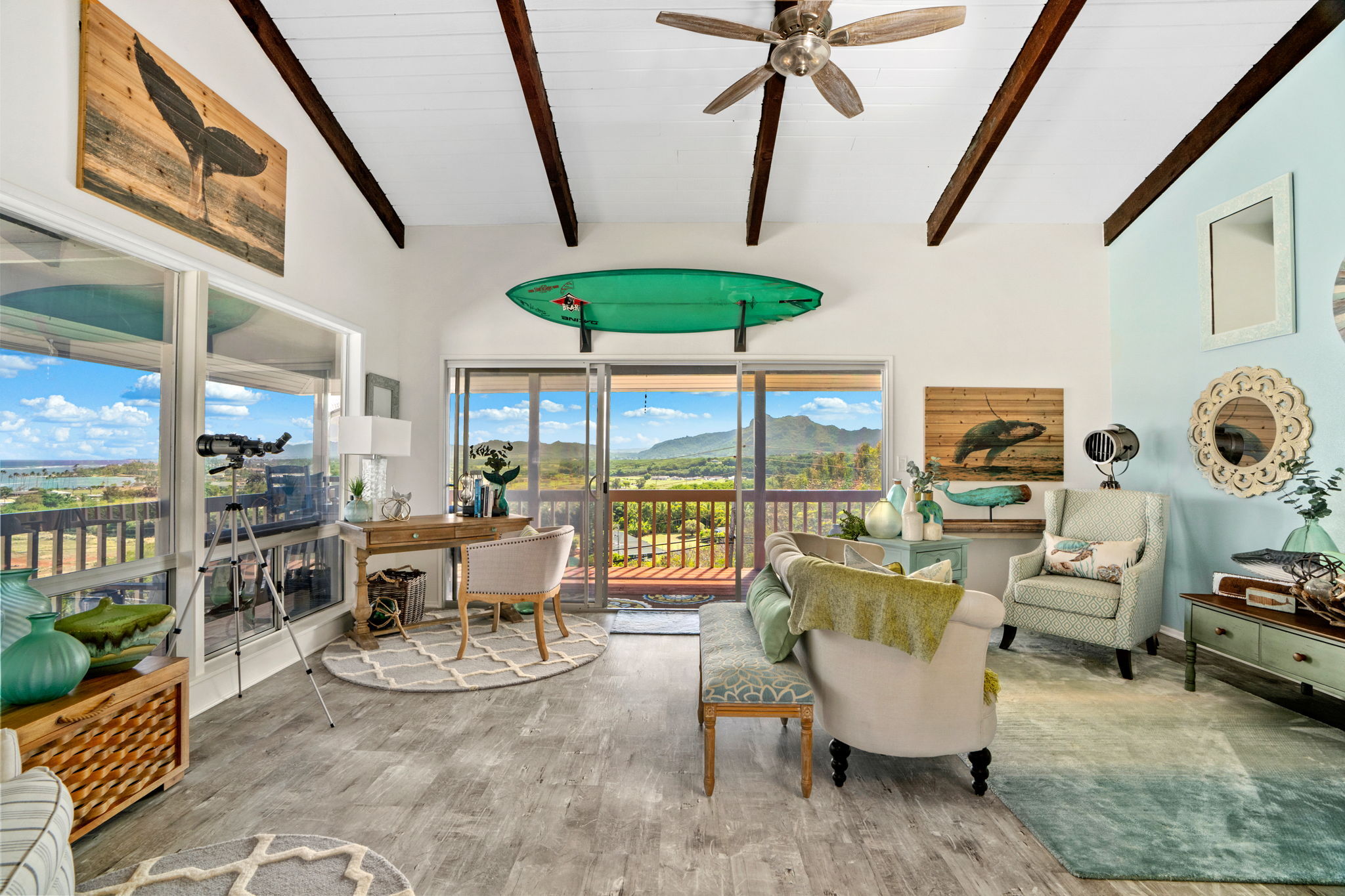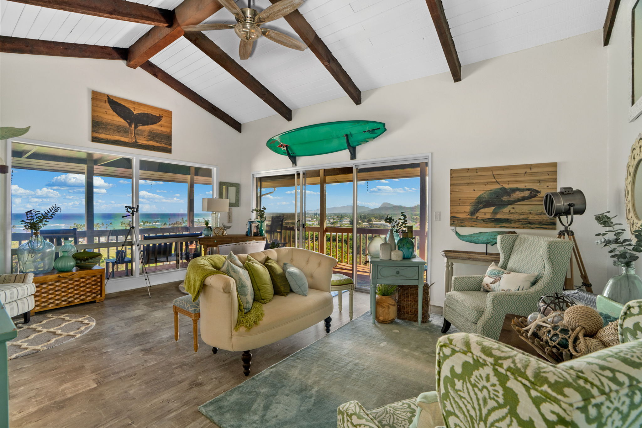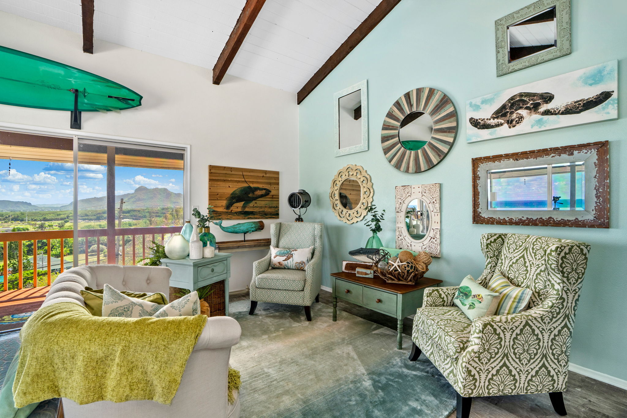 Views, views, views, convenience, and an amazing remodel, come together perfectly on this RARE and immaculate offering. Breathtaking Ocean, Mountain, and Sunrise views from both upstairs and downstairs. See all of Kapaa's coastline, perched above Town on the rim of the Hundley Heights Subdivision. These homes are never available for sale and once you see the neighborhood you'll know why! Close to schools and town, yet tucked away in a small, cozy, quiet subdivision. Sold fully furnished with excellent decor, this property needs absolutely nothing. The Owners have maintained and kept the home in immaculate condition. Downstairs can be a self contained Master Suite with separate entry or used as part of main house. You'll LOVE the bike path right from the neighborhood. Walk to your first of many beaches in 5 minutes and continue to Kealia Beach and many more to the north or go south and walk to your favorite restaurants right in town. Easy to show!