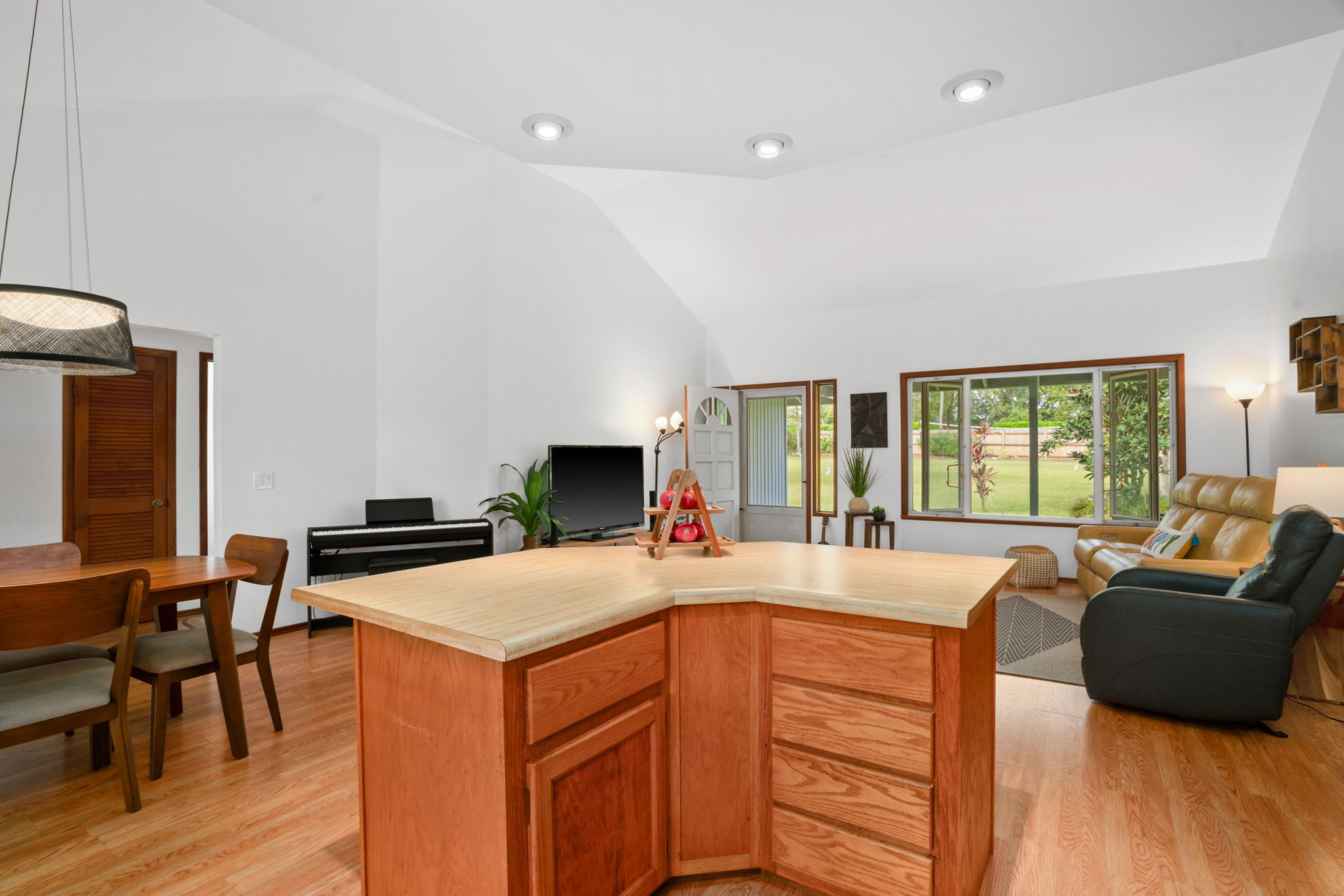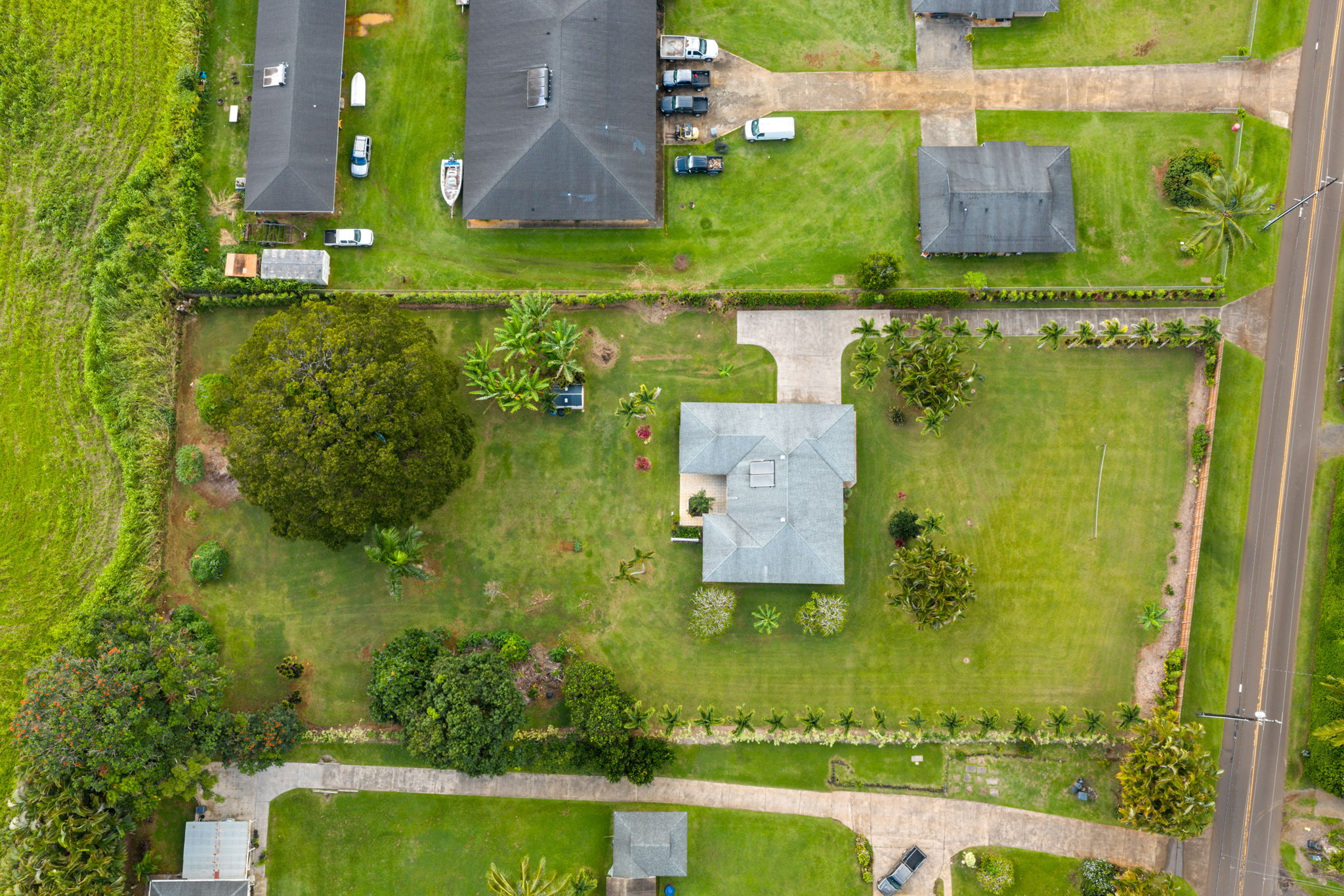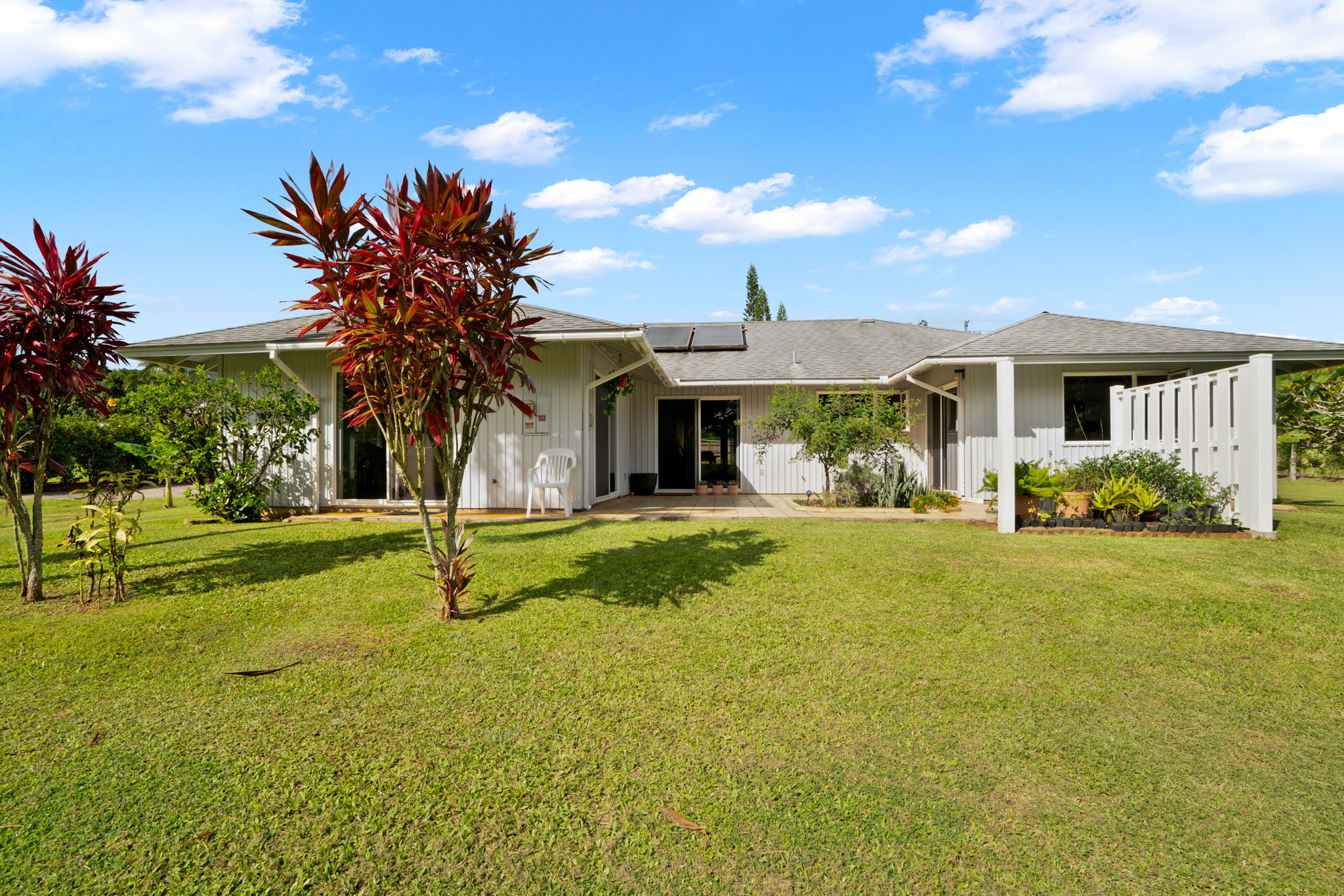 Nestled in the peaceful Wailua Homesteads, this beautifully maintained 3 bedroom, 2-bath single-family home sits on over an acre of lush, level land. Surrounded by vibrant landscaping and fruit trees, the property offers privacy, natural beauty, and a serene environment.
