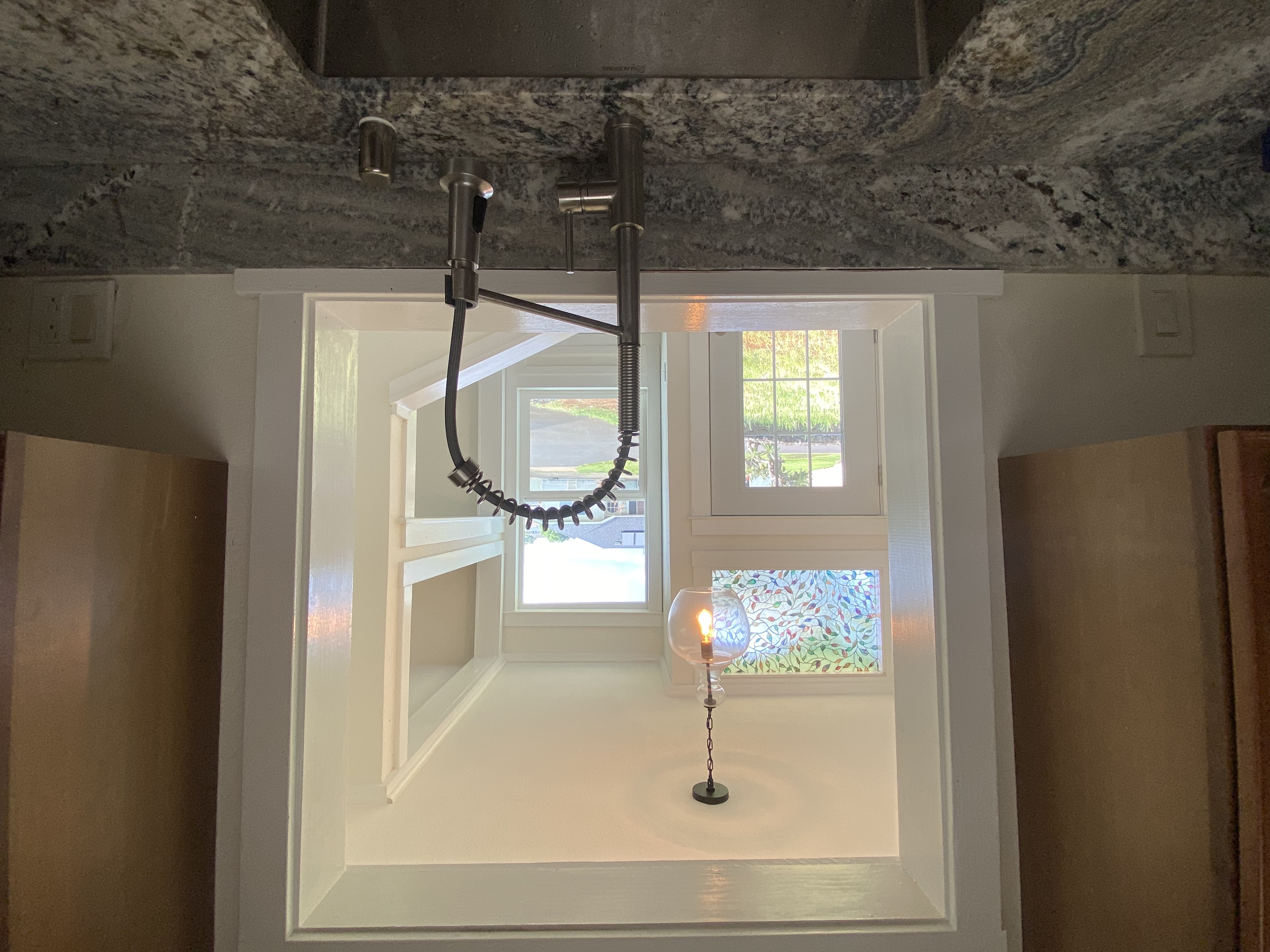 Some original parts of the home include the fun colored bathrooms, skylights, and the parlor's large windows.