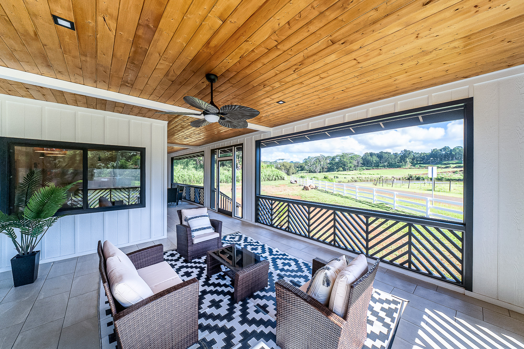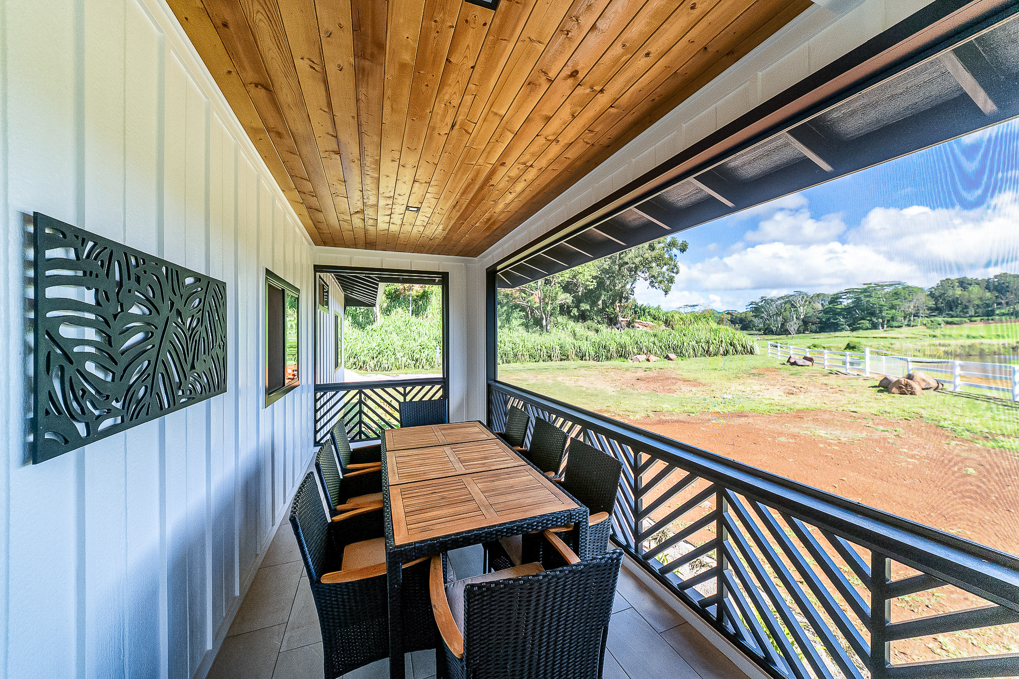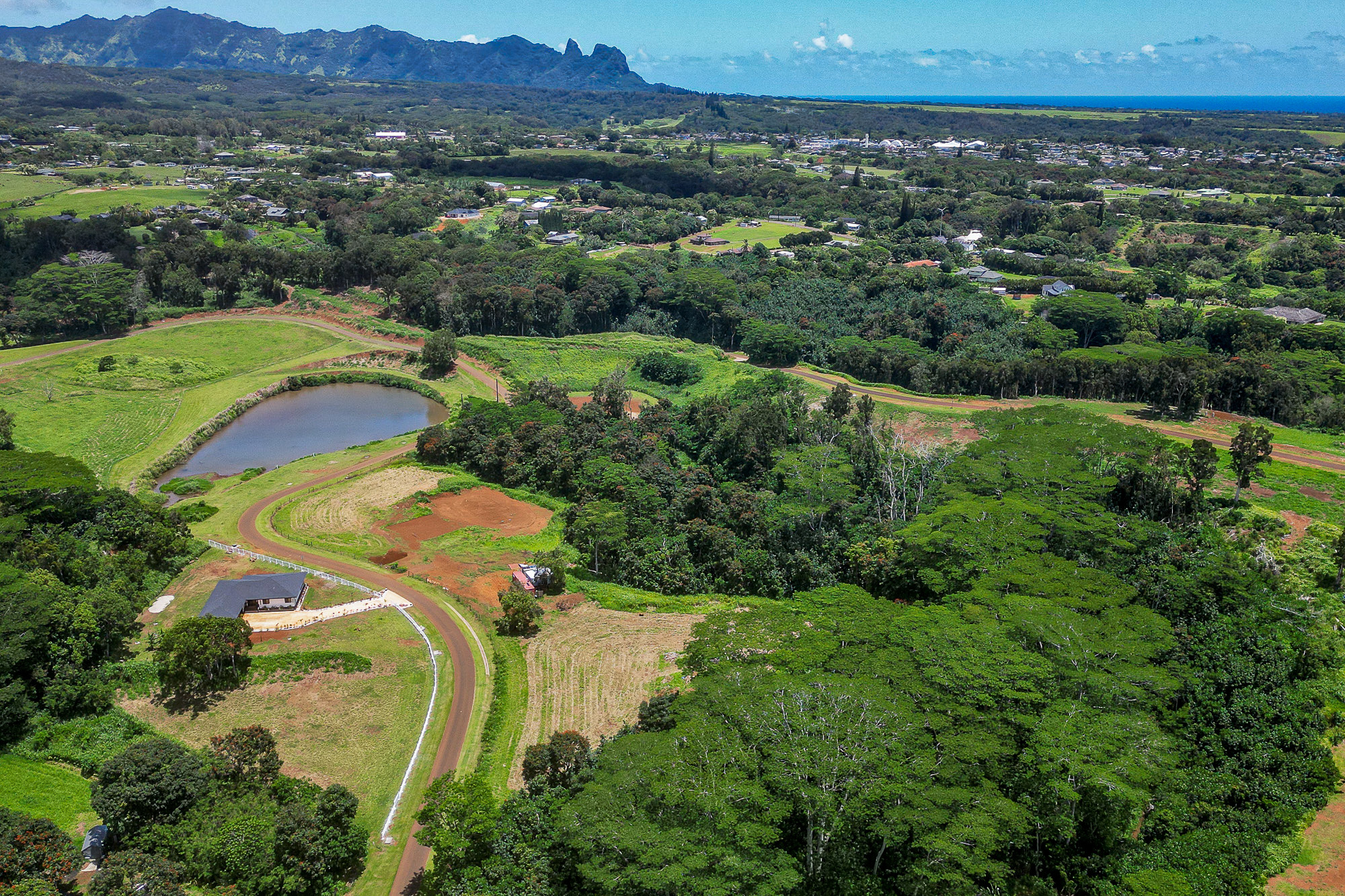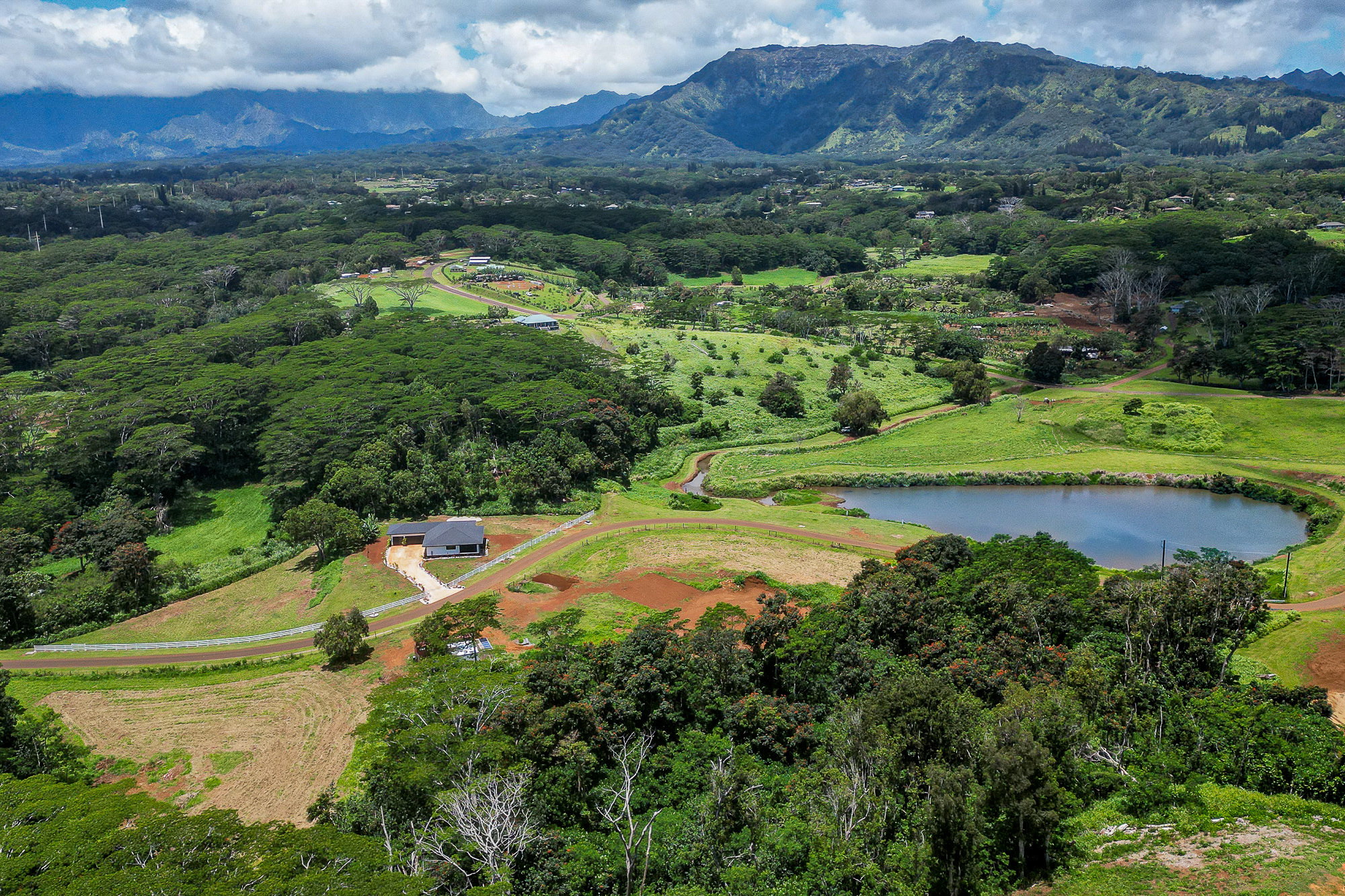Welcome to an unparalleled opportunity featuring a brand new, luxury custom-built 4 bedroom, 3 bath estate with expansive covered lanais and 3 car garage with 12 ft ceilings. Sparing no expense, this home is designed for the highest level of comfort and convenience. Experience an open concept design with extensive Taj Mahal quartz throughout the kitchen, wet-bar with beverage fridge, and oversized pantry. Outfitted with top-of-the-line Cafe appliances including a double oven, gas range and 2-drawer dishwasher, the kitchen is a showstopper. Additional features throughout the home include: Split pump HVAC heating and cooling system and high-efficiency gas on-demand water heater. Fully enclosed, screened-in lanai, living room-style with tiled floor and a natural T&G ceiling, offering impressive pond views, a perfect setting for outdoor dining and hosting. Oversized primary bedroom with walk-through closets and direct lanai access. Modern design bathrooms featuring glass showers, sleek soaker tub, backlit heated mirrors, surrounding top-of-the-line limestone tile, and heated Japanese washlets. Oversized 3-car garage/shop with 2 EV 220 charger plugs and additional provisioning for solar PV. Outdoor shower and mudroom access from the garage with smart washer/dryer plus ample storage On 3.09 Ag-zoned acres, this is a premier lot in the Kulana Subdivision with breathtaking views of the central pond. Zoning allows for the main house, ADU, and two Ag structures, as well as animals, livestock and crops. The property is fully landscaped with a top-grade 3-panel rancher fence. Fruit trees include avocado, custard apple, dragon fruit, noni, soursop, tangelo, lime, lemon, banana and coconut. Enjoy picture-perfect quiet mornings and evenings with incredible stargazing due to no streetlights or powerlines, yet only minutes from town, beach, gym, markets and schools. This tight-knit community offers flexibility while maintaining its beauty.