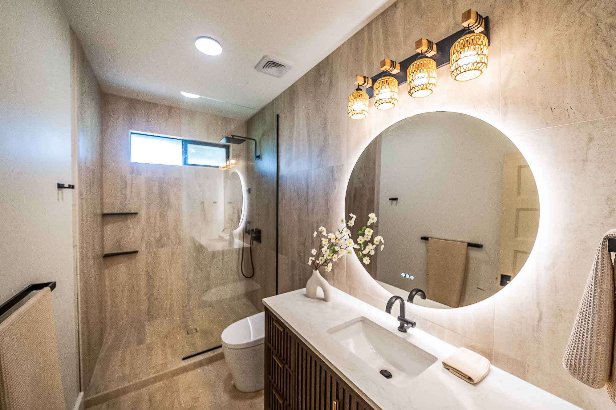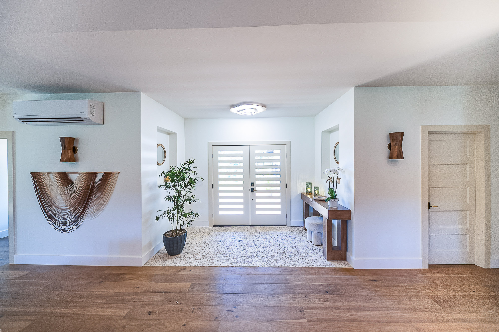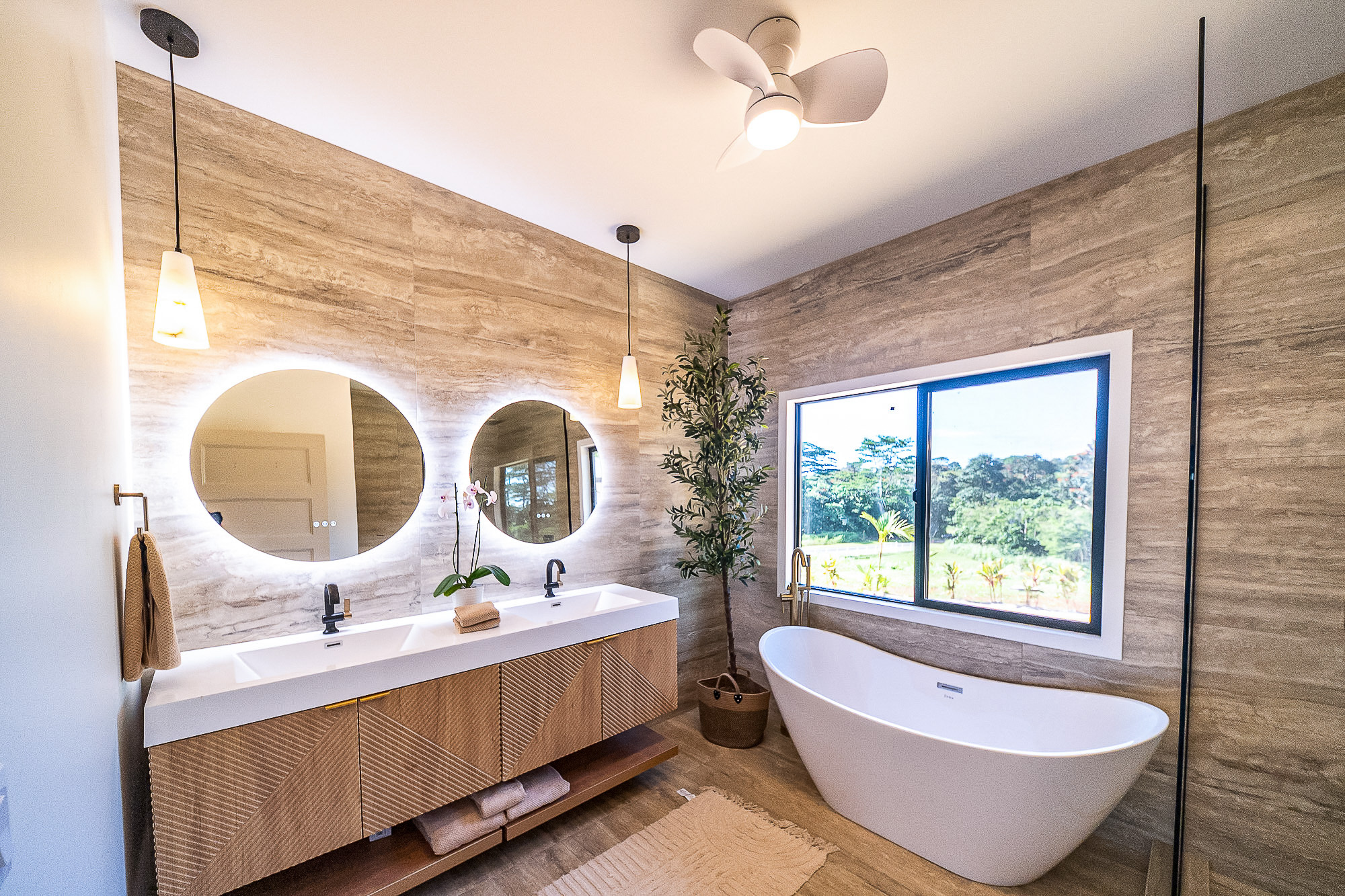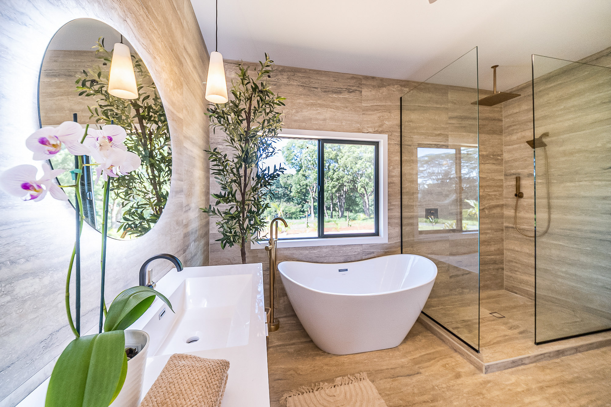 Welcome to an unparalleled opportunity featuring a brand new, luxury custom-built 4 bedroom, 3 bath estate with expansive covered lanais and 3 car garage with 12 ft ceilings. Sparing no expense, this home is designed for the highest level of comfort and convenience. Experience an open concept design with extensive Taj Mahal quartz throughout the kitchen, wet-bar with beverage fridge, and oversized pantry. Outfitted with top-of-the-line Cafe appliances including a double oven, gas range and 2-drawer dishwasher, the kitchen is a showstopper. Additional features throughout the home include: Split pump HVAC heating and cooling system and high-efficiency gas on-demand water heater. Fully enclosed, screened-in lanai, living room-style with tiled floor and a natural T&G ceiling, offering impressive pond views, a perfect setting for outdoor dining and hosting. Oversized primary bedroom with walk-through closets and direct lanai access. Modern design bathrooms featuring glass showers, sleek soaker tub, backlit heated mirrors, surrounding top-of-the-line limestone tile, and heated Japanese washlets. Oversized 3-car garage/shop with 2 EV 220 charger plugs and additional provisioning for solar PV. Outdoor shower and mudroom access from the garage with smart washer/dryer plus ample storage On 3.09 Ag-zoned acres, this is a premier lot in the Kulana Subdivision with breathtaking views of the central pond. Zoning allows for the main house, ADU, and two Ag structures, as well as animals, livestock and crops. The property is fully landscaped with a top-grade 3-panel rancher fence. Fruit trees include avocado, custard apple, dragon fruit, noni, soursop, tangelo, lime, lemon, banana and coconut. Enjoy picture-perfect quiet mornings and evenings with incredible stargazing due to no streetlights or powerlines, yet only minutes from town, beach, gym, markets and schools. This tight-knit community offers flexibility while maintaining its beauty.