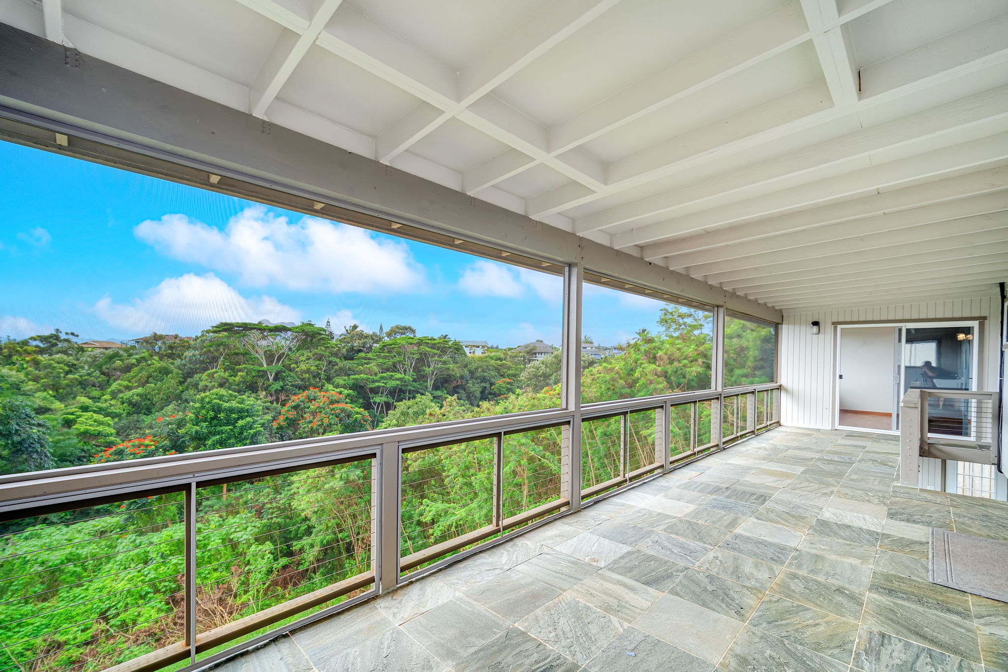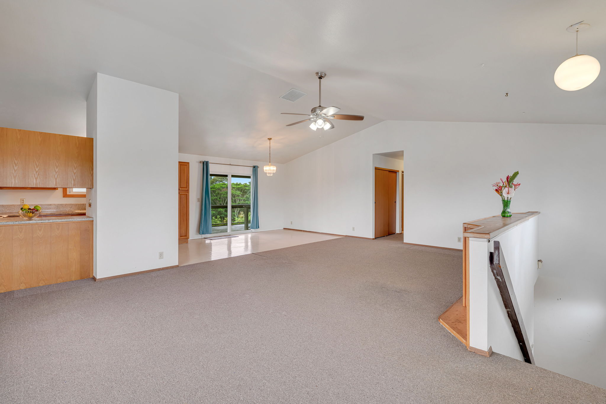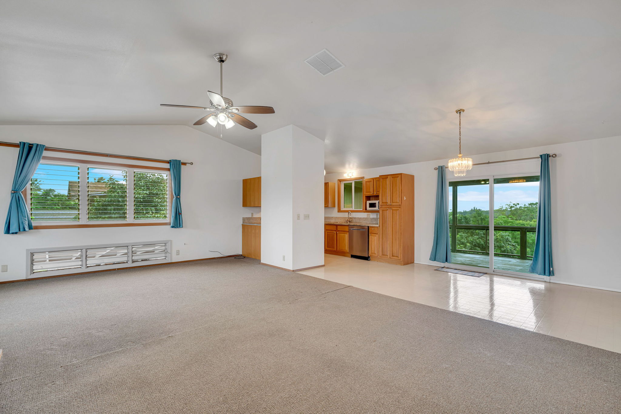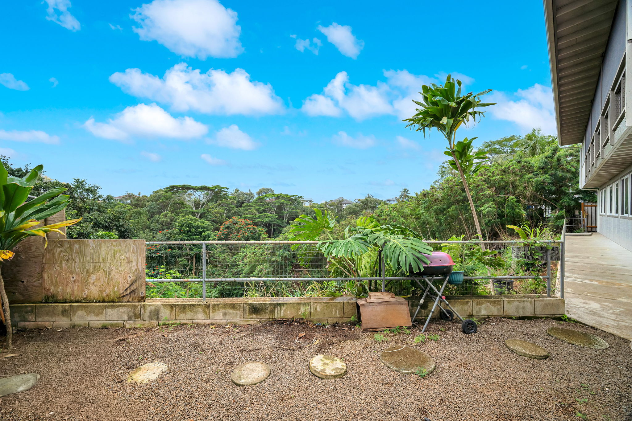 A two story, 4 bedroom 3 bath home located on a rim lot in Waialeale estates. Rim lot views. Currently the rim is not landscaped. The main house has 3 bedrooms 2 full baths, an extra office/sitting area off the primary bedroom, (total 1440 sq.ft.) high ceilings and a large covered deck. Below is another bedroom/bath/studio (1136 sq.ft.) 2 car garage and a permitted 1 car carport. The downstairs also has a large lanai. Just over a mile from Kapaa Elementary and high schools, a short drive to Kapaa town where you will find an 8 mile scenic walk/bike path, beaches, restaurants, shops, banking and more.