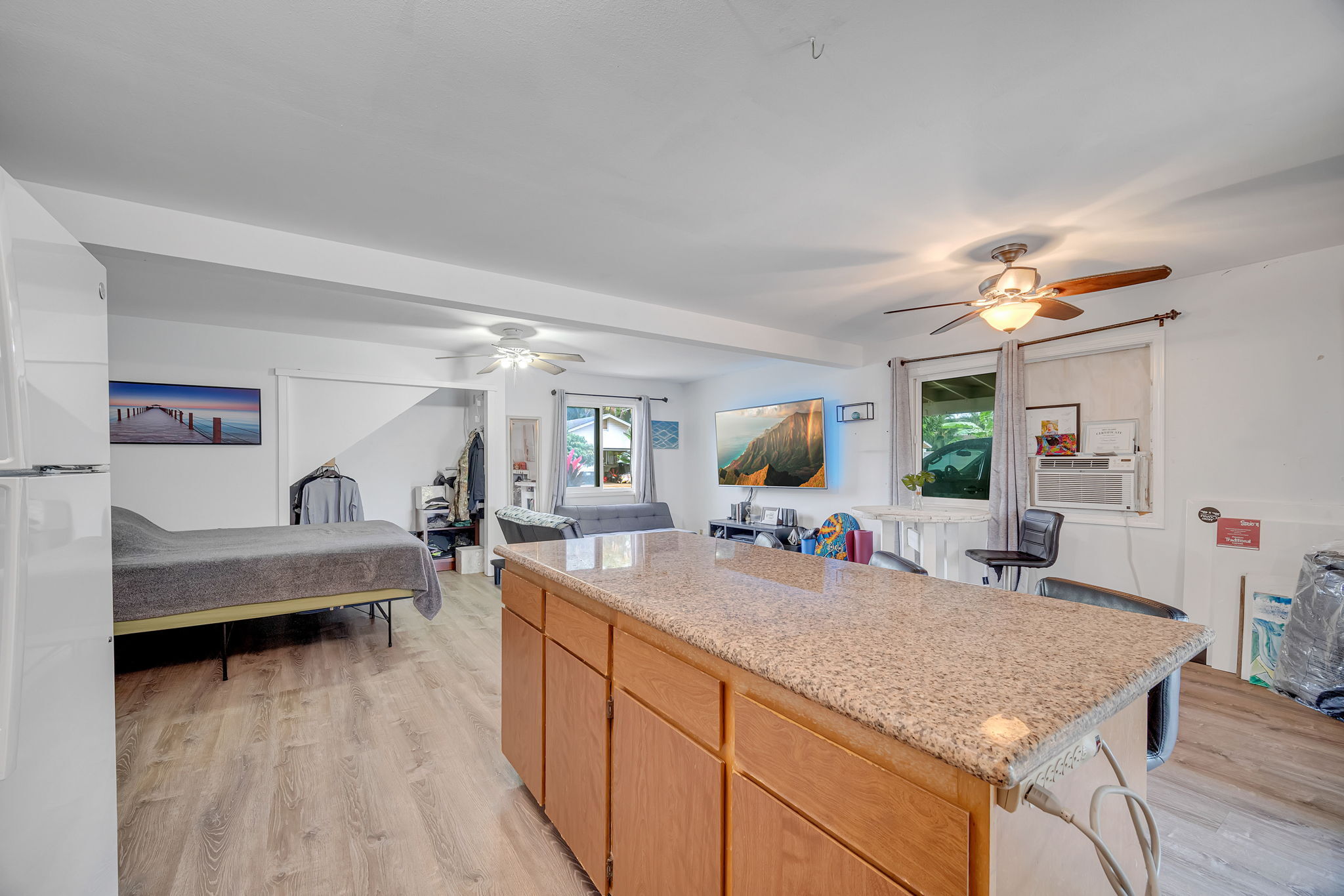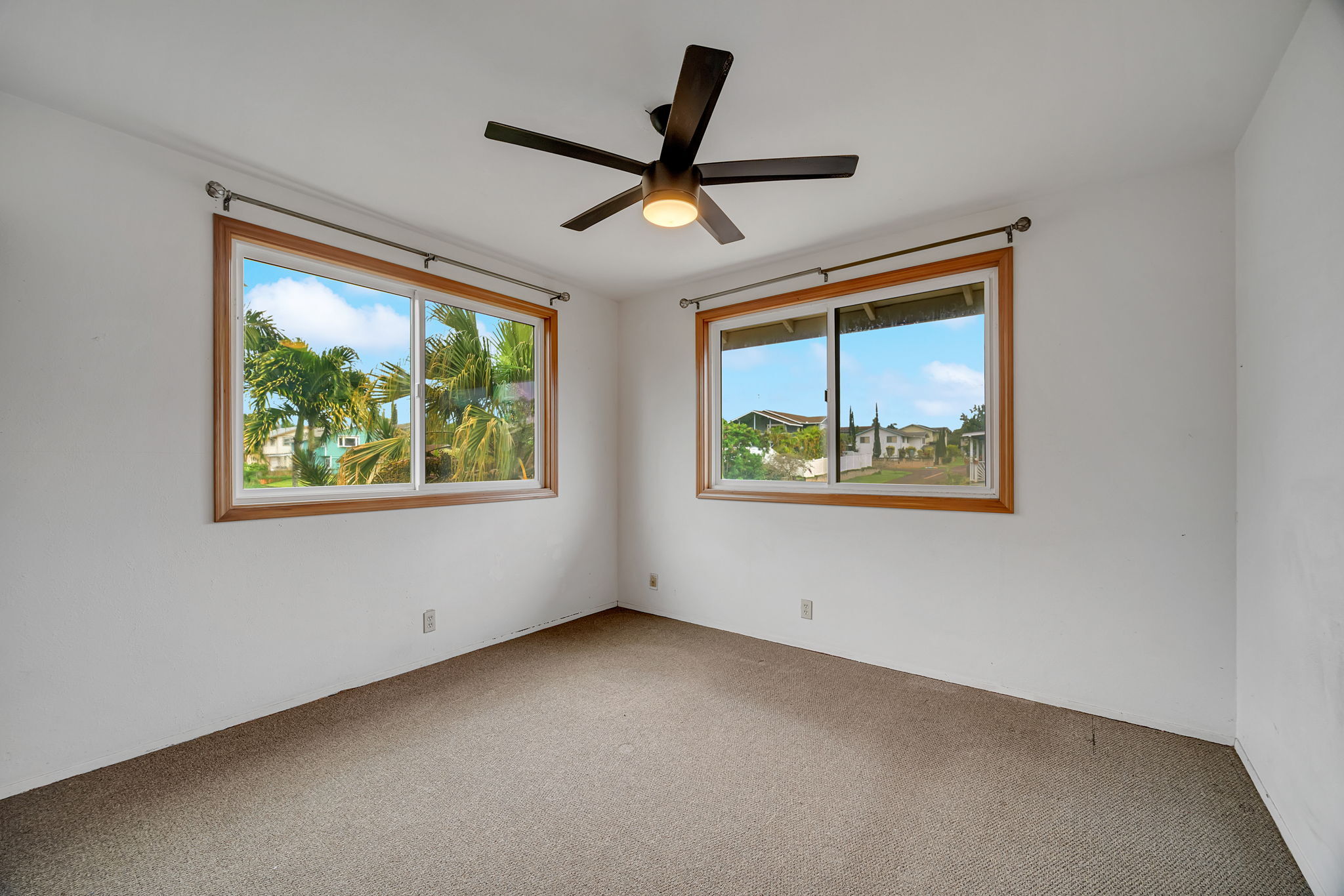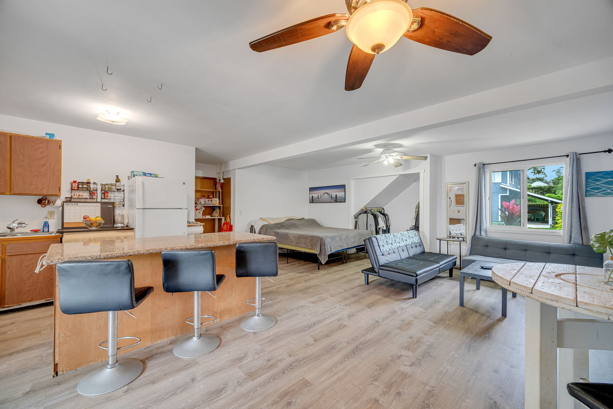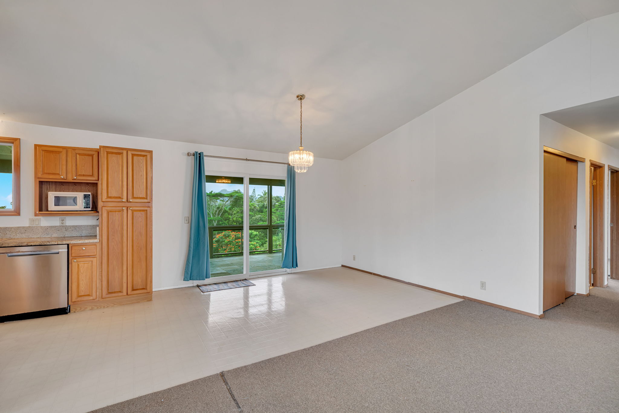 A two story, 4 bedroom 3 bath home located on a rim lot in Waialeale estates. Rim lot views. Currently the rim is not landscaped. The main house has 3 bedrooms 2 full baths, an extra office/sitting area off the primary bedroom, (total 1440 sq.ft.) high ceilings and a large covered deck. Below is another bedroom/bath/studio (1136 sq.ft.) 2 car garage and a permitted 1 car carport. The downstairs also has a large lanai. Just over a mile from Kapaa Elementary and high schools, a short drive to Kapaa town where you will find an 8 mile scenic walk/bike path, beaches, restaurants, shops, banking and more.