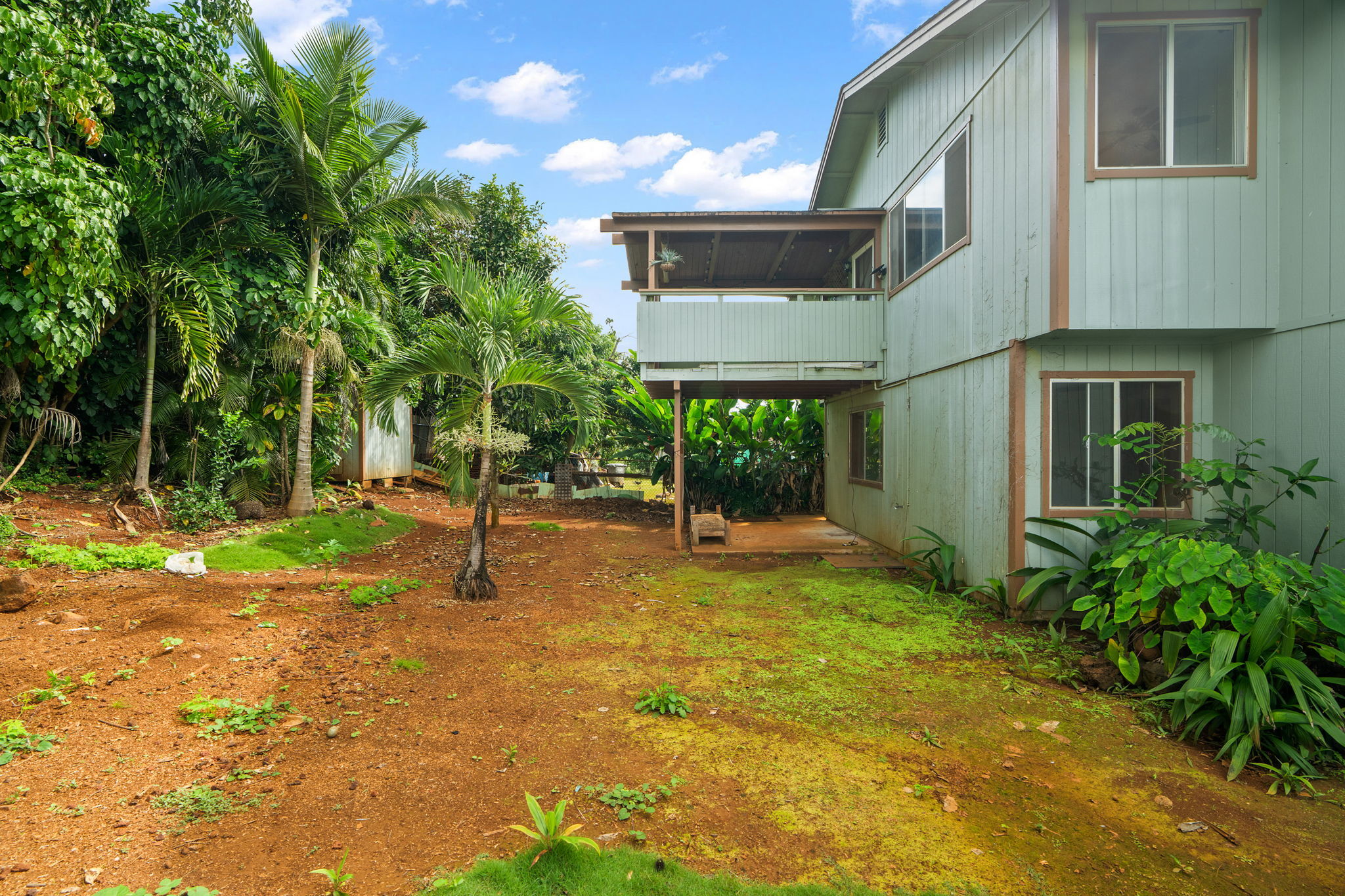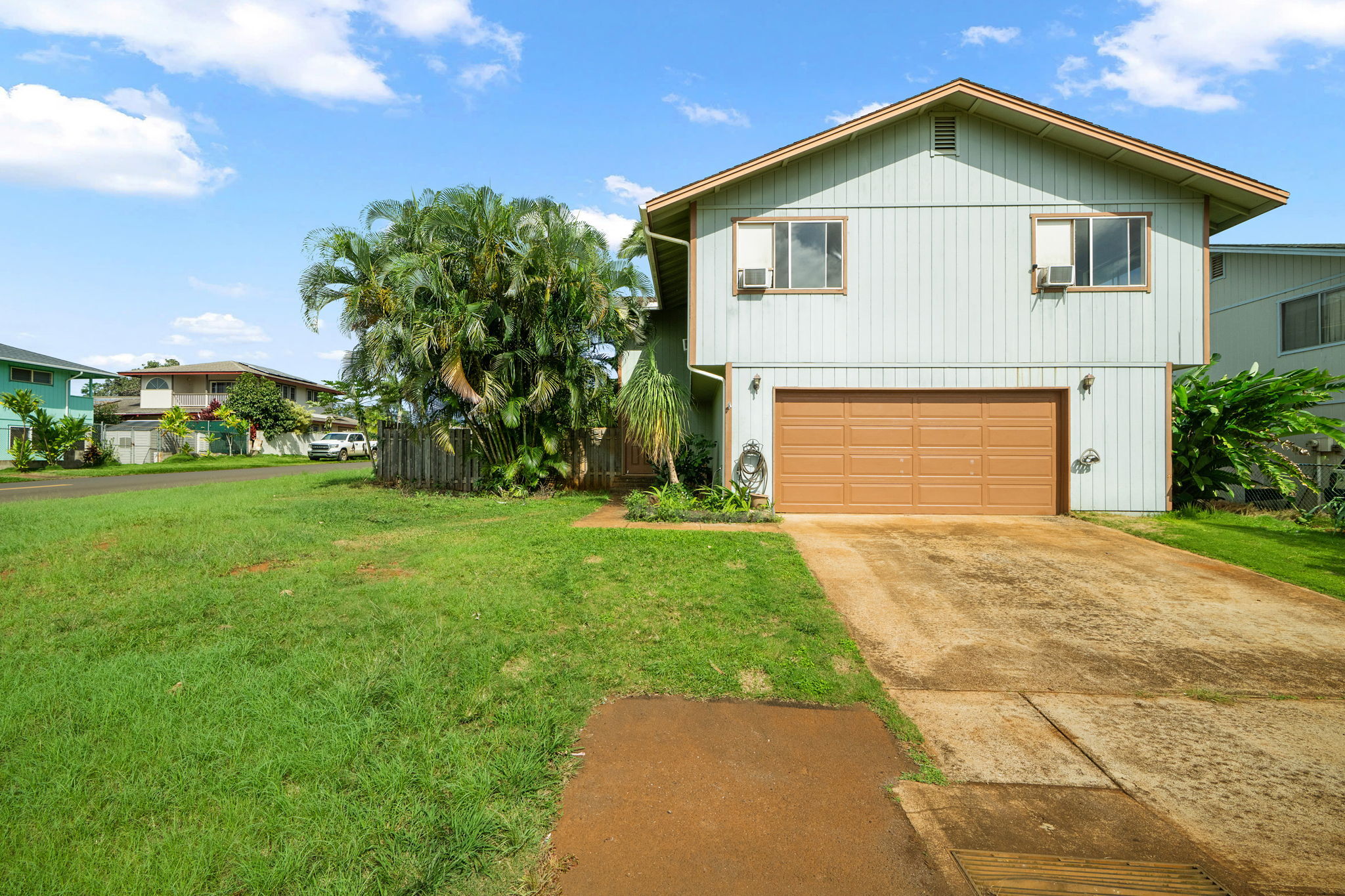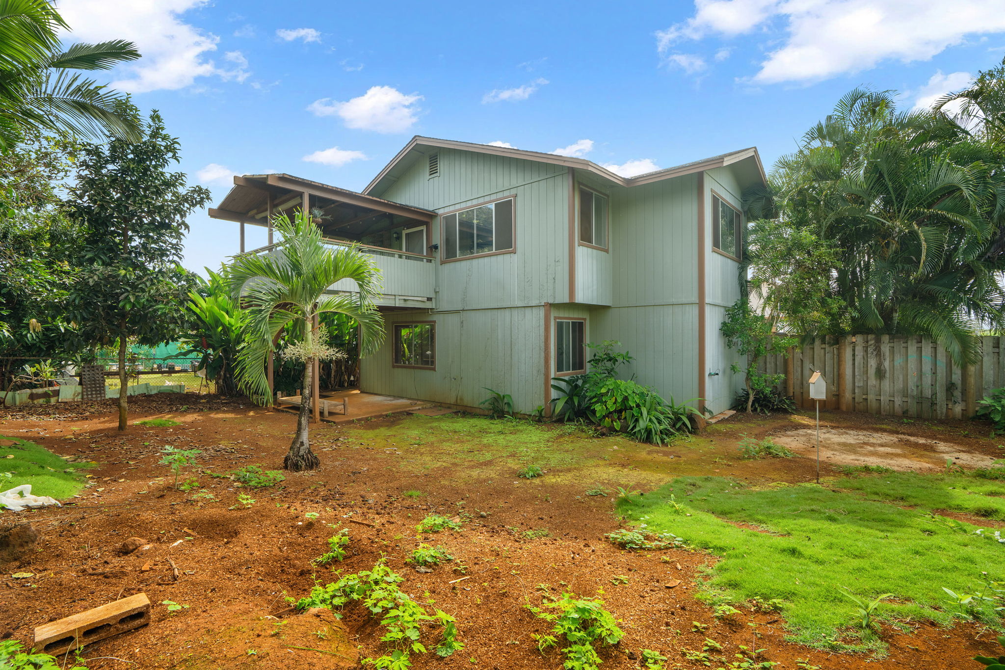 Easy to see today! POTENTIAL IN PARADISE! A terrific opportunity to remodel for fun and profit. Or move in just like it is. Or rent it to a Kauai family. With an extra downstairs apartment you have several long-term rental options. Could use some love, but it has good bones, with a good floorplan, on a good lot, in a good neighborhood, at a great price. With 3 bedrooms and 2 full baths upstairs, and a 1 bedroom with 1 full bathroom downstairs you have all kinds of living arrangements possible. Upstairs also features a massive living room with vaulted ceiling and an abundance of windows. Kitchen is functional with stainless steel appliances. It has a breakfast bar AND a dining area, but you might end up using your covered lanai as your dining room because its so pleasant out there. Downstairs, in addition to the apartment is an oversize garage for 2 vehicles and your toys. The corner lot makes the yard feel larger than most and offers plenty of space for parking cars or maybe even a boat. The backyard is fenced and is a blank canvas for your ornamental landscaping ideas or agricultural pursuits. Short bike ride or car ride to beach, stores, restaurants, schools, churches, and everything historic Kapaa Town has to offer. It's not easy out there, but this provides you an opportunity to enjoy homeownership on Kauai. Shop around and you'll see this is THE best value in the neighborhood. Easy to see today!