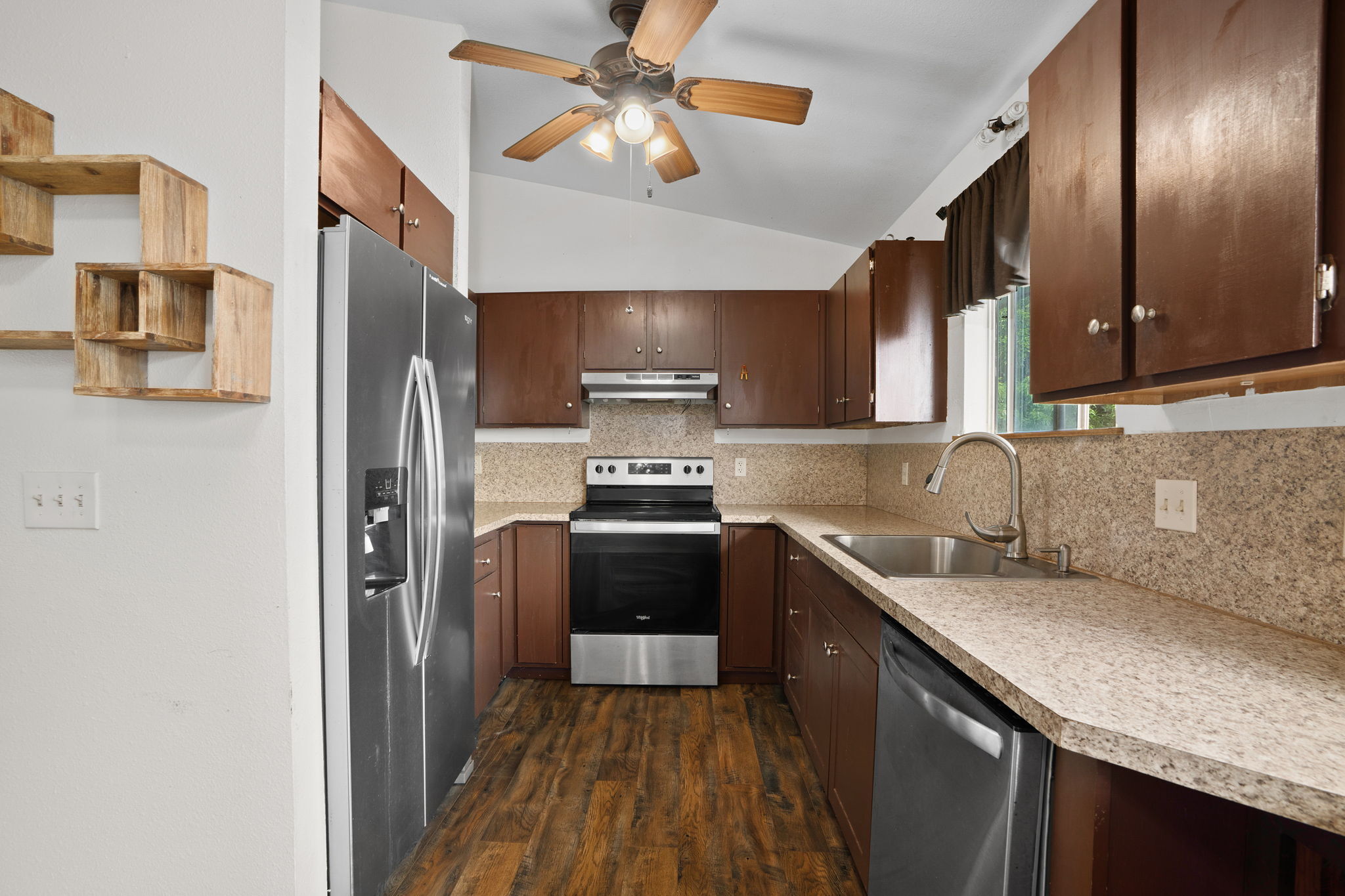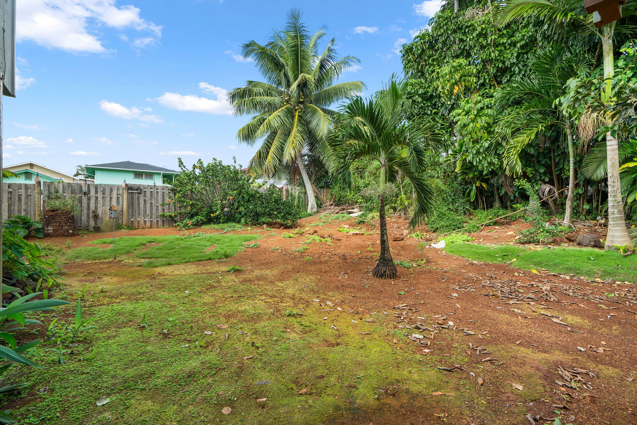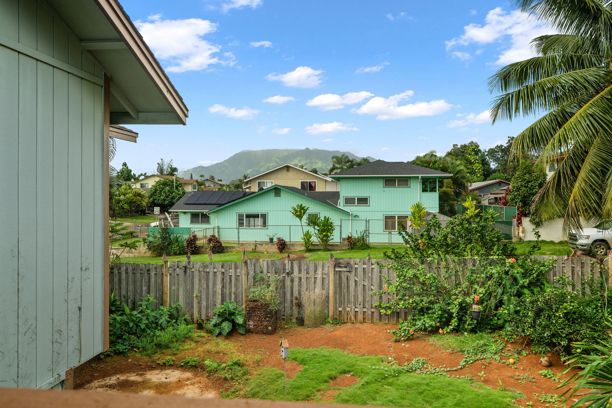 Easy to see today! POTENTIAL IN PARADISE! A terrific opportunity to remodel for fun and profit. Or move in just like it is. Or rent it to a Kauai family. With an extra downstairs apartment you have several long-term rental options. Could use some love, but it has good bones, with a good floorplan, on a good lot, in a good neighborhood, at a great price. With 3 bedrooms and 2 full baths upstairs, and a 1 bedroom with 1 full bathroom downstairs you have all kinds of living arrangements possible. Upstairs also features a massive living room with vaulted ceiling and an abundance of windows. Kitchen is functional with stainless steel appliances. It has a breakfast bar AND a dining area, but you might end up using your covered lanai as your dining room because its so pleasant out there. Downstairs, in addition to the apartment is an oversize garage for 2 vehicles and your toys. The corner lot makes the yard feel larger than most and offers plenty of space for parking cars or maybe even a boat. The backyard is fenced and is a blank canvas for your ornamental landscaping ideas or agricultural pursuits. Short bike ride or car ride to beach, stores, restaurants, schools, churches, and everything historic Kapaa Town has to offer. It's not easy out there, but this provides you an opportunity to enjoy homeownership on Kauai. Shop around and you'll see this is THE best value in the neighborhood. Easy to see today!