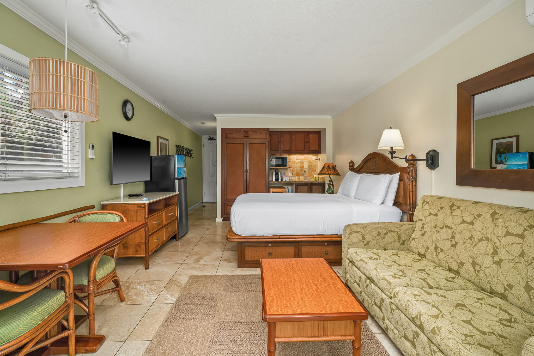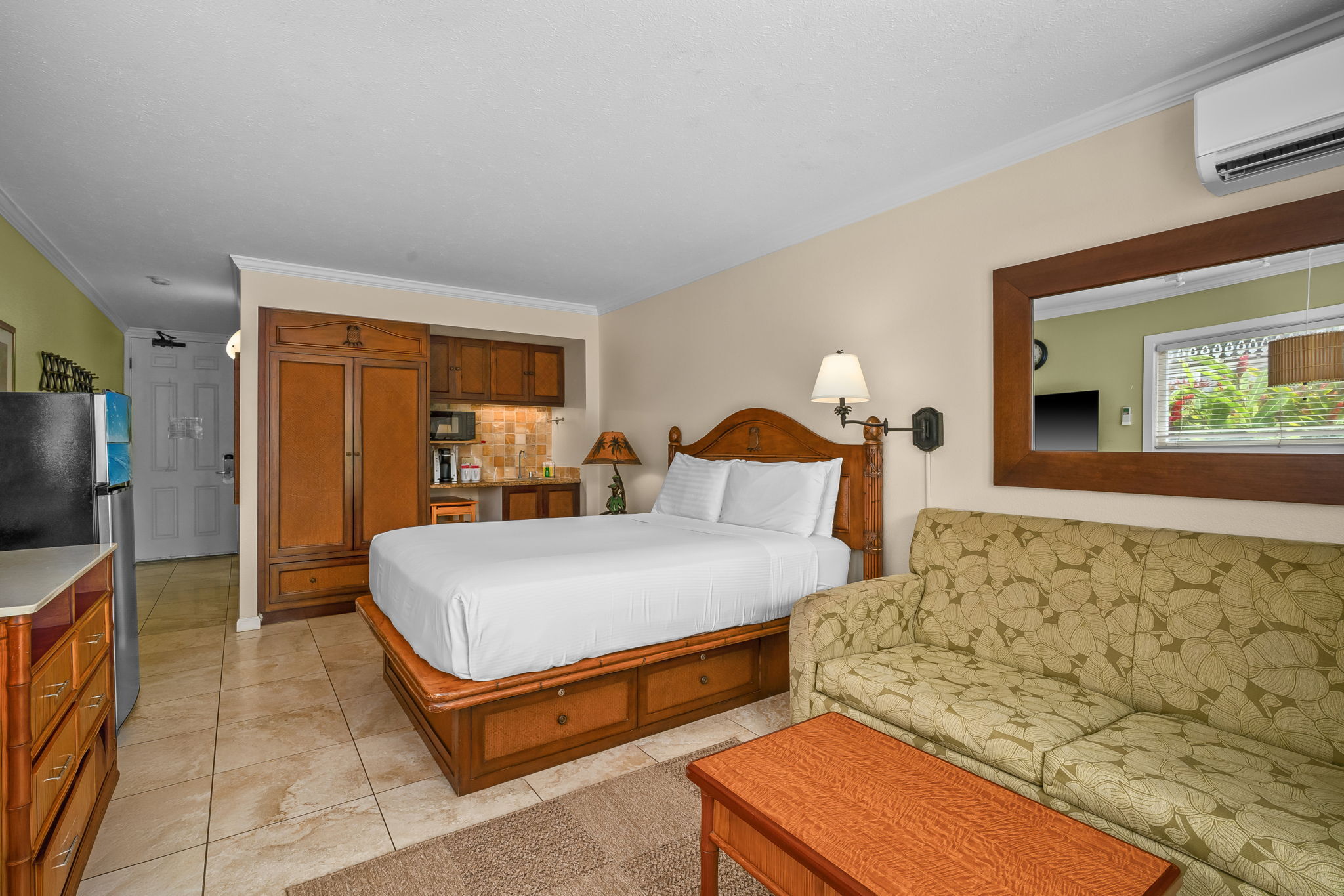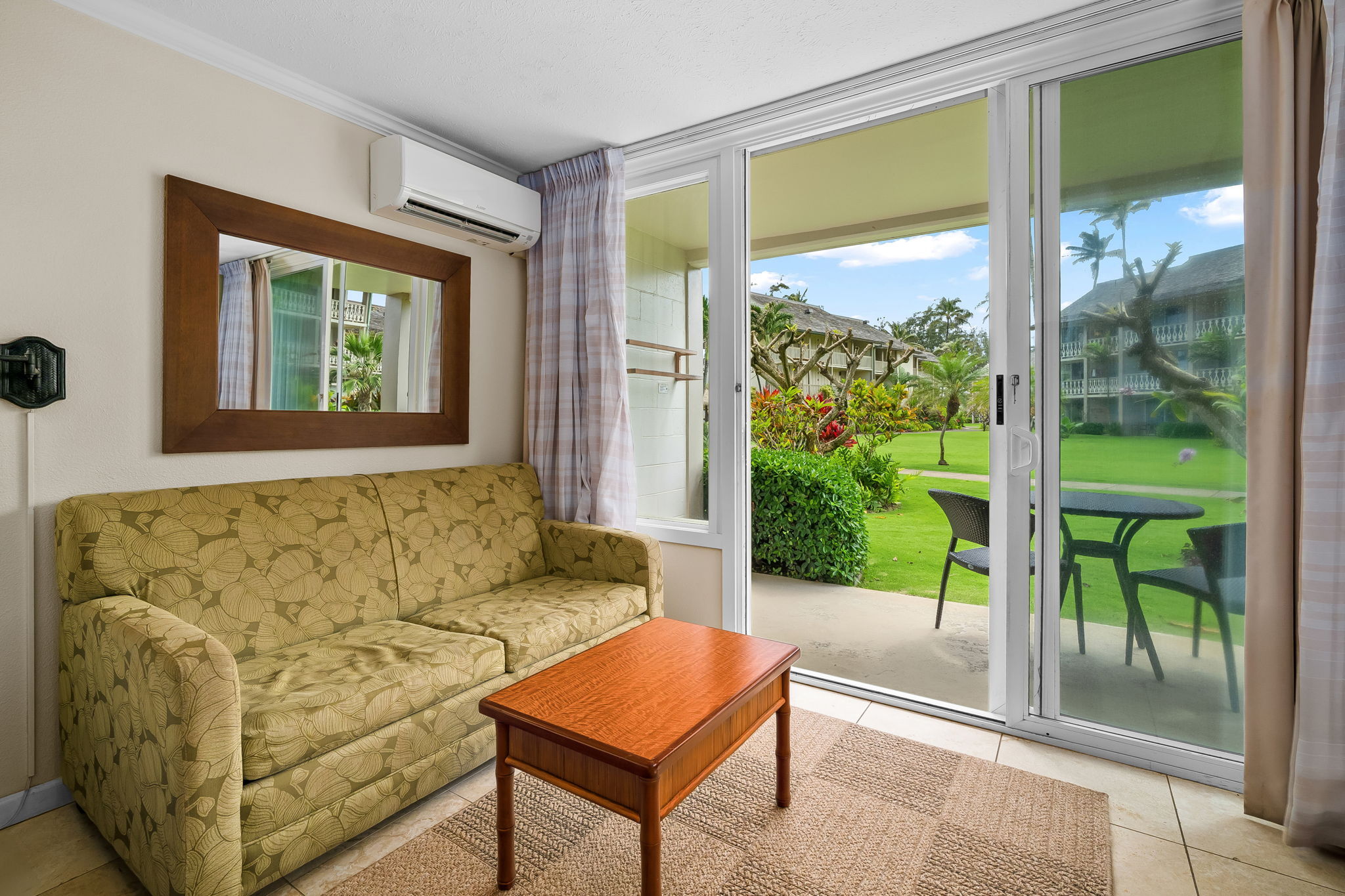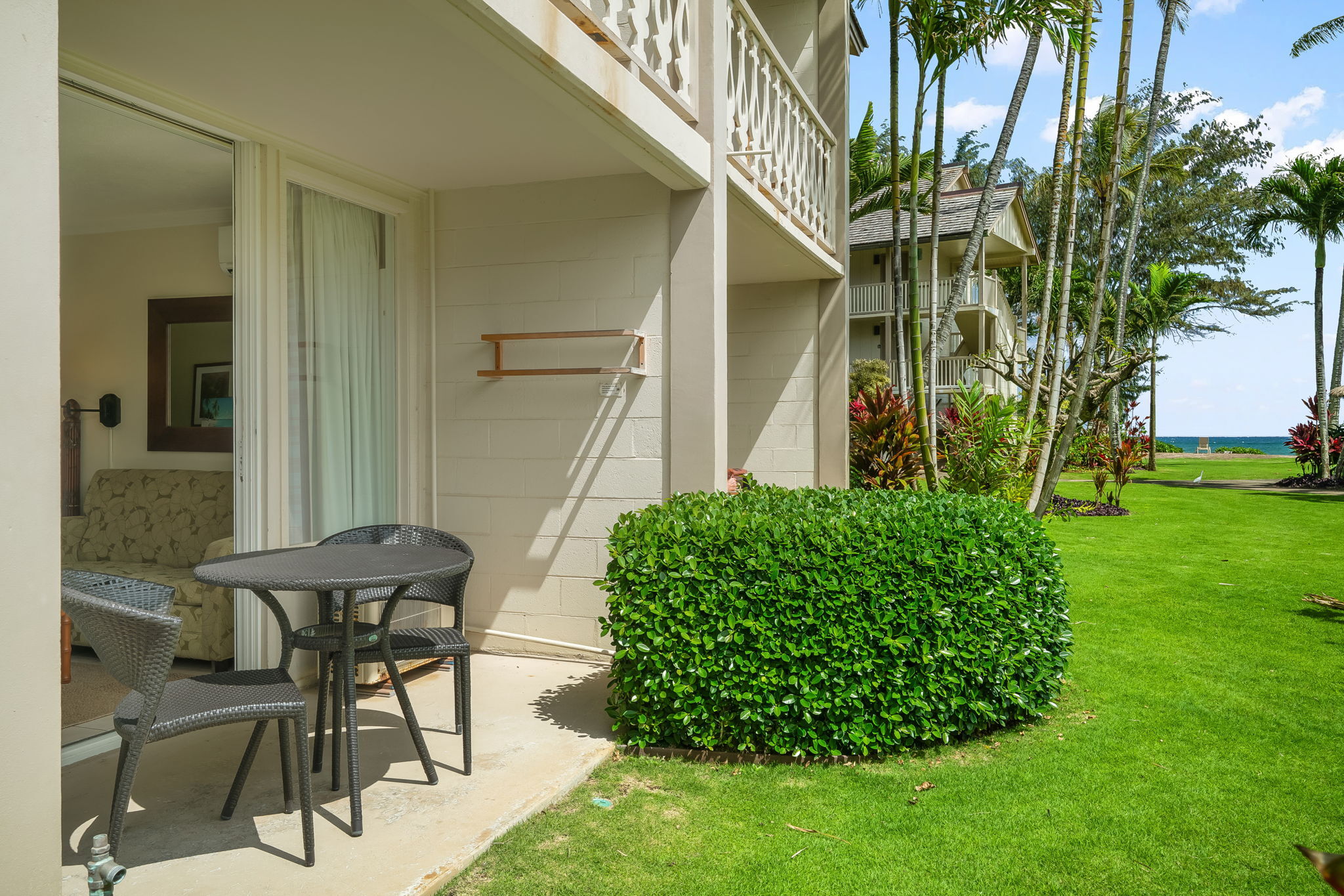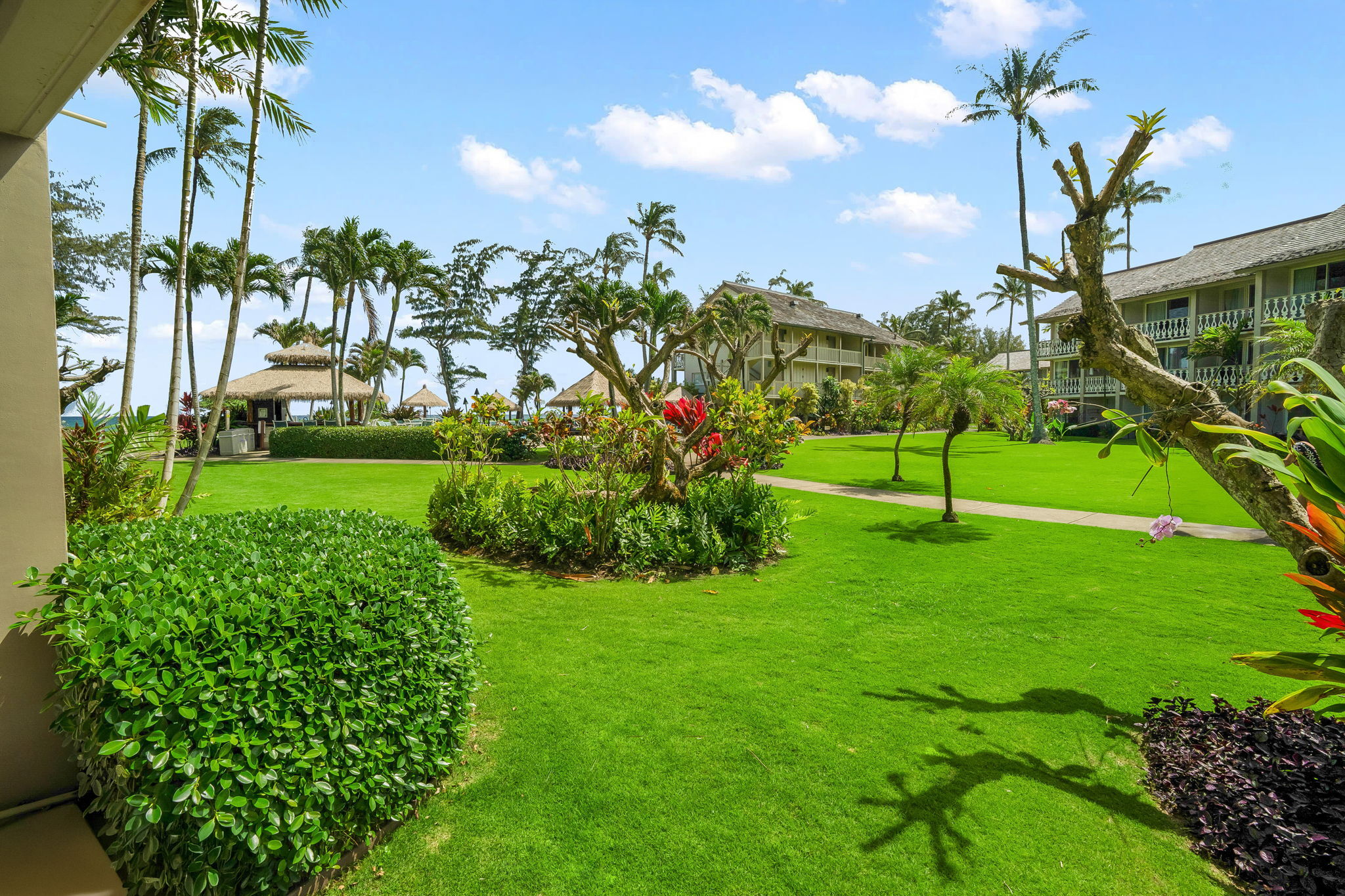 Islander on the Beach #138 is a vacation rental. Offered fully furnished and turn-key, and is ready for immediate enjoyment! As a premier location ground-floor end unit, it provides added privacy, convenience, and easy access. This inviting condo offers a perfect blend of comfort and island charm, with a layout designed for easy living and seamless indoor-outdoor flow. Step inside to an open-concept living and dining space that extends to a private lanai – an ideal spot to relax and take in the gentle ocean breezes and tropical views. Thoughtfully maintained and tastefully furnished, this unit features include a split AC system for year-round comfort, island-inspired décor, elegant tile flooring, and cohesive finishes throughout, including granite accents in the bathroom and wet bar area. Ideally positioned within the community, Unit #138 enjoys a peaceful setting with views of the lush, landscaped grounds, while still being just a short stroll to the resort’s top amenities. Spend your days lounging by the pool, enjoying the hot tub, grilling at the BBQ areas, or walking along the scenic oceanfront path just steps away. Use as a vacation rental, second home, or live at the resort full time – the flexibility makes this an exceptional opportunity. Nestled along Kauai’s sought-after Coconut Coast and set within a beautifully maintained oceanfront complex, this property offers a true resort lifestyle with direct beach access, tropical surroundings, and everything you need to embrace the laid-back rhythm of Kauai living.