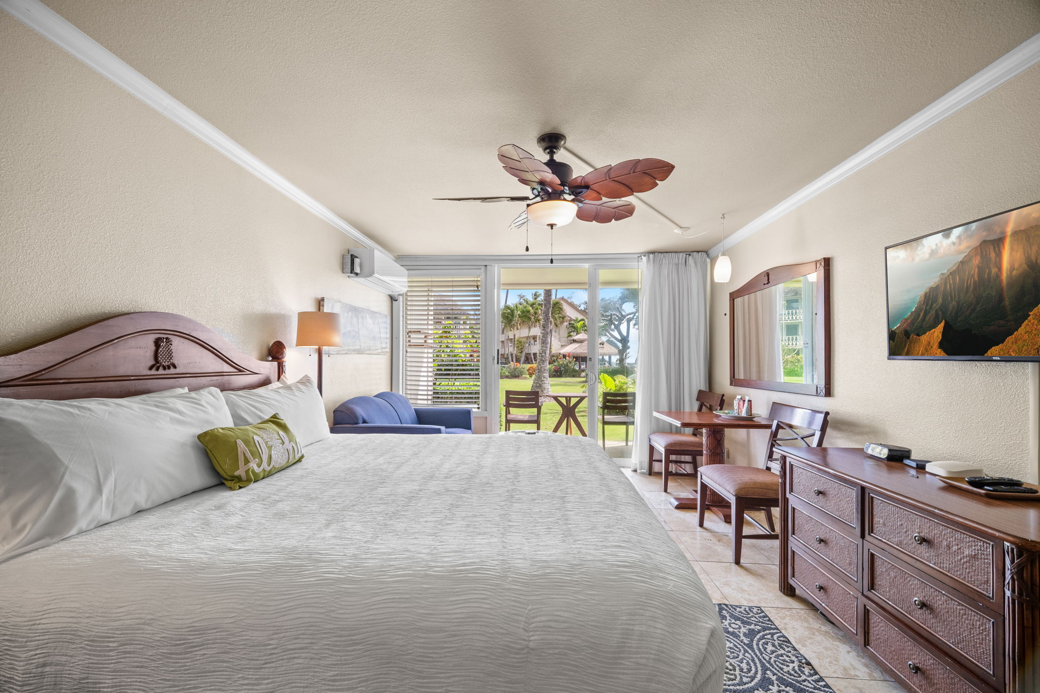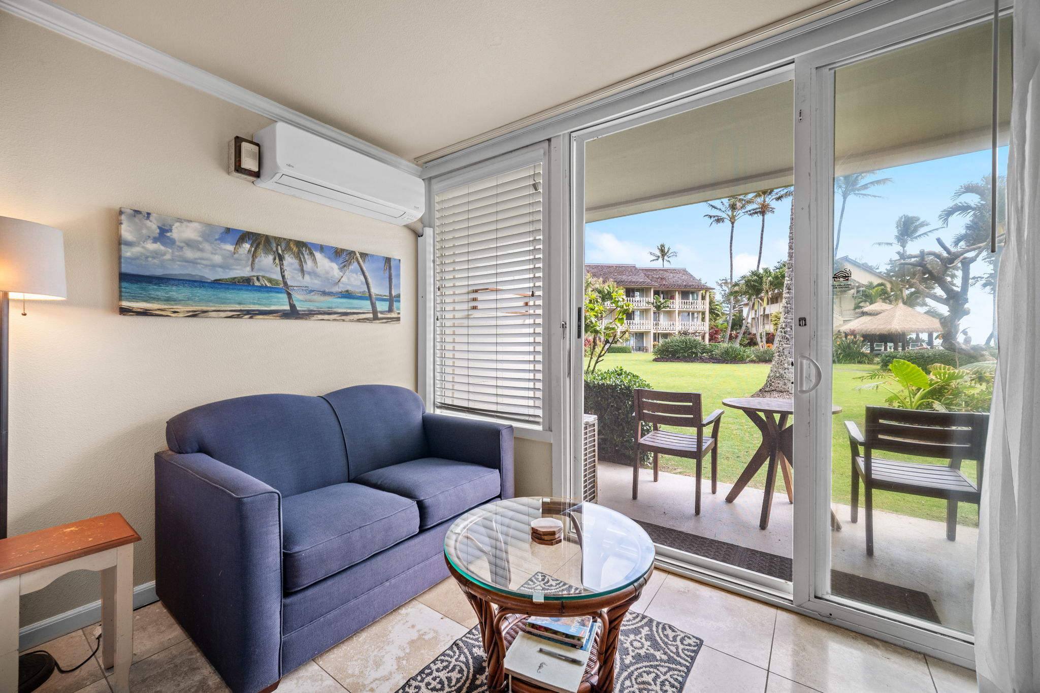 Welcome to your island retreat at 440 Aleka Place #142 in the heart of Kauai's Coconut Coast. This charming ground-floor condo offers convenient access and a relaxed coastal lifestyle just moments from the beach. Located within a well-maintained oceanfront resort community, this unit provides a comfortable interior layout with an open living and dining area that flows seamlessly to a private lanai – perfect for enjoying Kauai’s tropical breezes. Well maintained and beautifully appointed, this condo is offered fully furnished and turn-key! Upgrades include a split AC system to keep cool in all weather, hawaiian style furnishings, travertine tile flooring, and matching granite countertops in the bathroom and wet bar. Location is ideal within the complex, overlooking the center greenspace of the property with the pool and ocean in the background. A short walk to on-site community grills, the pool area with tiki bar, and the beautiful walkable ocean path. Surrounded by lush landscaping, the property features resort-style amenities including swimming pool and hot tub, BBQ areas, and direct beach access. Situated along the scenic Coconut Coast, you’re just minutes from shopping, dining, the Coastal Path, and all that Kapaa town has to offer. Whether you’re looking for a vacation getaway, investment property, or full-time residence, this condo offers an ideal opportunity to own a piece of paradise on Kauai’s east side.