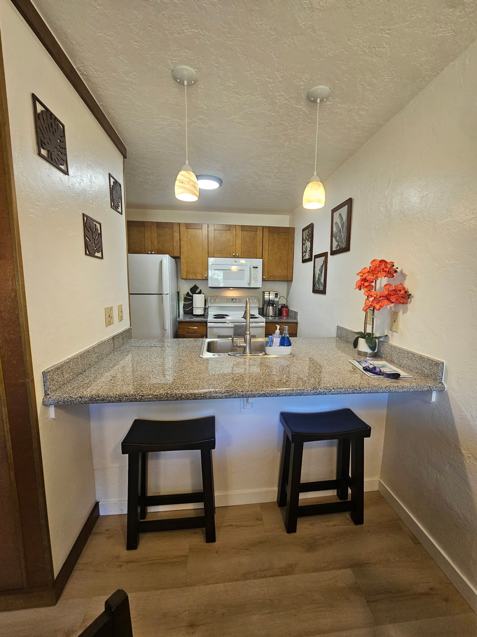 Kahaki Hale is a charming, fully remodeled 1 bedroom , 1 bath vacation rental in Plantation Hale Resort. Recently upgraded interior, including new split A/C systems in both the living area and bedroom. With proximity to the beach, resort amenities, shopping, dining and other services. Plantation Hale is an island favorite for visitors because of it's central island location, easy access to the popular coastal bike path, and numerous activities nearby. Currently used as an active vacation rental, with a solid rental track record. Here are the upgrades and improvements made by sellers, estimated at about 30k invested. -Popcorn ceiling removed and replaced with new sheetrock and texture -Entire interior redo with new trim, primer and fresh paint applied - Carpet removed through out , concrete sealed , and completely redone with LVP flooring with 20 year warranty - Bathroom upgrades with new fixtures and new mixer valve - All new dishware , bedding, and interior decor, with new kitchen appliances - Fully stocked amenities closet, with boogies, chairs and snorkel gear