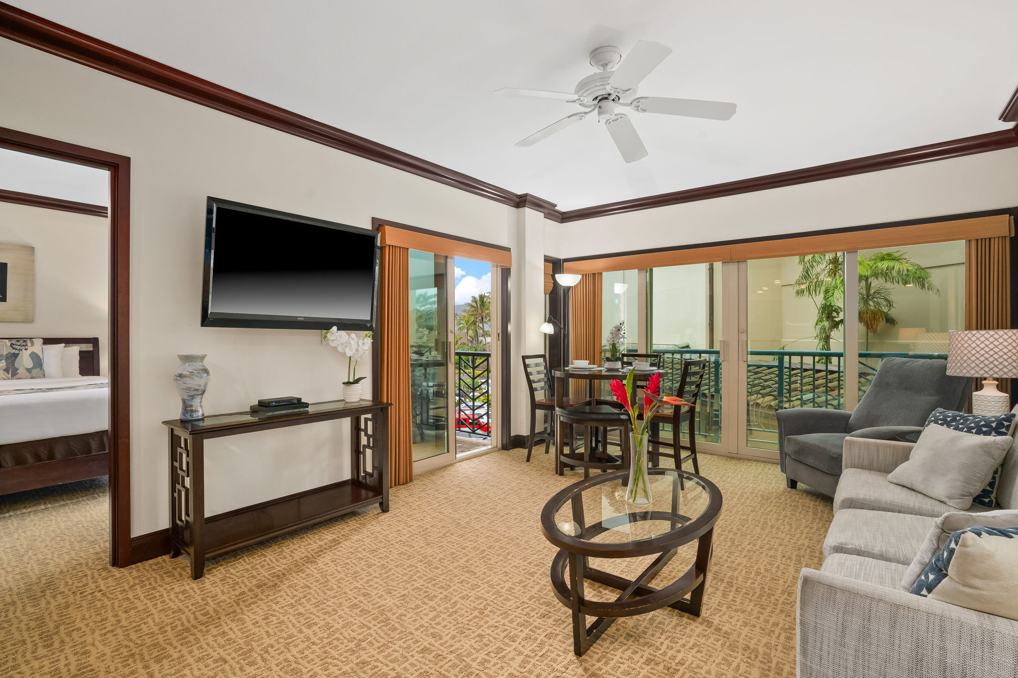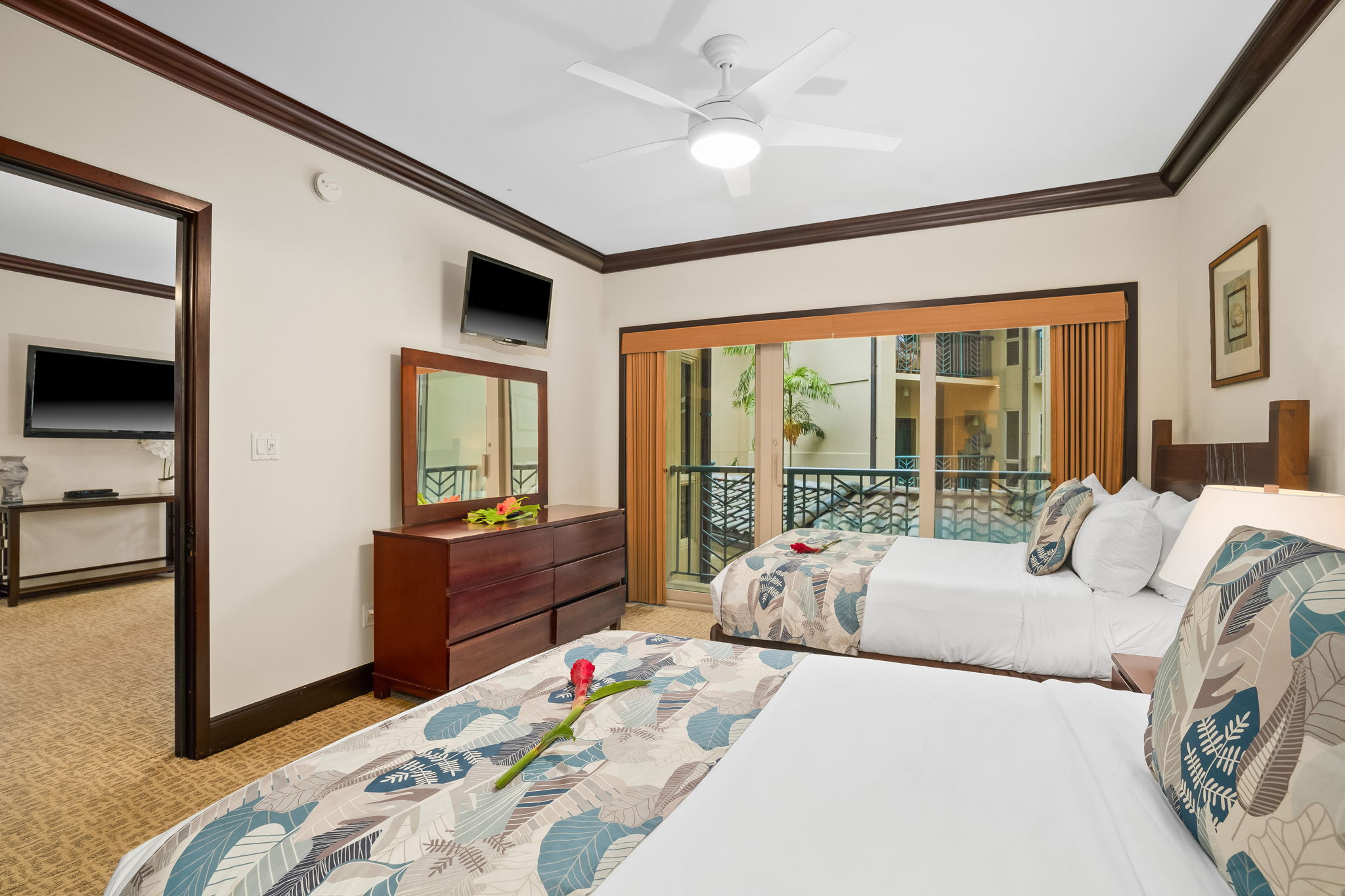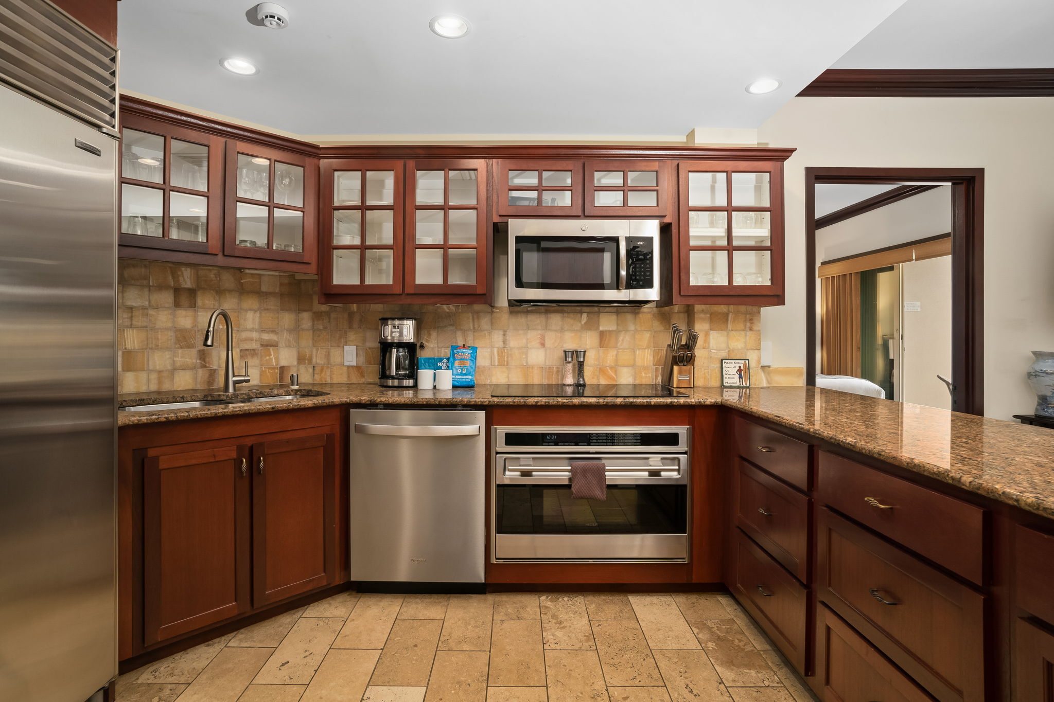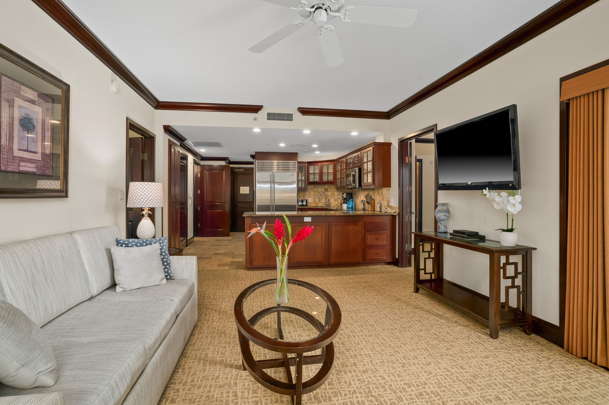 Turn-key luxury vacation rental in the highly sought-after Waipouli Beach Resort! This beautifully upgraded mountain-view 2-bedroom, 3-bath residence offers the perfect blend of upscale island living and strong income potential. Inside, you’ll find a gourmet kitchen with premium stainless steel appliances, including a Sub-Zero refrigerator, top-of-the-line cooktop and oven, along with granite countertops and rich mahogany cabinetry. Each bathroom is finished in elegant travertine with soaking tubs and separate showers, creating a true resort-style retreat. The spacious layout comfortably sleeps up to six guests with a king bed, two full beds, and a sleeper sofa. Guests love the resort’s standout amenities, including a tropical pool with lazy river, water slides, and sand-bottom spas, plus a koi pond, oceanview restaurant with live music, fitness center, and full-service spa–all just steps from the beach. Centrally located in the heart of Kapa'a, you’re within walking distance to shopping, dining, and groceries, with the coastal bike path and rentals right outside your door. Elevator access, central AC, high-speed internet, in-unit washer/dryer, and multiple flat-screen TVs add to the comfort and convenience. Located within the VDA and fully furnished, this is a proven, high-performing Airbnb with strong nightly rates and consistent occupancy–ideal for investors seeking immediate cash flow or buyers looking for a luxury island getaway that pays for itself.