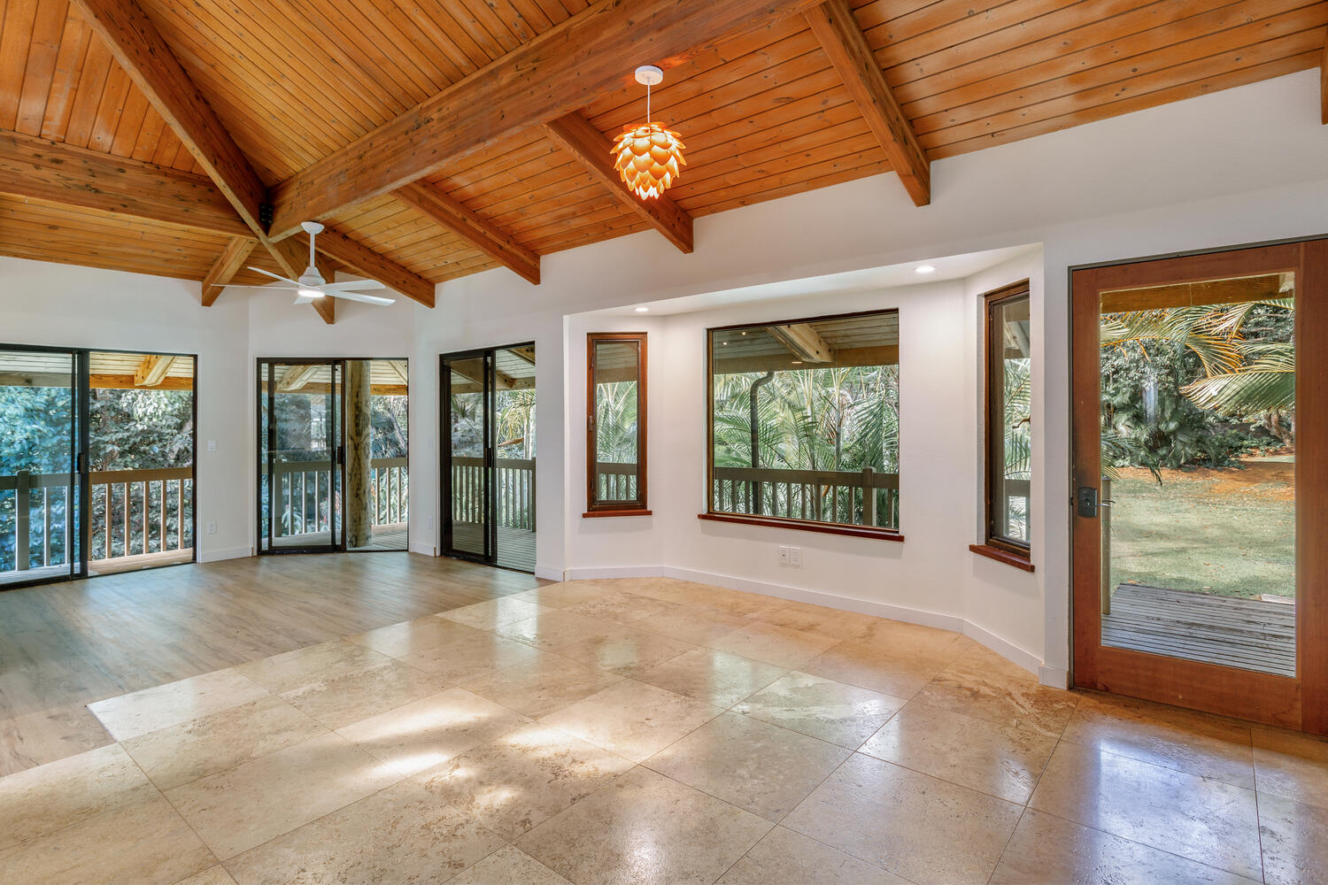 Unit 5 is set on 11 acres with an improved 1,817 square foot building, with high ceilings, wrap-around lanais, multiple rooms, and an upgraded wastewater system The surrounding acreage is predominantly undeveloped, offering rich and fertile land making it ideal for any number of farming enterprises. The existing structure has everything one may need in a classic plantation-style home or it can serve as an ideal landing pad for those wanting to design and build their dream home on unit 4.