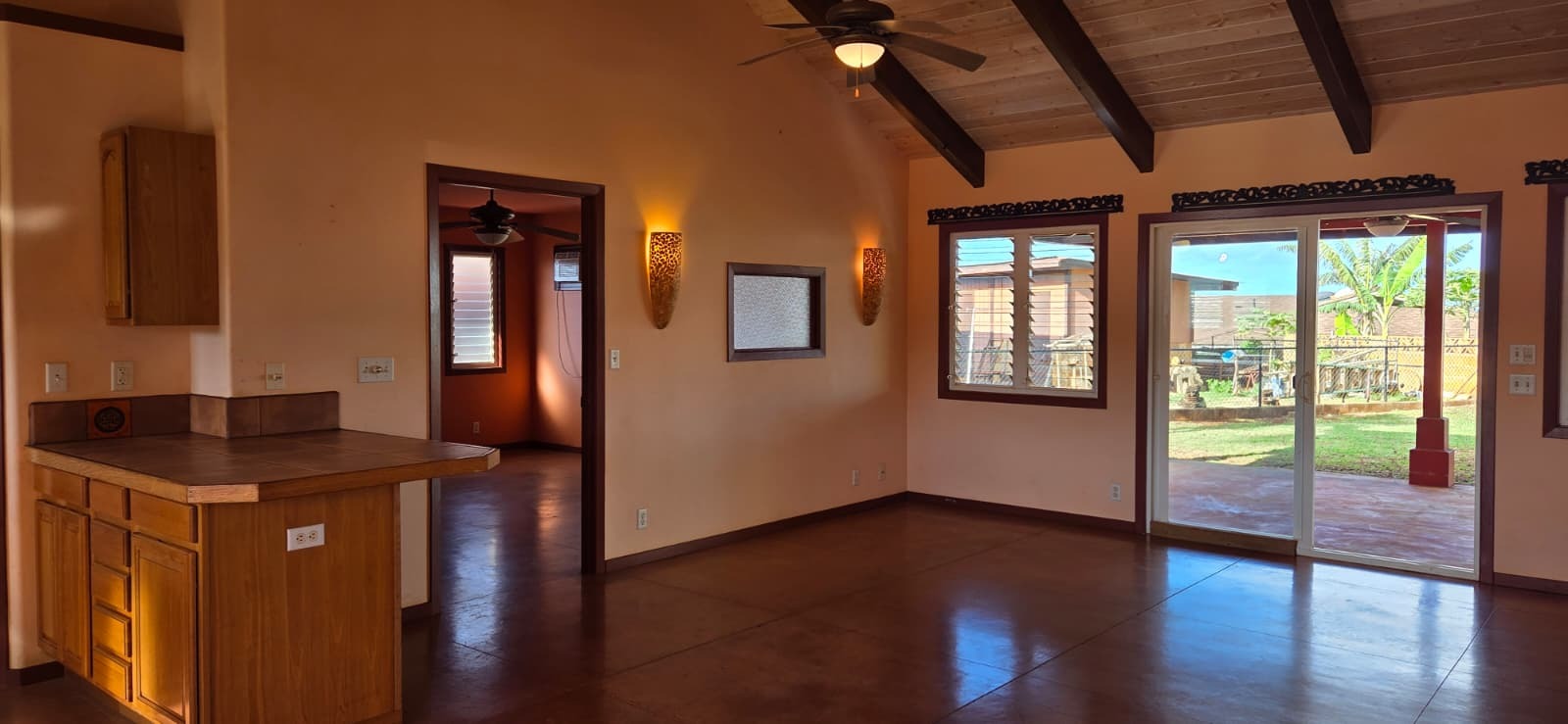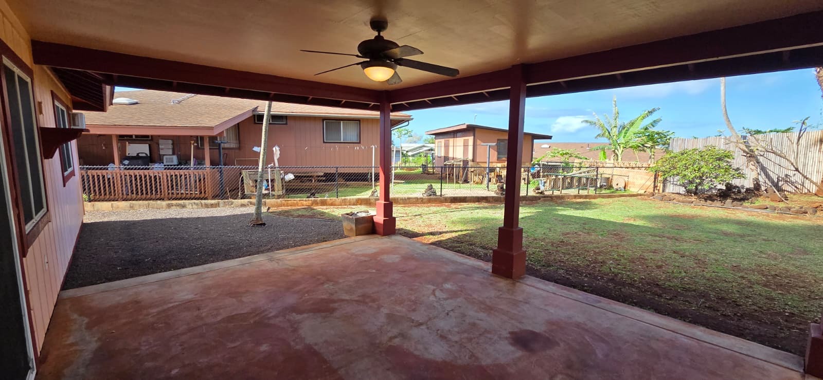 Welcome to this charming 2-bedroom, 2-bath single-family home ideally located in the desirable Eleele Nani neighborhood. Conveniently situated near schools, grocery stores, and everyday essentials, this property offers both comfort and accessibility in a peaceful residential setting. Enjoy the island lifestyle with Port Allen Harbor just down the road and Salt Pond Beach Park only a short drive away–perfect for frequent beach days, sunset viewing, and outdoor recreation. Inside, vaulted ceilings in the living room and kitchen create a bright, open, and spacious living environment. The functional layout offers comfortable everyday living with great potential to personalize and make it your own. A standout feature of this property is its sewer connection, providing added flexibility for future extensions or improvements without the limitations often associated with cesspools or septic systems. The backyard includes a covered lanai area, ideal for relaxing, entertaining, and enjoying weekend BBQs with family and friends. This home combines location, functionality, and opportunity–an excellent option for those seeking convenient island living.