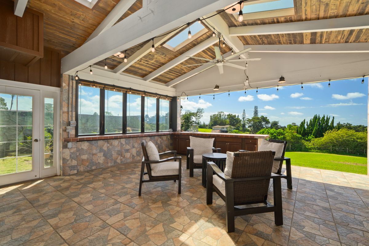 Secluded 2.23-acre Kaua?i estate offering privacy, mature fruit trees, and distant ocean views! This spacious home features an open floor plan with 9-foot ceilings, indoor and outdoor dining, a covered lanai with sink, ample cabinets and counter space. Orchid garden offers potential for landscaping or gardening. A newly added pickleball court provides fun and recreation right at home. The master suite includes a large walk-in closet and en-suite bath with jetted tub and shower. A dedicated office space (currently used as additional sleeping area) is perfect for work or study. The property includes two detached accessory structures with electricity: a 630 sq ft metal workshop with half bath and a 196 sq ft wood storage building. There is endless potential for a pool or other improvements; buyers to perform due diligence regarding permits. Just 6 miles to sunny Poipu, this home offers the perfect blend of country living and island convenience.