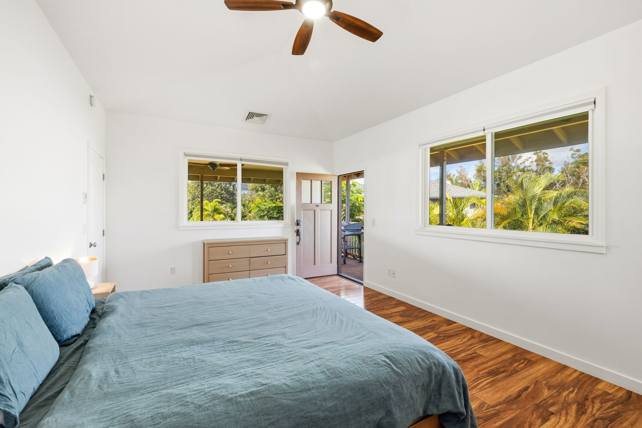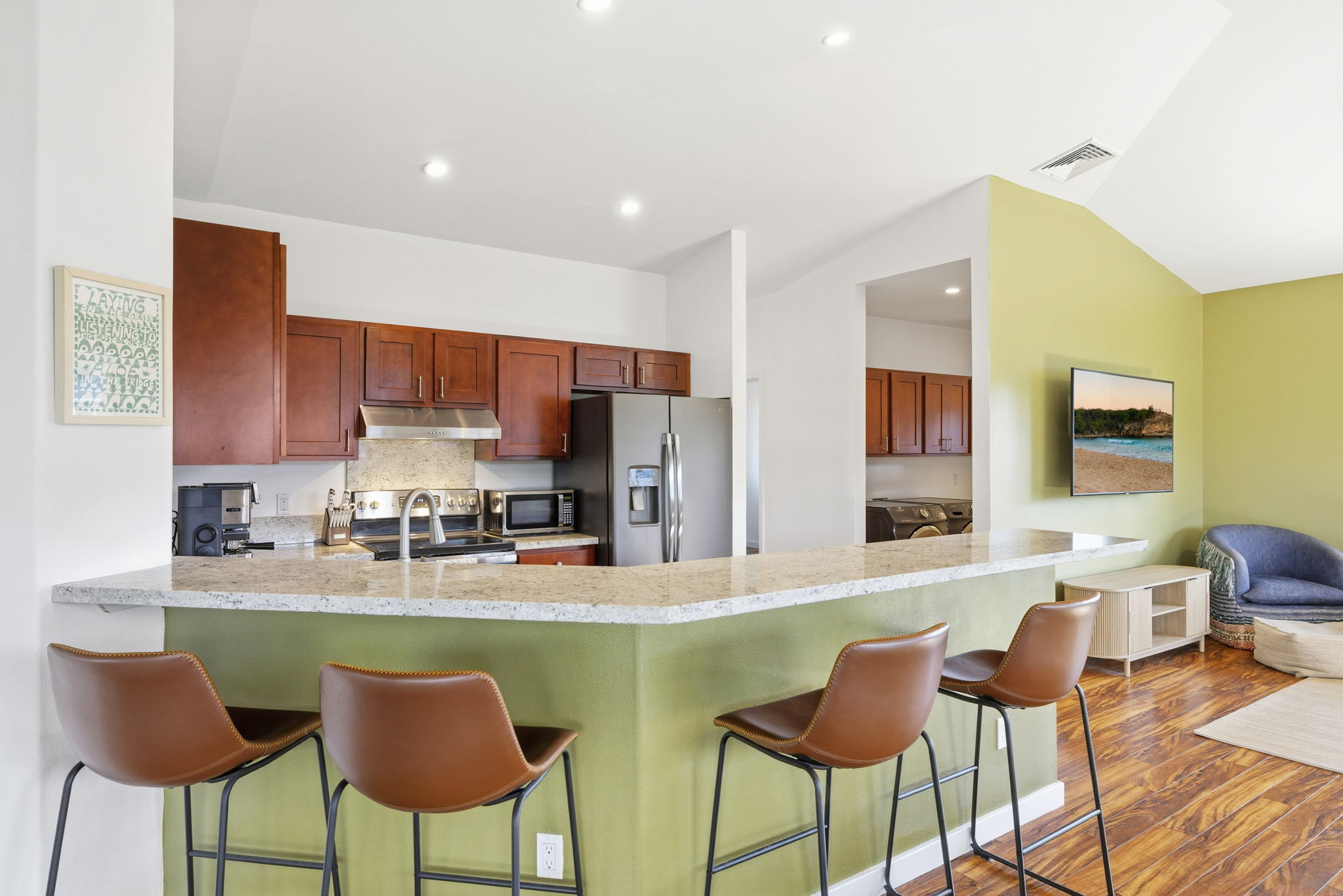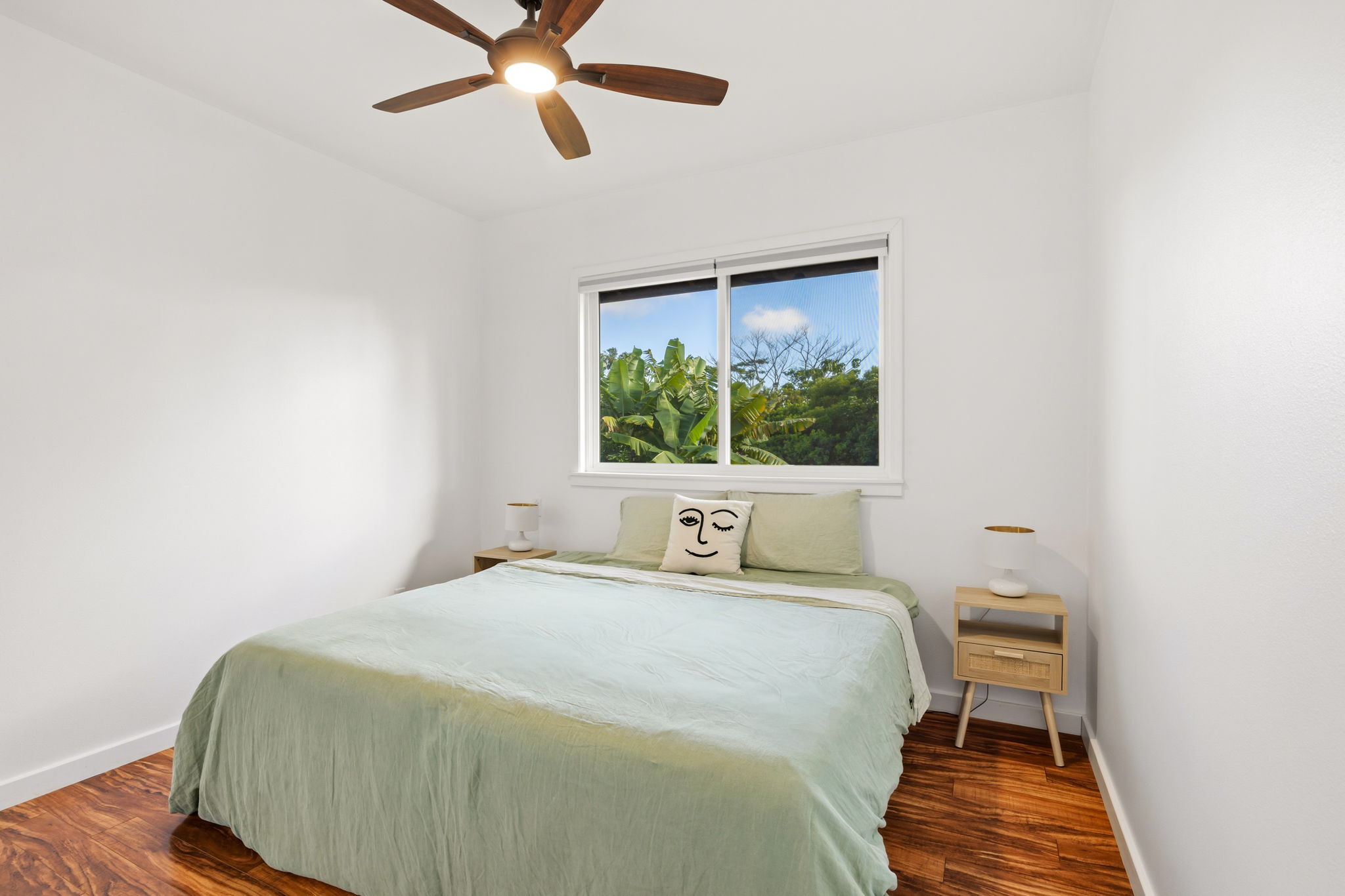 Meticulously maintained and built in 2018, this 3-bedroom, 2-bath residence is located in the highly sought-after Kai Ikena Subdivision–an ideal setting for a primary home. Offered turnkey and fully furnished, the home reflects pride of ownership throughout and is truly move-in ready. The thoughtfully designed floor plan features high ceilings, central air conditioning, and durable laminate flooring throughout the living areas and bedrooms, creating a comfortable and easy-to-maintain living environment. The spacious primary suite includes a walk-in closet, en-suite bath, and direct access to the covered lanai. Enjoy peaceful mountain views from the expansive lanai, perfect for everyday living, outdoor dining, or entertaining. The fully fenced backyard offers privacy and functionality, complete with an outdoor shower and firepit–ideal for pets, gatherings, or relaxing at home. Additional features include granite countertops, travertine tile in the bathrooms, a 2-car carport, and generous storage space beneath the home. Conveniently located near schools and just minutes from sunny Poipu, restaurants, County parks, and Kukuiolono Golf Course, this well-cared-for home delivers comfort, convenience, and quality island living in one of the area’s most desirable neighborhoods.