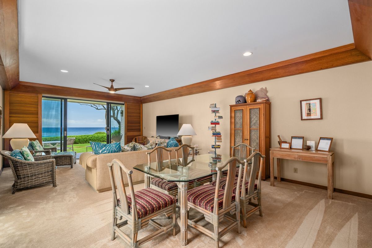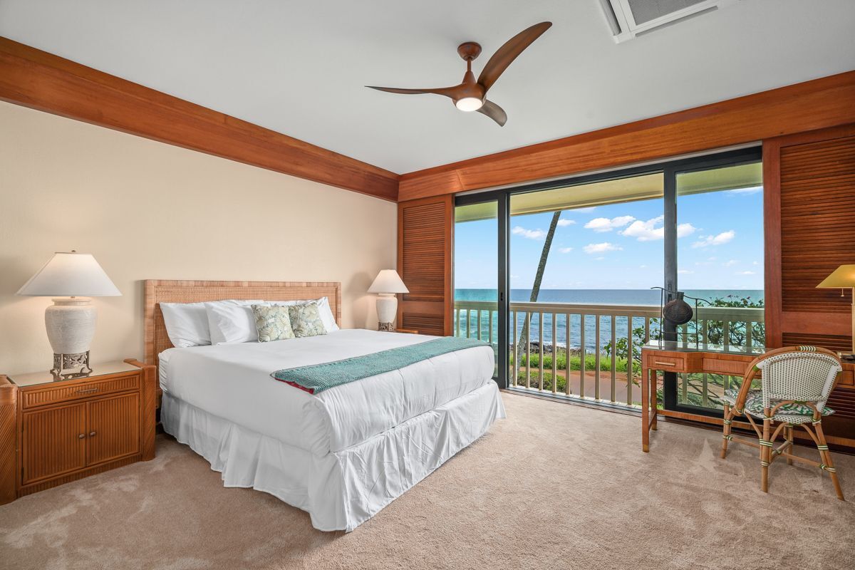 Rarely available and exceptionally positioned, Poipu Kapili #6 offers space, privacy, and performance in one of Poipu’s most desirable locations. This 2-bedroom, 3-bathroom, ground-floor corner residence stands out for its front-row ocean view setting and generous 1,837 sq. ft. footprint. The condo showcases expansive ocean views with beautiful sunsets and refreshing trade wind breezes from both lanais. Inside, an open-concept layout is complemented by two en suite bedrooms upstairs for comfort and privacy, along with a third full bathroom conveniently located downstairs. The spacious primary suite enjoys direct ocean views and the soothing sound of the surf nearby. Additional features include air-conditioning throughout, a full kitchen, in-unit laundry, and comes fully furnished–creating a turnkey vacation rental or long-term home. In addition, several furnishings are hand made locally (chest in guest bedroom, television console in living room and closed book shelf in dining room). Set within the Poipu Kapili community, owners and guests enjoy access to an ocean-view pool, tennis and pickleball courts, and multiple BBQ areas–all just moments from Poipu’s beaches, snorkeling, dining, and shopping. Located within Kauai’s Visitor Destination Area (VDA), Poipu Kapili #6 is an established, well-performing vacation rental, offering flexibility as a primary residence, second home, or investment property.