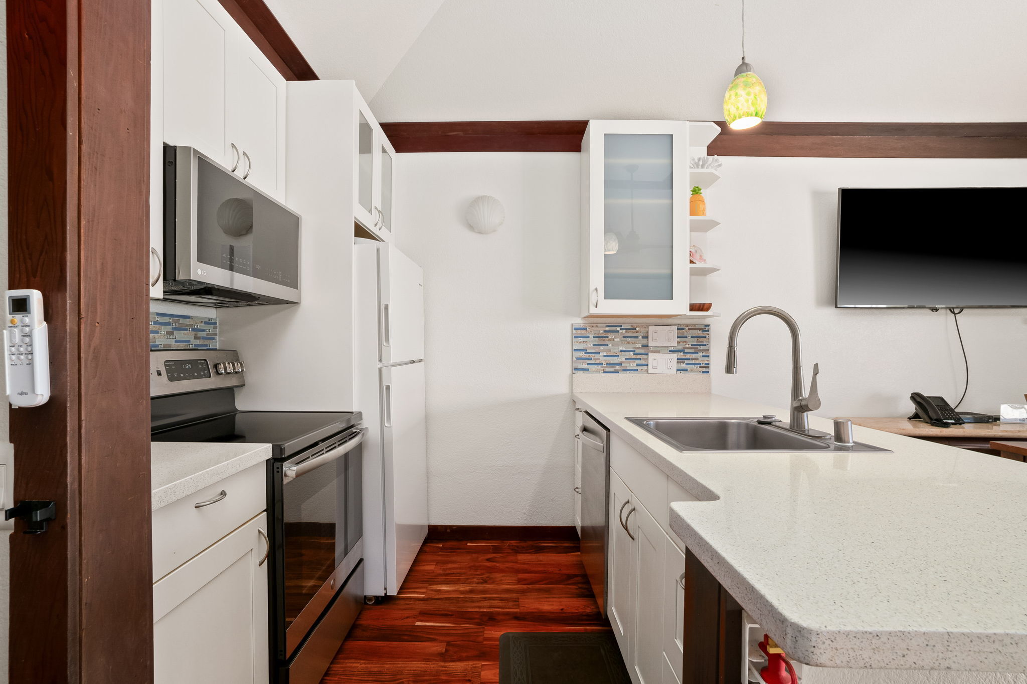 * Quartz countertops, soft-close cabinetry, tile backsplash.